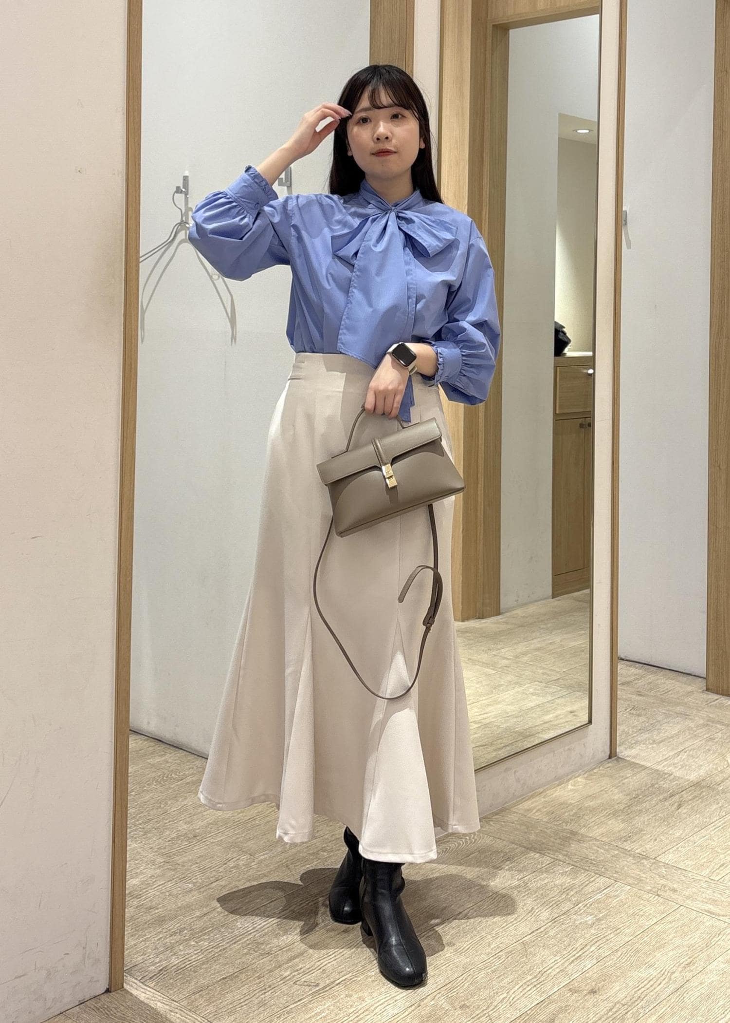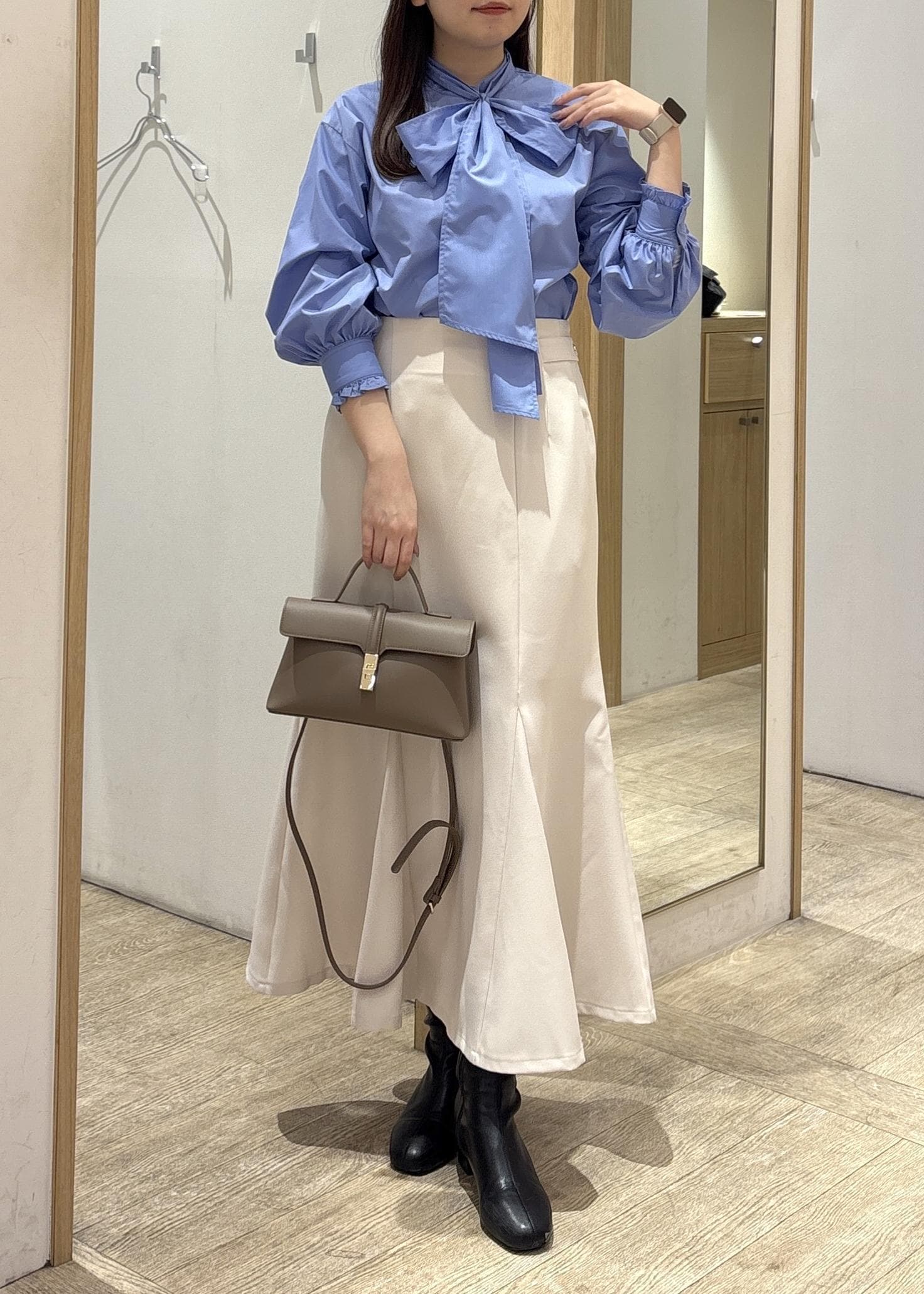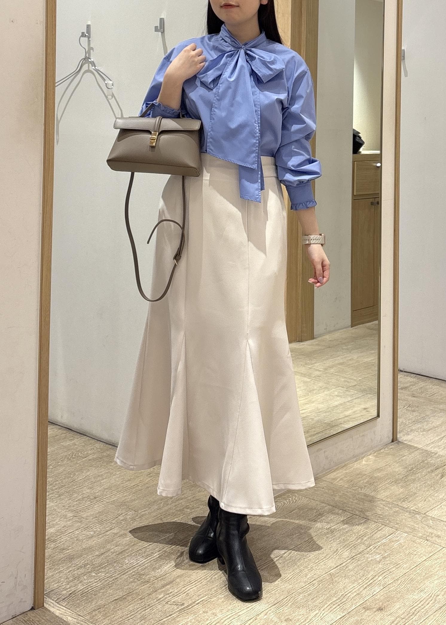 取り外し可能なボウタイリボンは、結び方を変えれば甘さを抑えてカジュアルな着こなしも♪