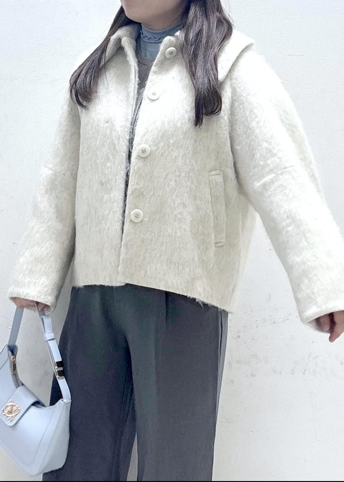 VIS【アウター総選挙1位】ビッグカラーモモンガシャギーショートコートオフホワイト / S¥8,791レビューゆったりシルエットなので、中にニット等を着ても着膨れしないのが非常に良いです!可愛らしい大きめの襟は小顔にも見せてくれます^ - ^