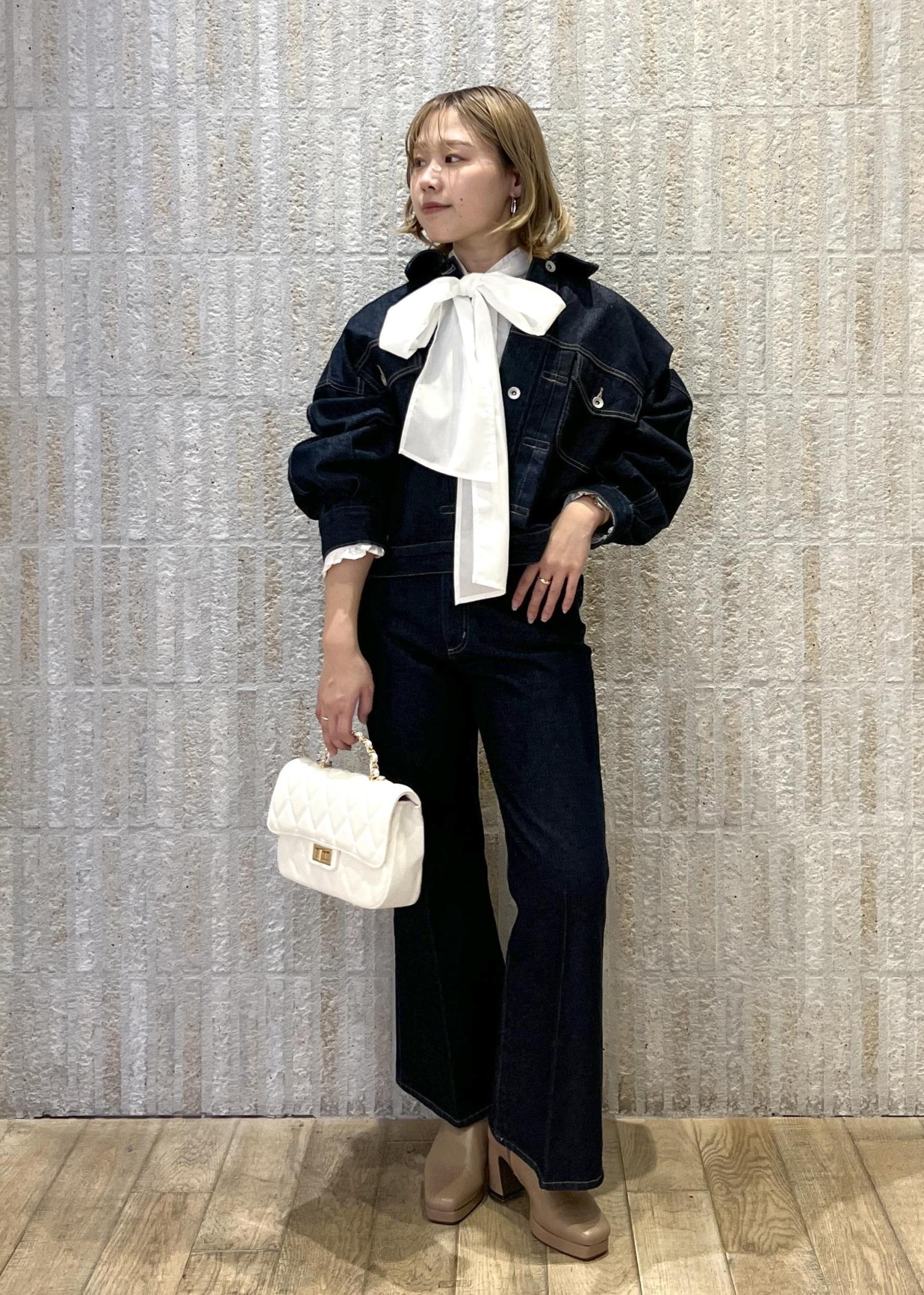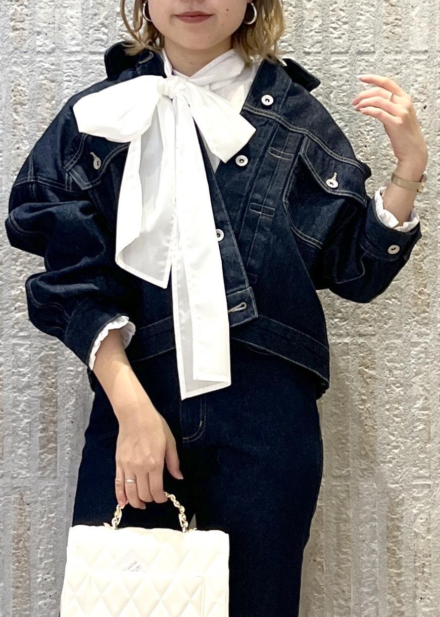 シャツの袖口のフリルをチラ見えさせ、リボンがしっかり目立つようジャケットは抜いて着用してます◎