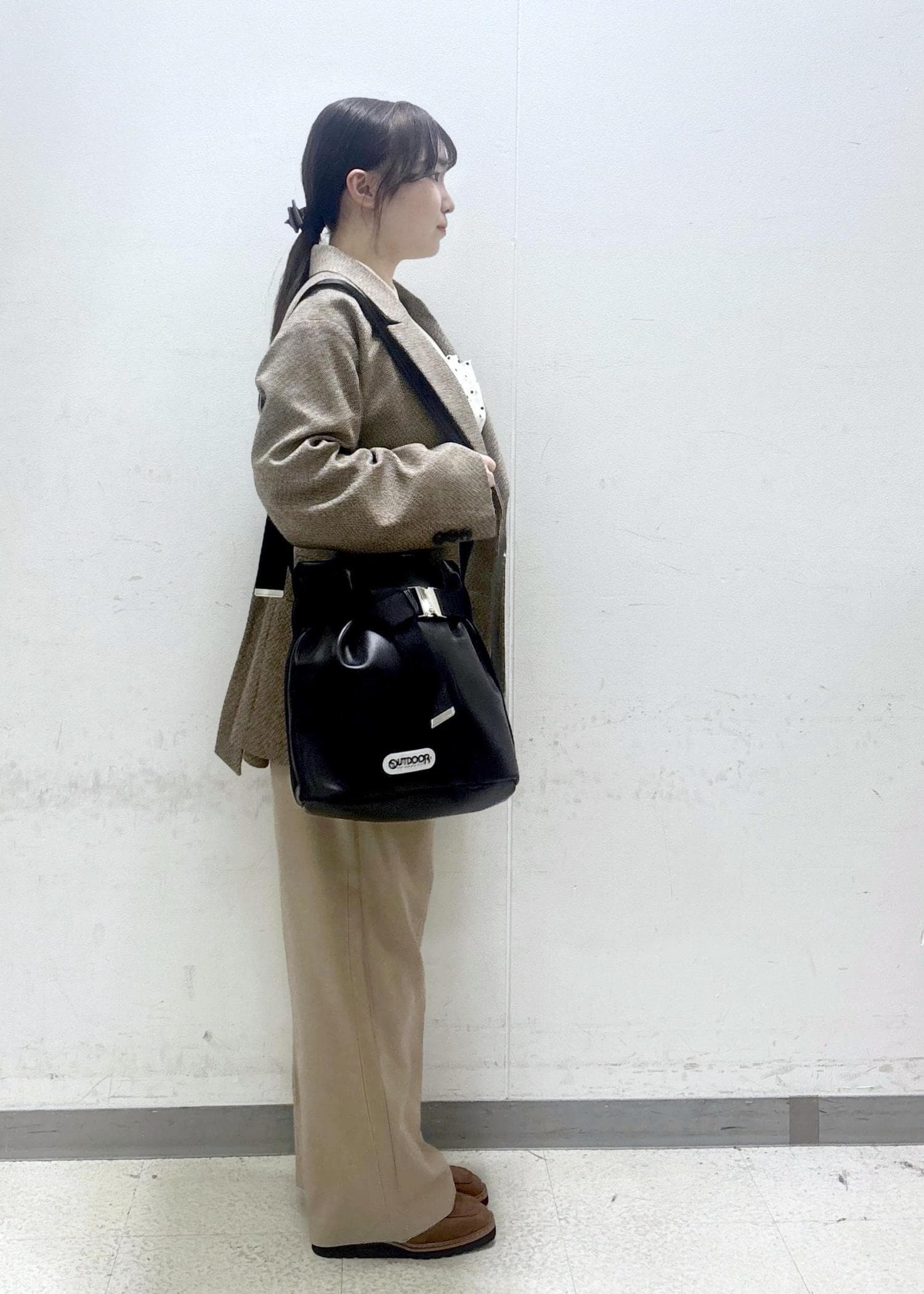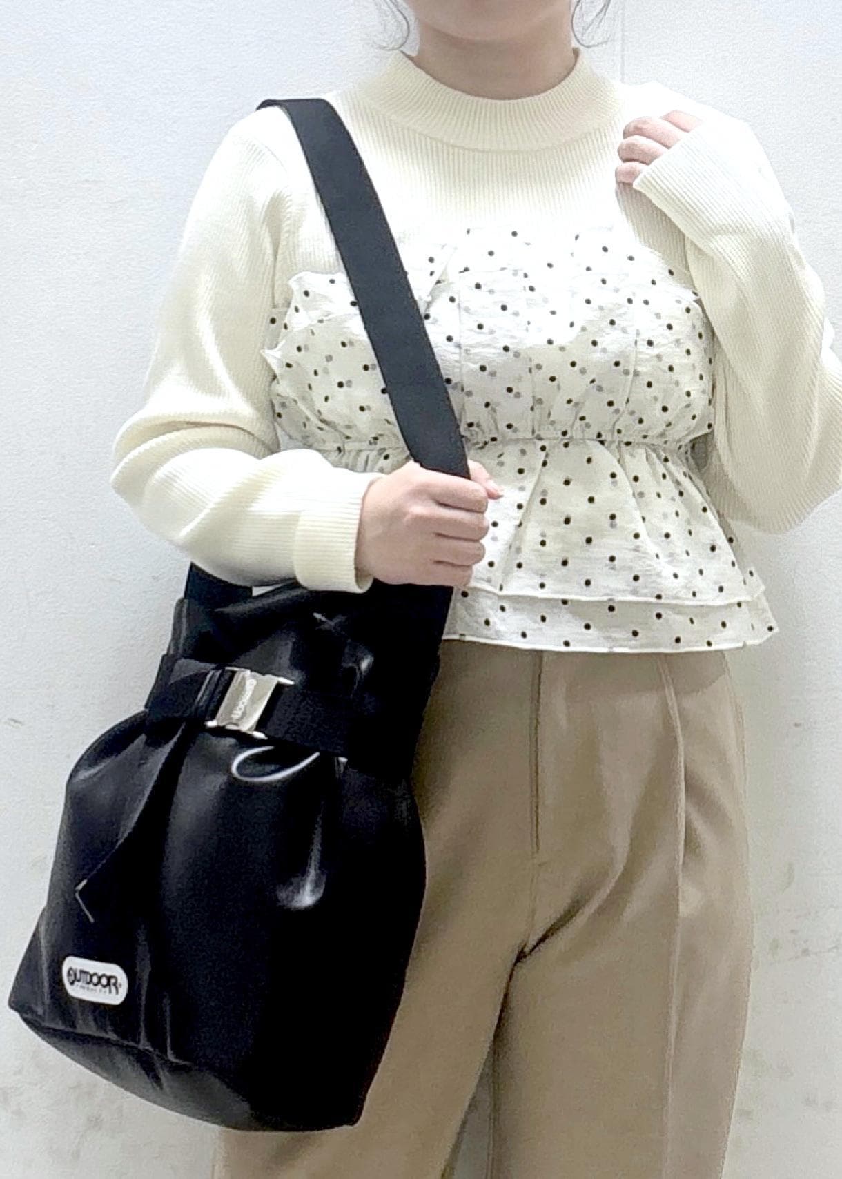 outdoorとのコラボアイテムです。丈感も調節可能で、収納呂があるので、非常に便利です。