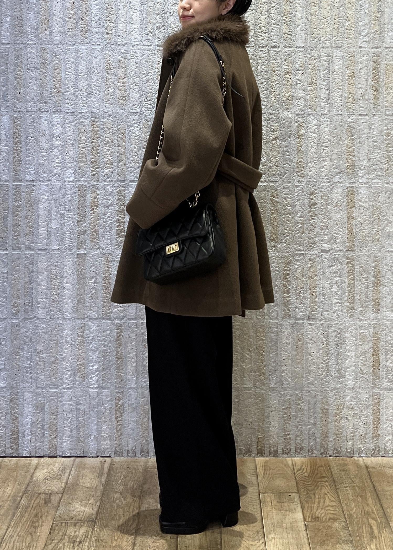 VISファー付きAラインステンコートダークブラウン / F¥14,784レビュー程よいAラインと素材感が上品みえするコート。トレンドのファーを付けたスタイリングや、外してシンプルにも◎