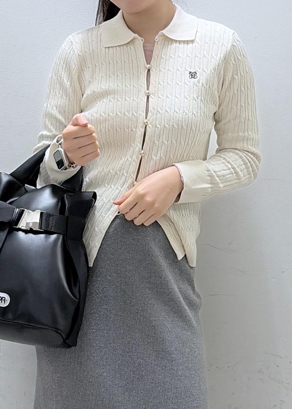 VISポロ衿ケーブルカーディガンキナリ / F¥4,743レビュー胸のワンポイント刺繍がかわいいデザインのカーブルカーディガンです!