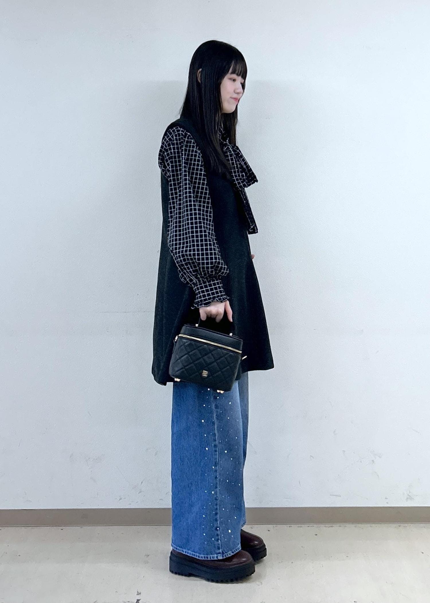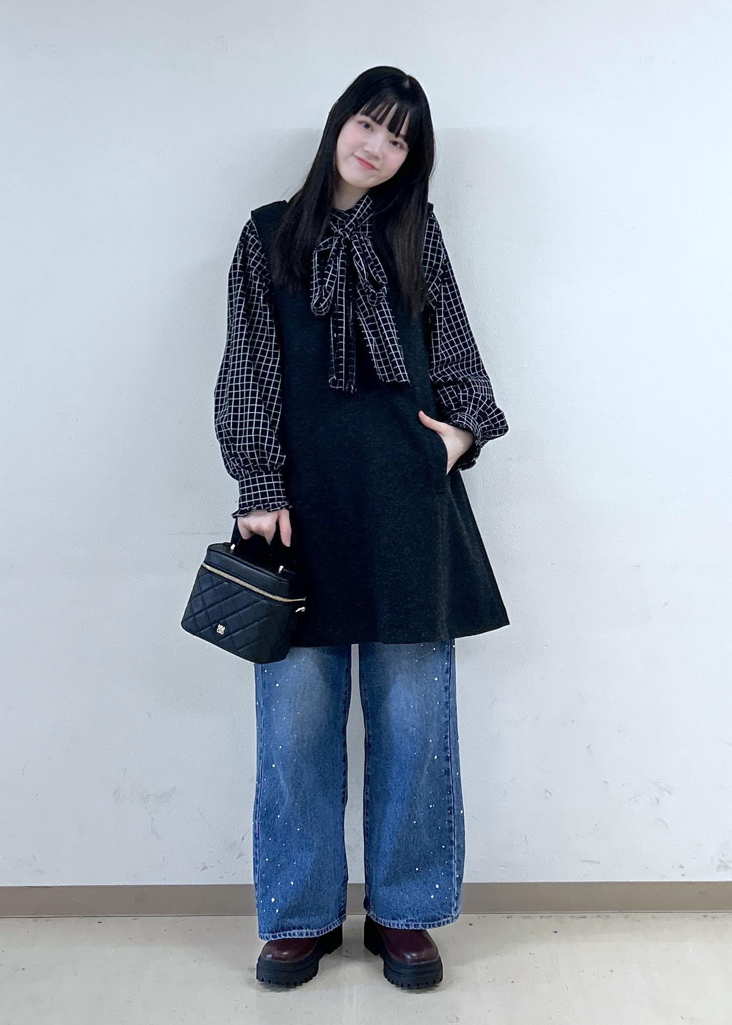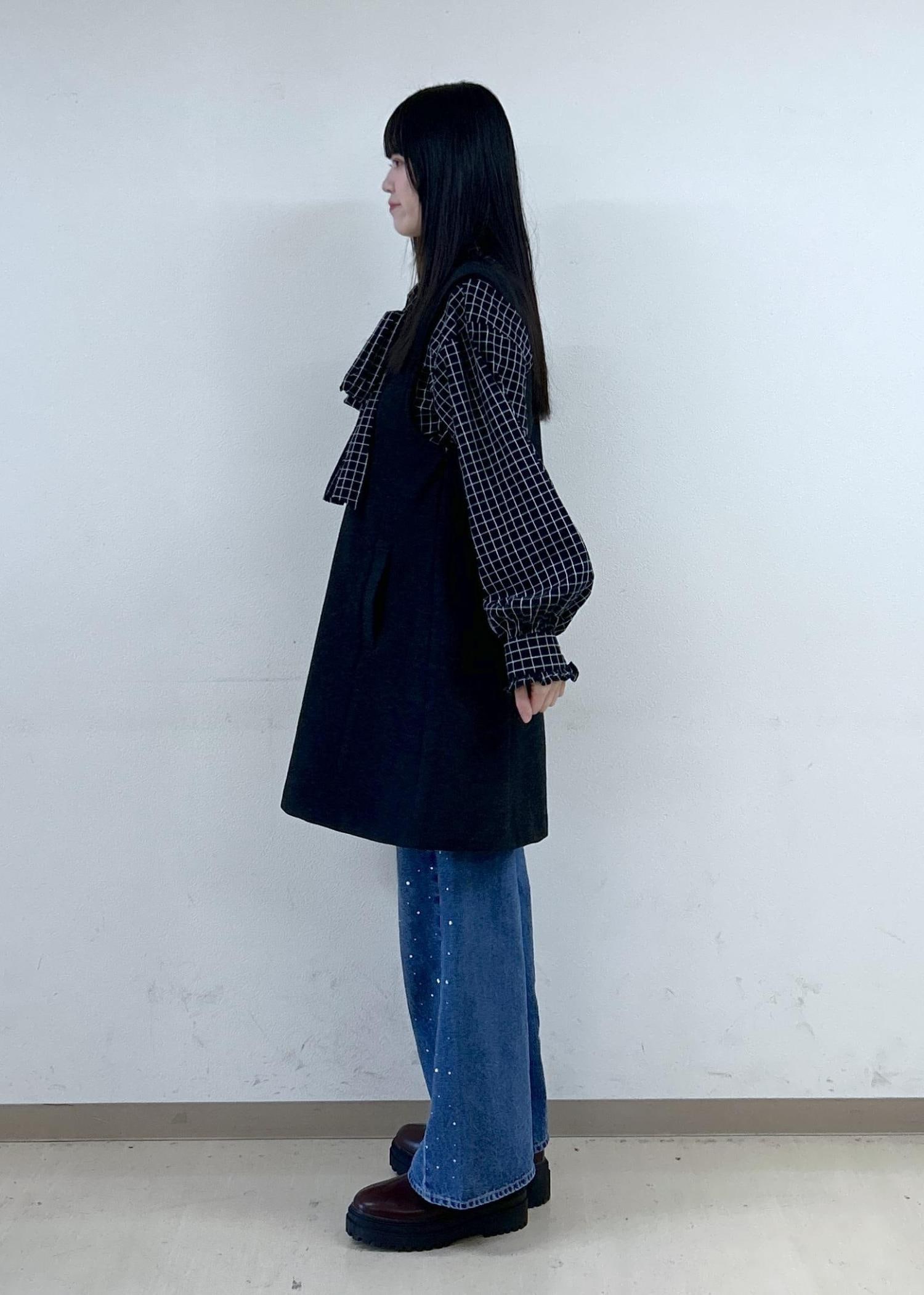VISチェック&デニムアソートボウタイリボン付きスタンドカラーシャツブラック系 / F¥6,589レビュー取り外し可能なボウタイと、袖口のフリルがガーリーでかわいいです♡