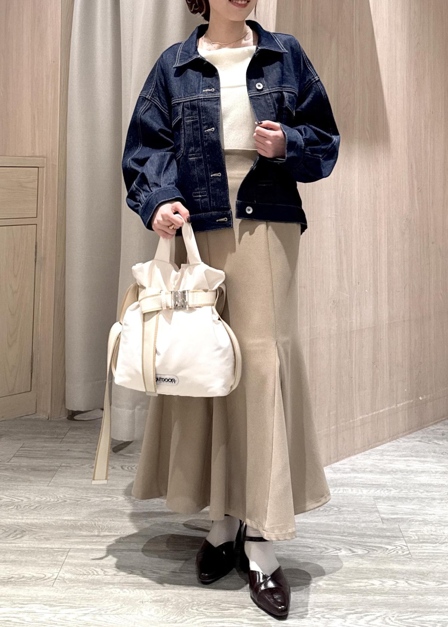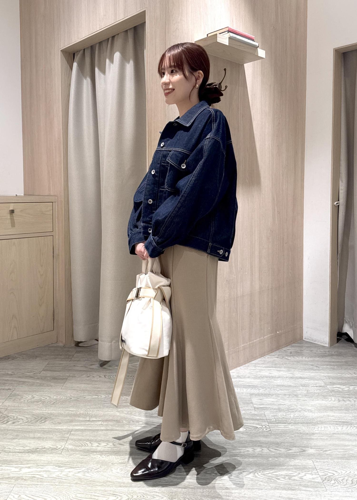 後ろがたぽっとなシルエットなので、カジュアルすぎず女性らしい柔らかい印象を出せます! -