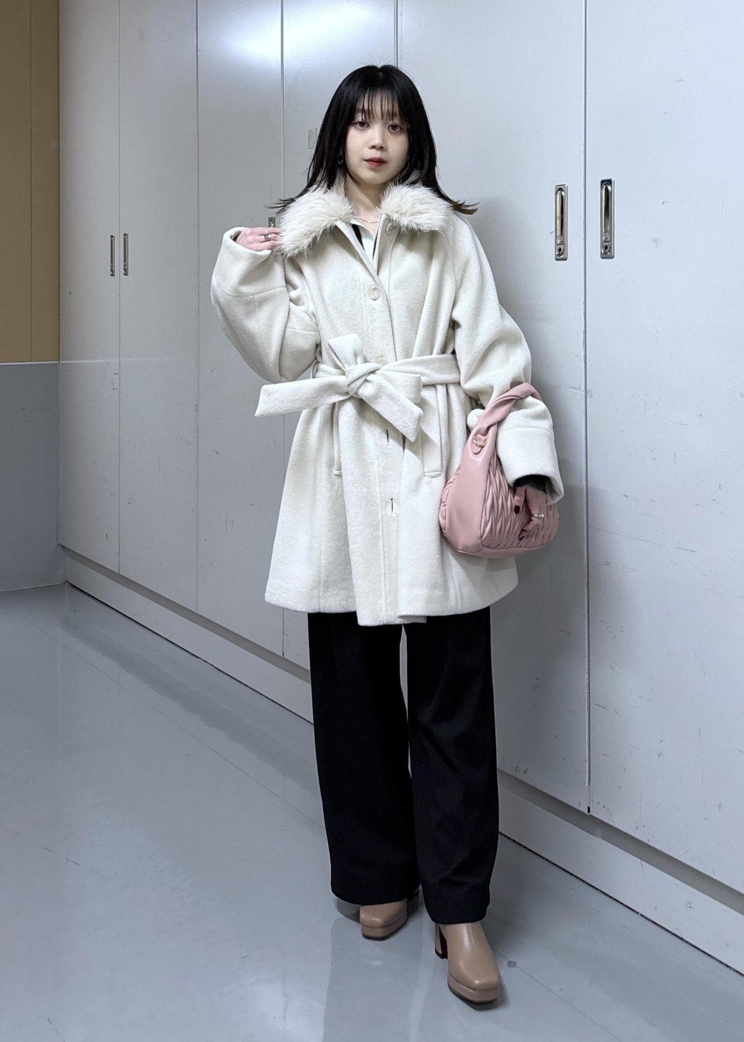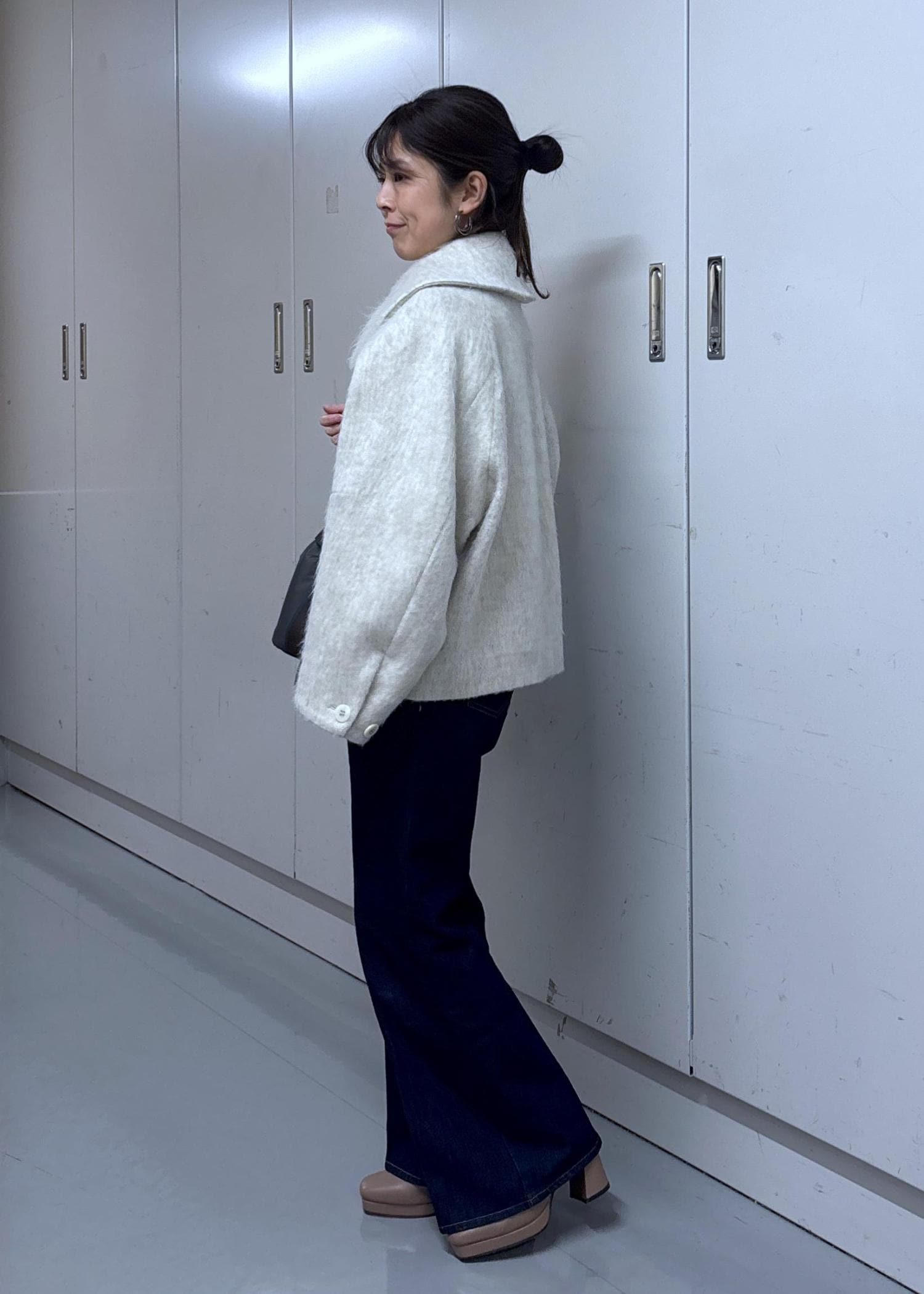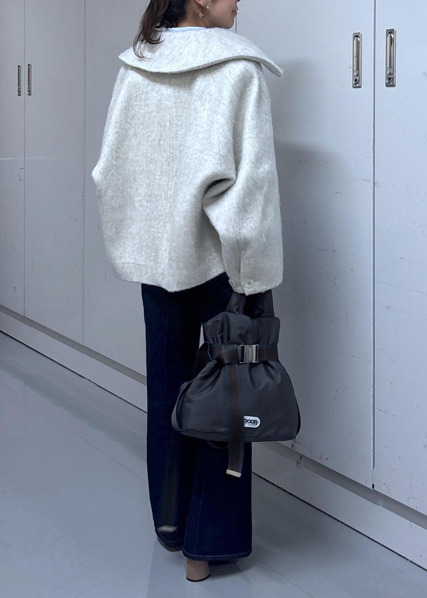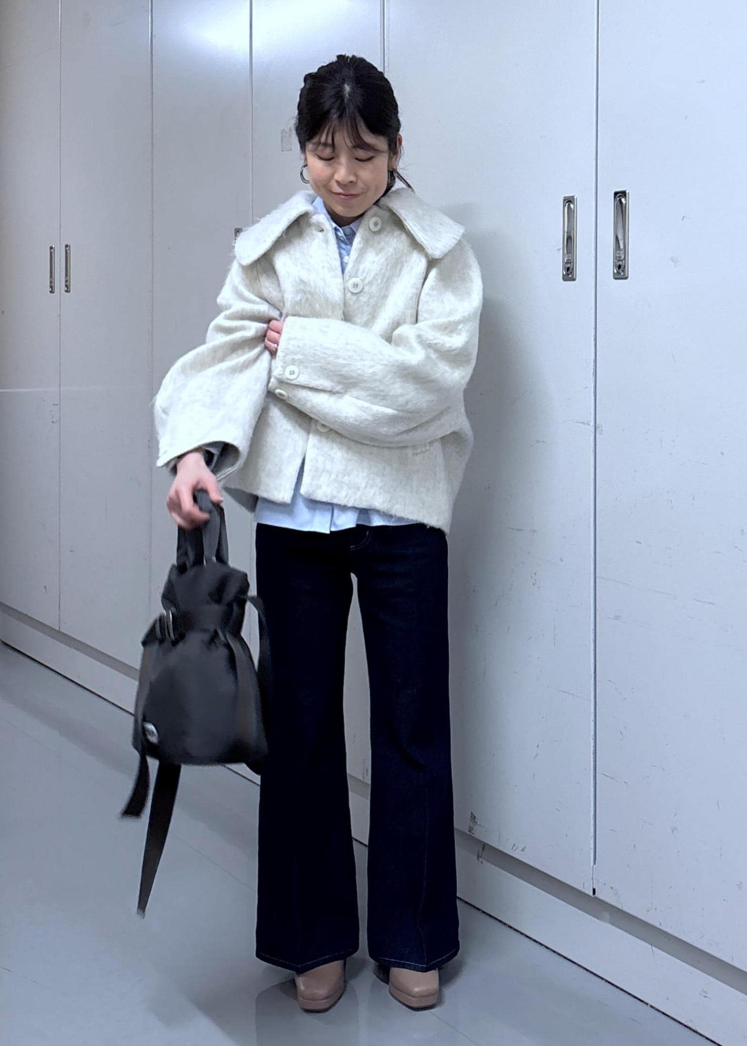 VIS【アウター総選挙1位】ビッグカラーモモンガシャギーショートコートオフホワイト / S¥8,791レビュー156cm/S着用。全体的にゆったりしたサイズ感で丸みのあるシルエットが可愛いです♡着丈はお尻半分は隠れる長さで袖丈は手の甲が隠れる長さです‼︎1番上のボタンをしめるとしっかり首が隠れるので温かさも◎ウール混なのに軽くて着やすいですよ♪