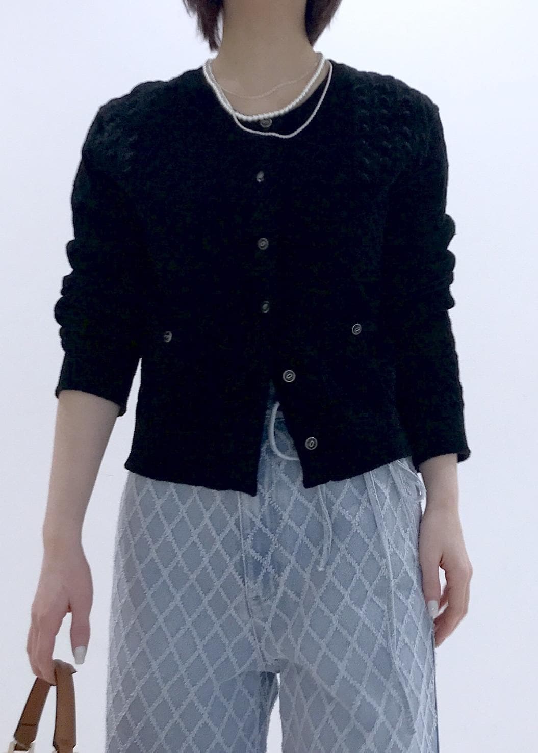 VISモールベロアケーブルカーディガントップス/イージーケアブラック / F¥6,589レビュー150cmで腰丈でした。