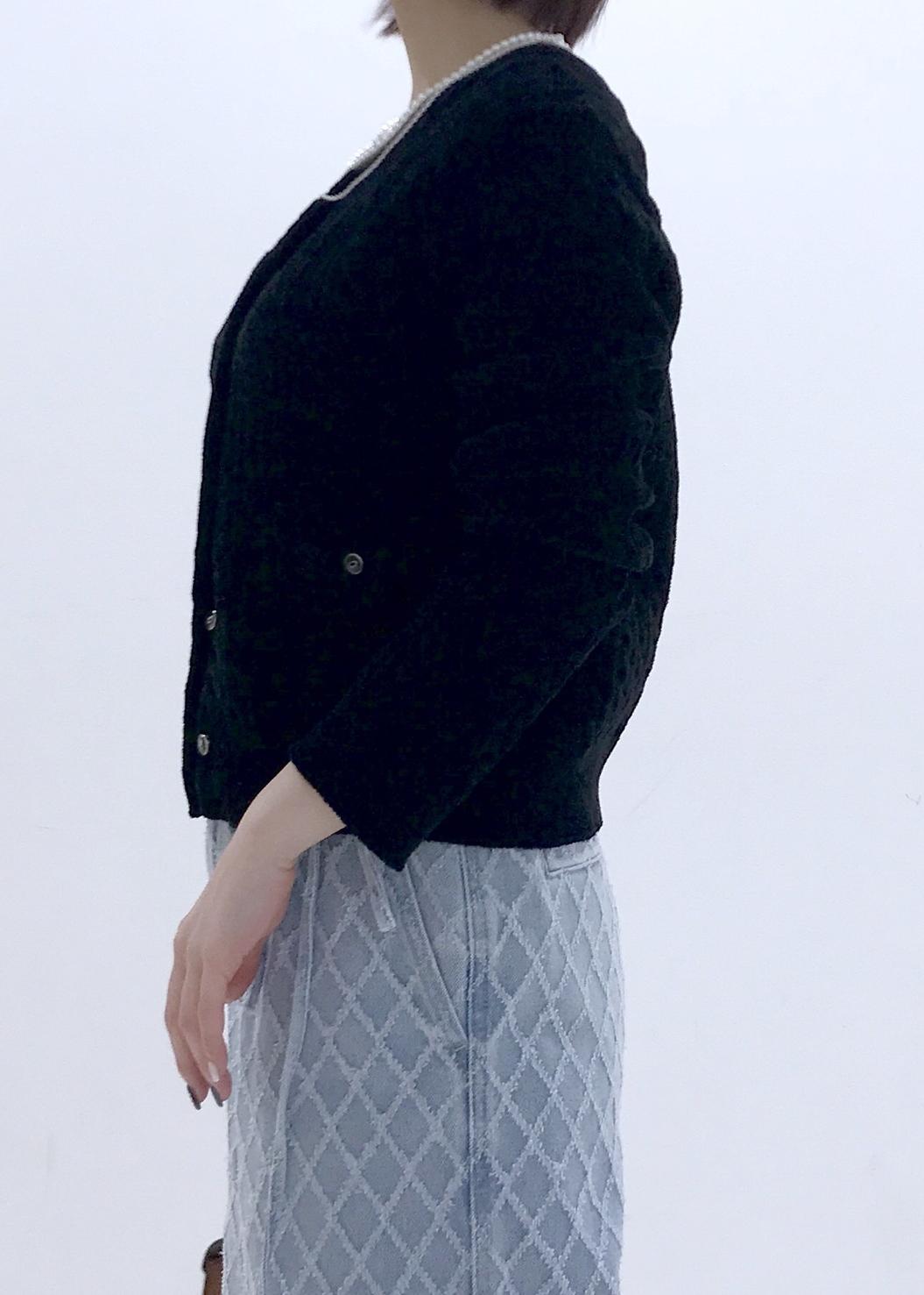 固すぎず程よく張り感のある生地なので、着用した時のシルエットが綺麗になります。 -