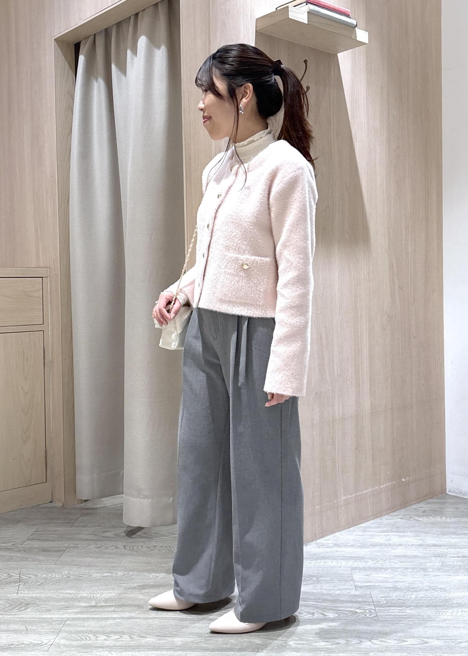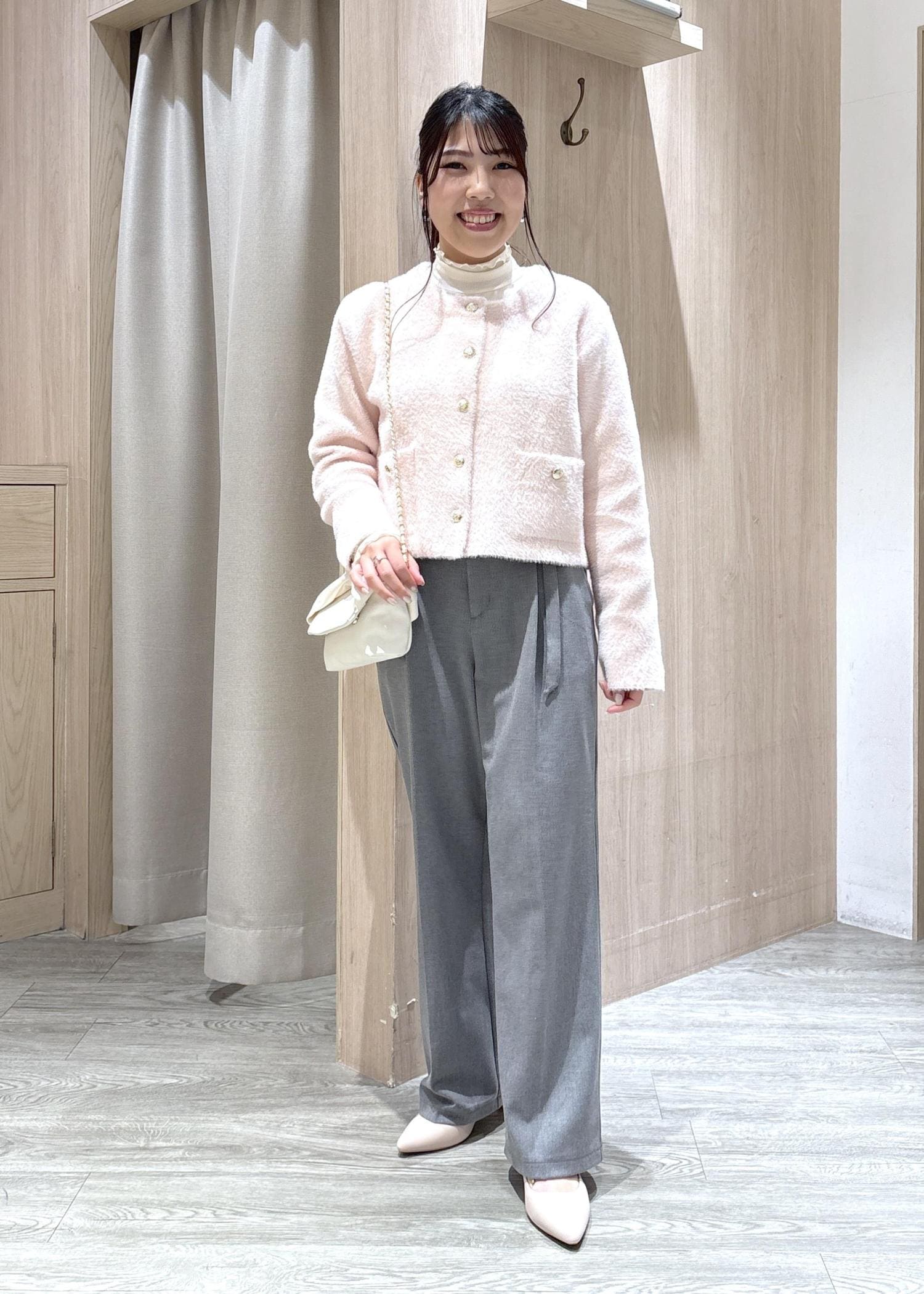 VIS接結ミニフェザーニットジャケットカーディガン/一部WEB限定カラーピンク系 / F¥6,919レビュー腰が隠れるくらいのスッキリとした丈感でキレイめからカジュアルまで幅広く活用していただけますよ。ノーカラーなのでインナーでシャツを着たりハイネックのものを合わせてレイヤードしてもかわいいです!