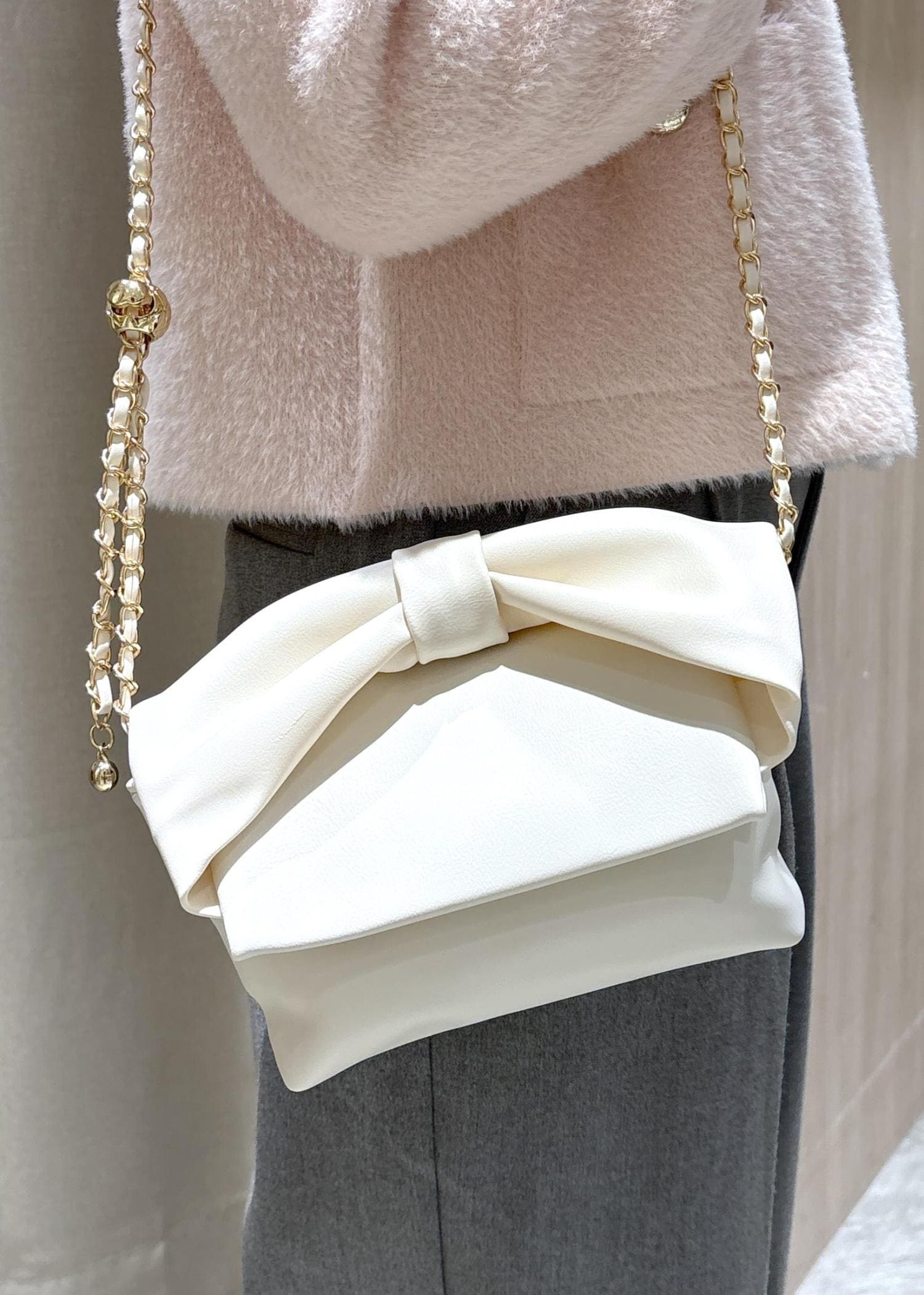 VISリボンハンドルチェーンショルダーバッグ/2WAYキナリ / F¥4,743レビュークラッチバッグとして使えるこちらは、ショルダーも付いているため2wayで使うことができます。二つ折りや三つ折り財布が入る大きさになっていて、お手荷物をコンパクトにしたい方にオススメです。