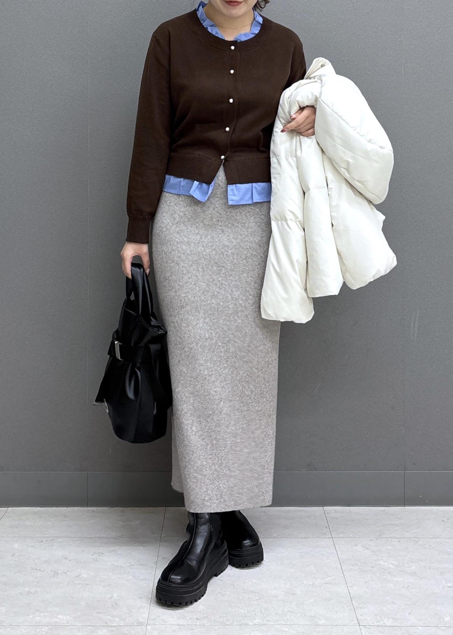 VIS【美得】フリル襟ドッキングニットカーディガントップスダークブラウン / F¥5,929レビュー160㎝だと腰まわりがしっかり隠れる着丈。身幅はややゆとりがあり、体のラインを拾いすぎないサイズです!伸縮性のある柔らかい素材で着心地も抜群◎冬〜春まで長く着られそうな生地感です!