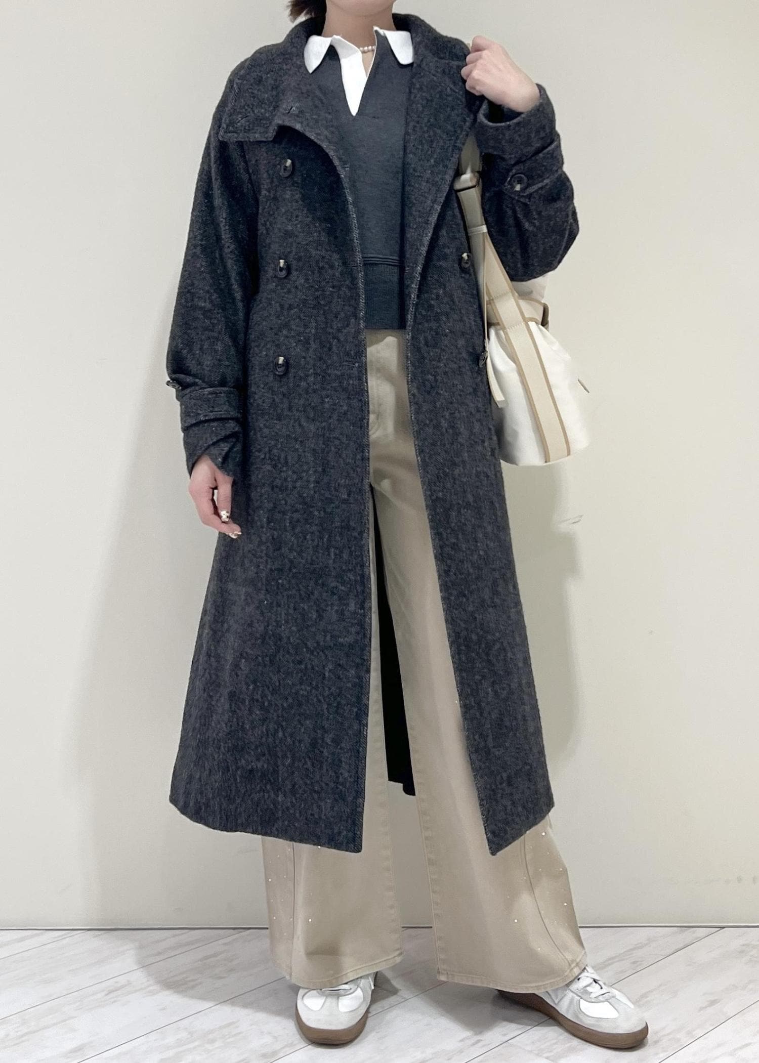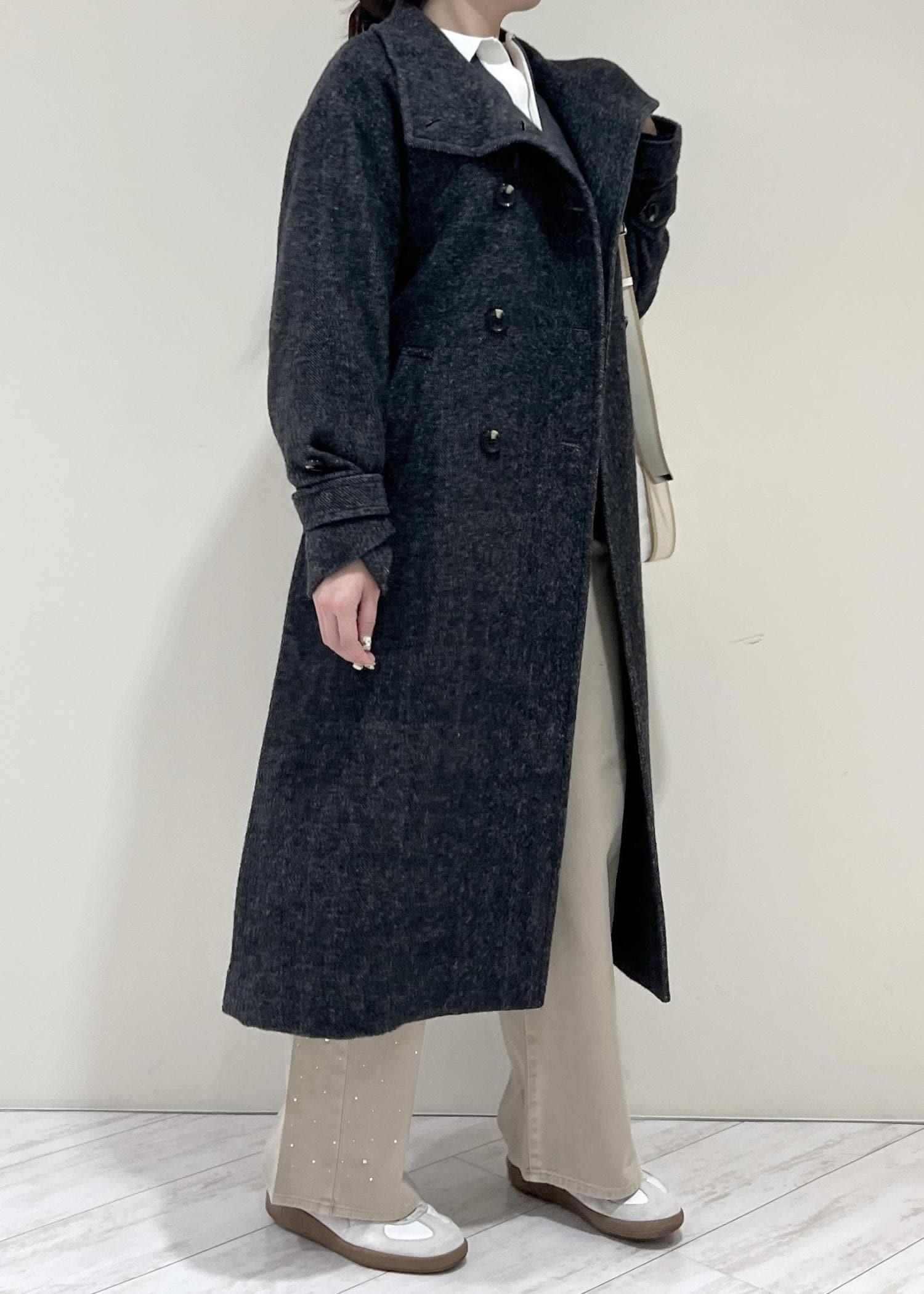 VIS尾州シャギースタンドカラーロングコート/静電気防止・WEB限定PS・TMサイズチャコール / M¥17,512レビューロング丈ですが想像以上に軽く、あたたかく羽織って頂けます◎ゆったりめのシルエットなので厚手のニットも着込みやすいです!Mサイズ着用でふくらはぎほどの着丈でした。
