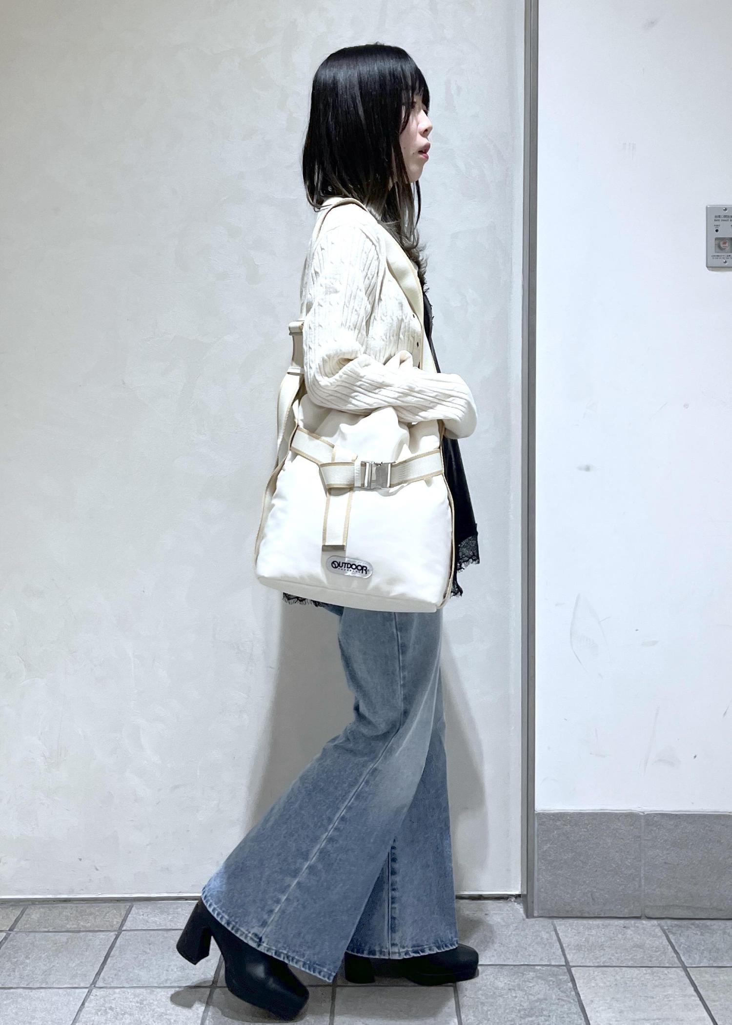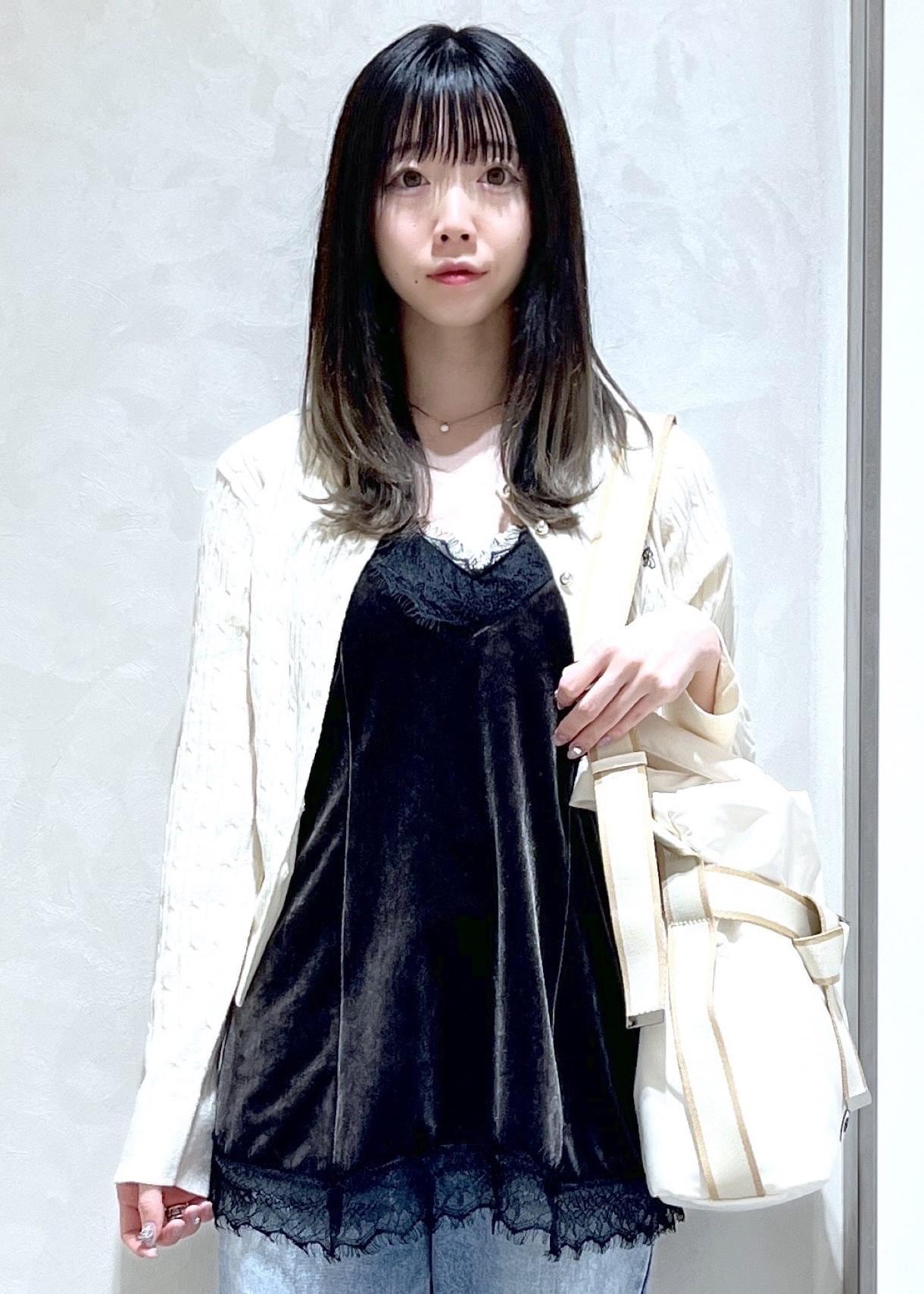 こなれ感が出るように、ベロアキャミとカーディガンを羽織ってレイヤードスタイルを組んでみました!