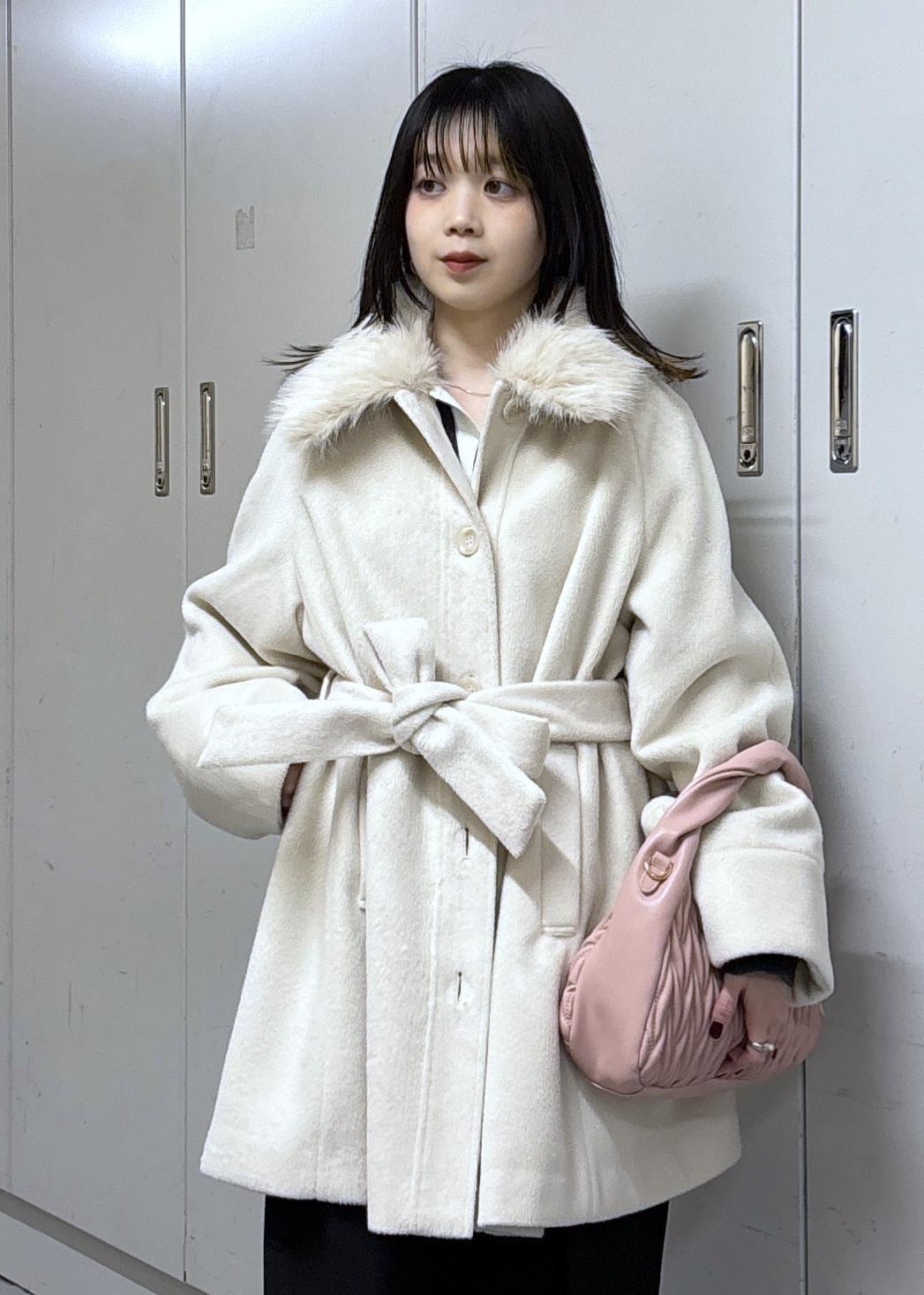 襟のファーは取り外し可能なので、印象を変えられます!