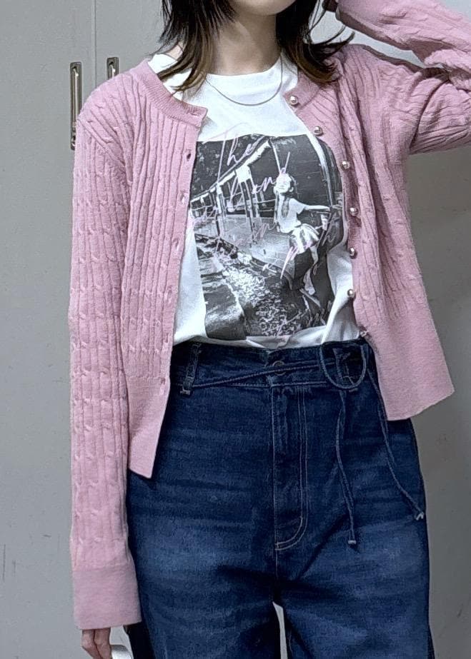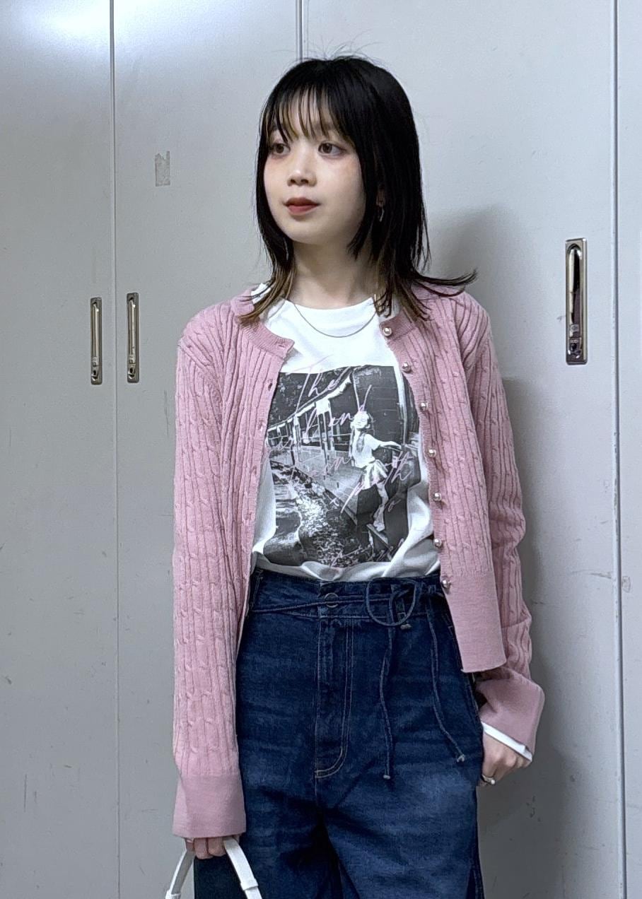 カーディガンとTシャツのロゴがピンクで揃っていて可愛い❤︎