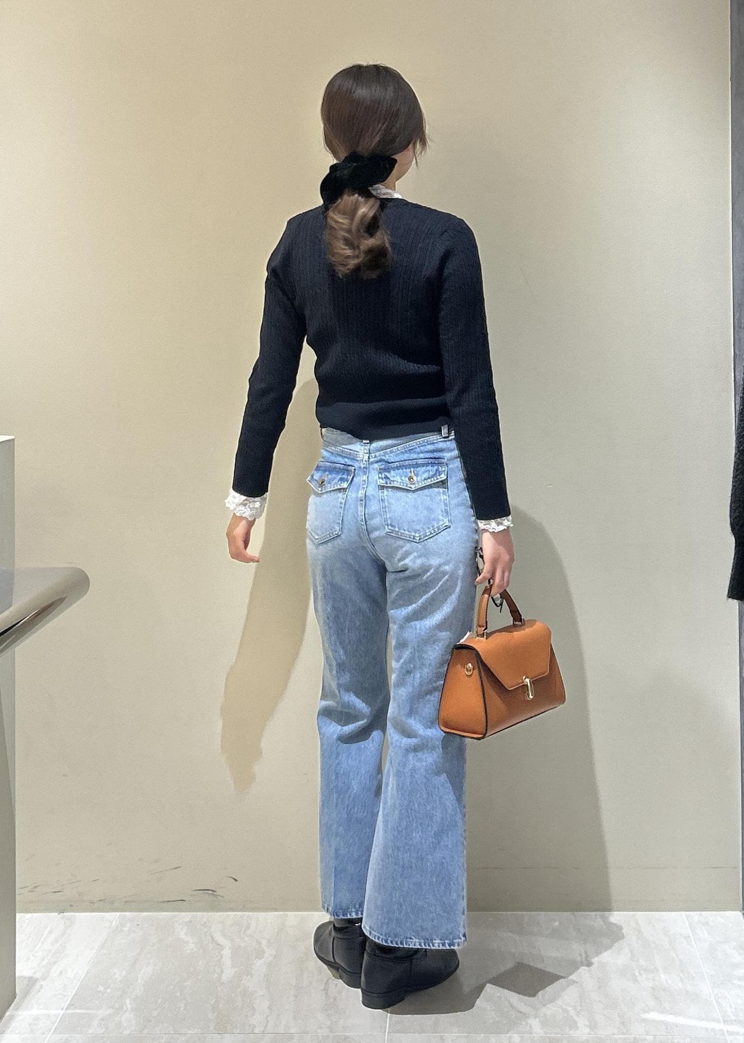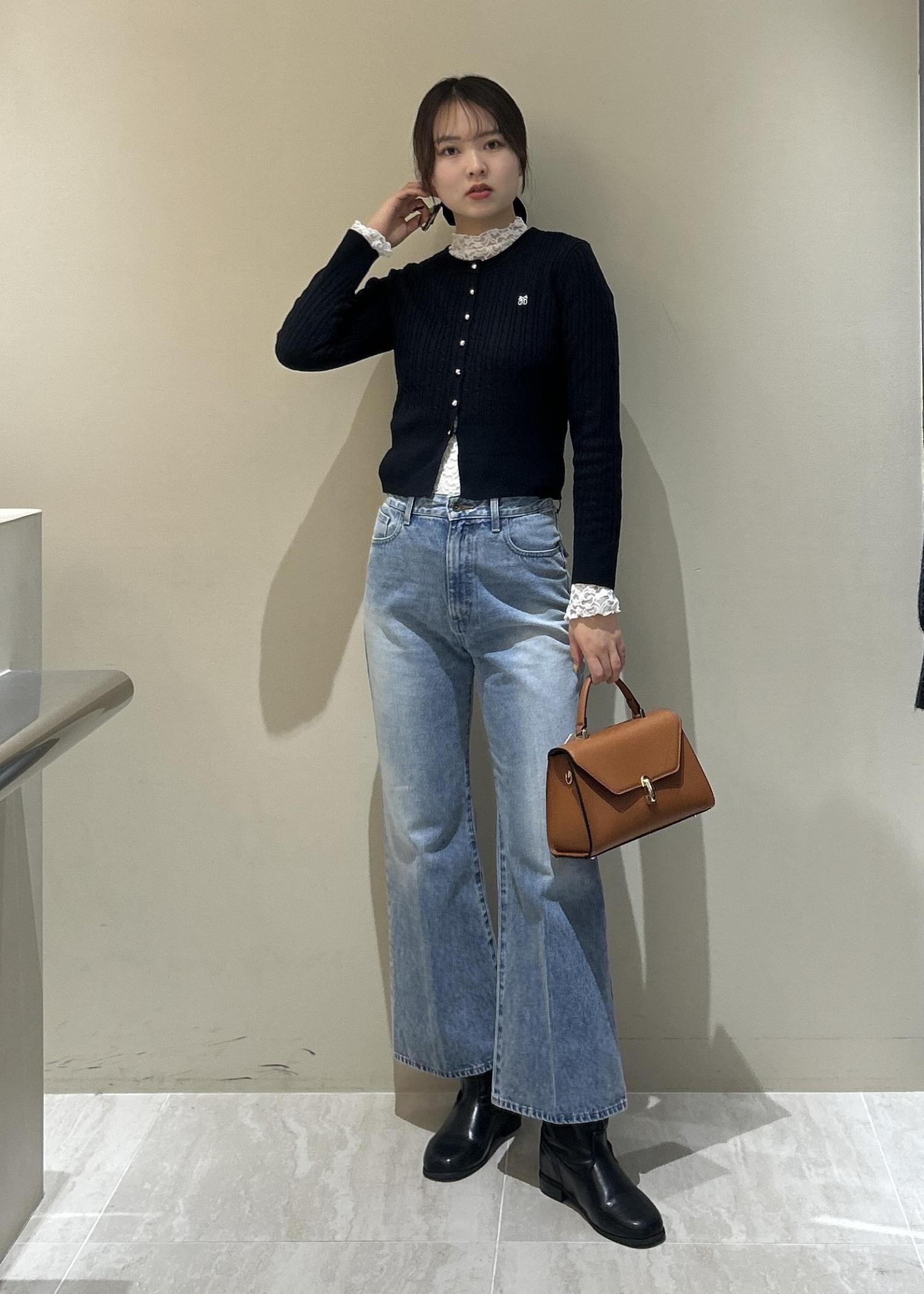 少しハイウエストのもので合わせたりシャツを中に着込むレイヤードスタイルがおすすめです! -