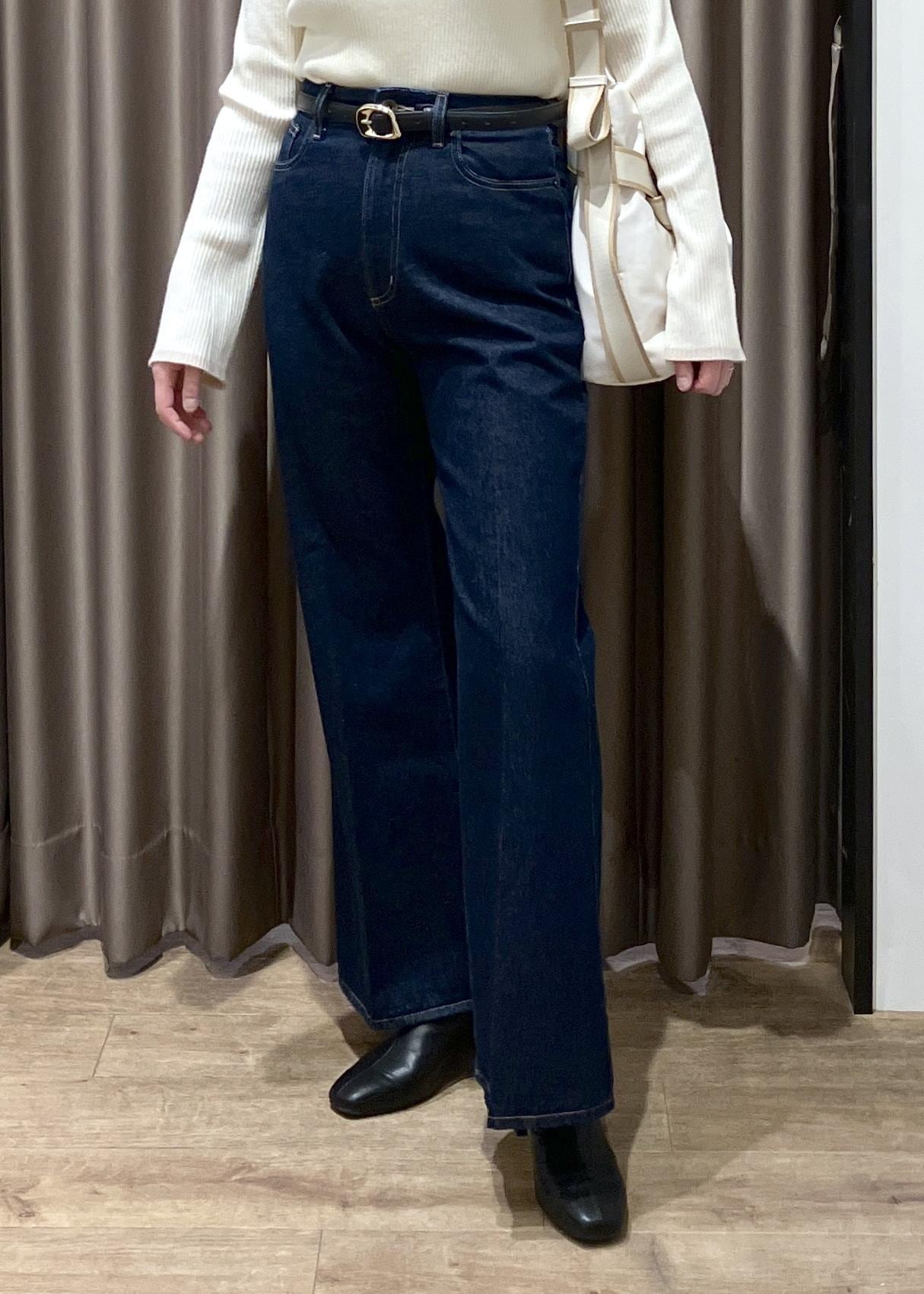 VISフレアシルエットデニムパンツネイビー / M¥8,899レビューコットン100%なので硬めの生地感ですが履いているうちに馴染みます!トレンドのワイドシルエットで通年お使いいただけるシンプルなデニムパンツです!