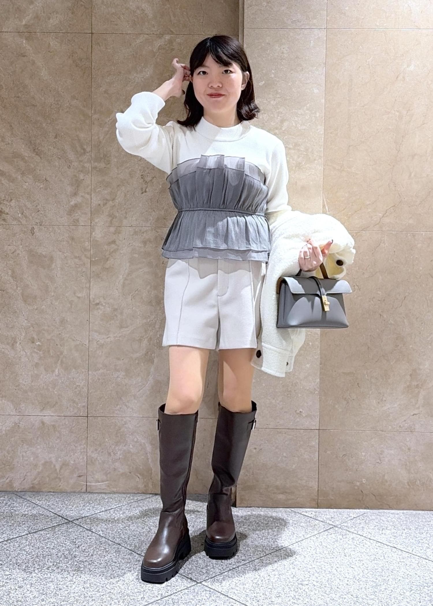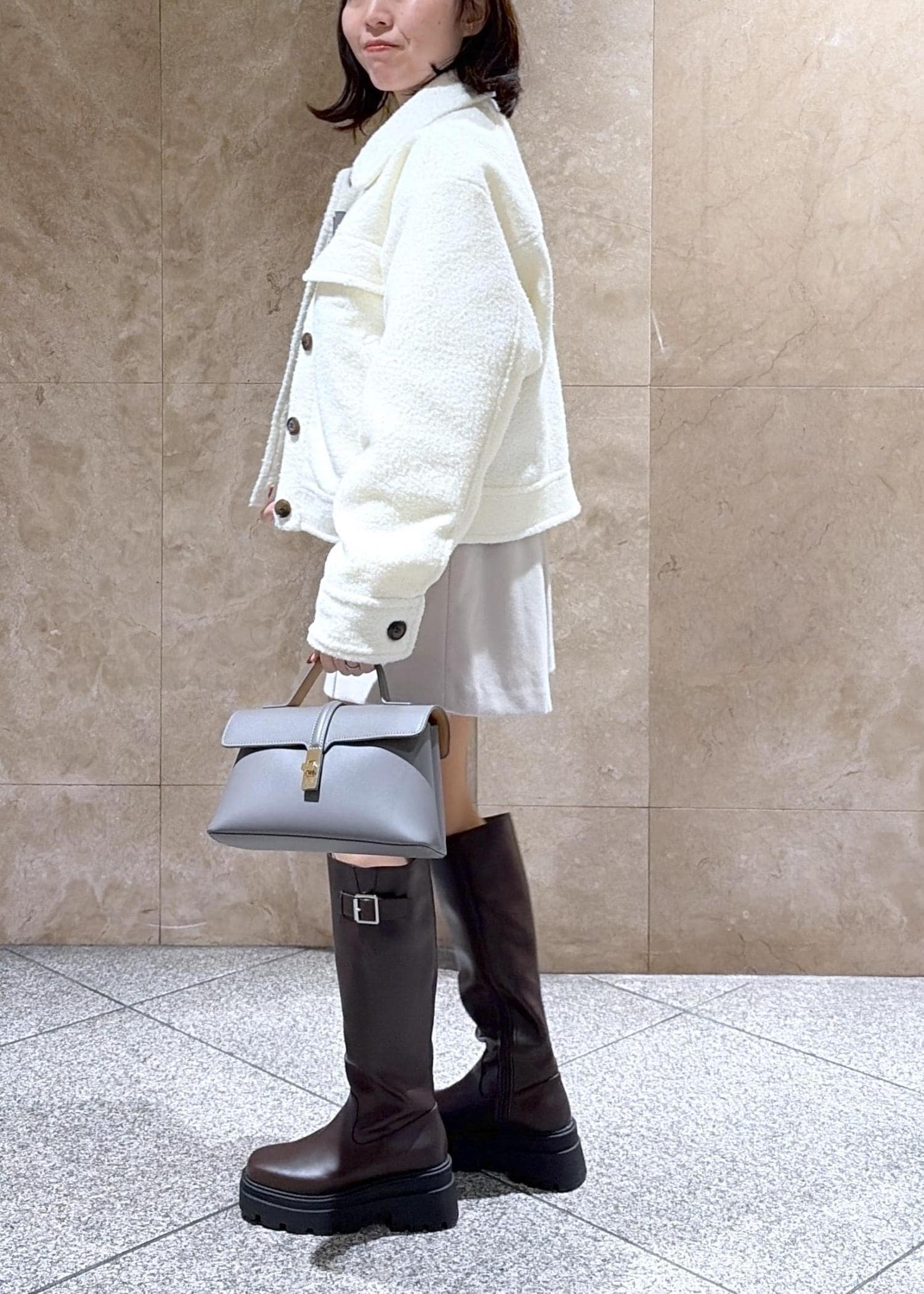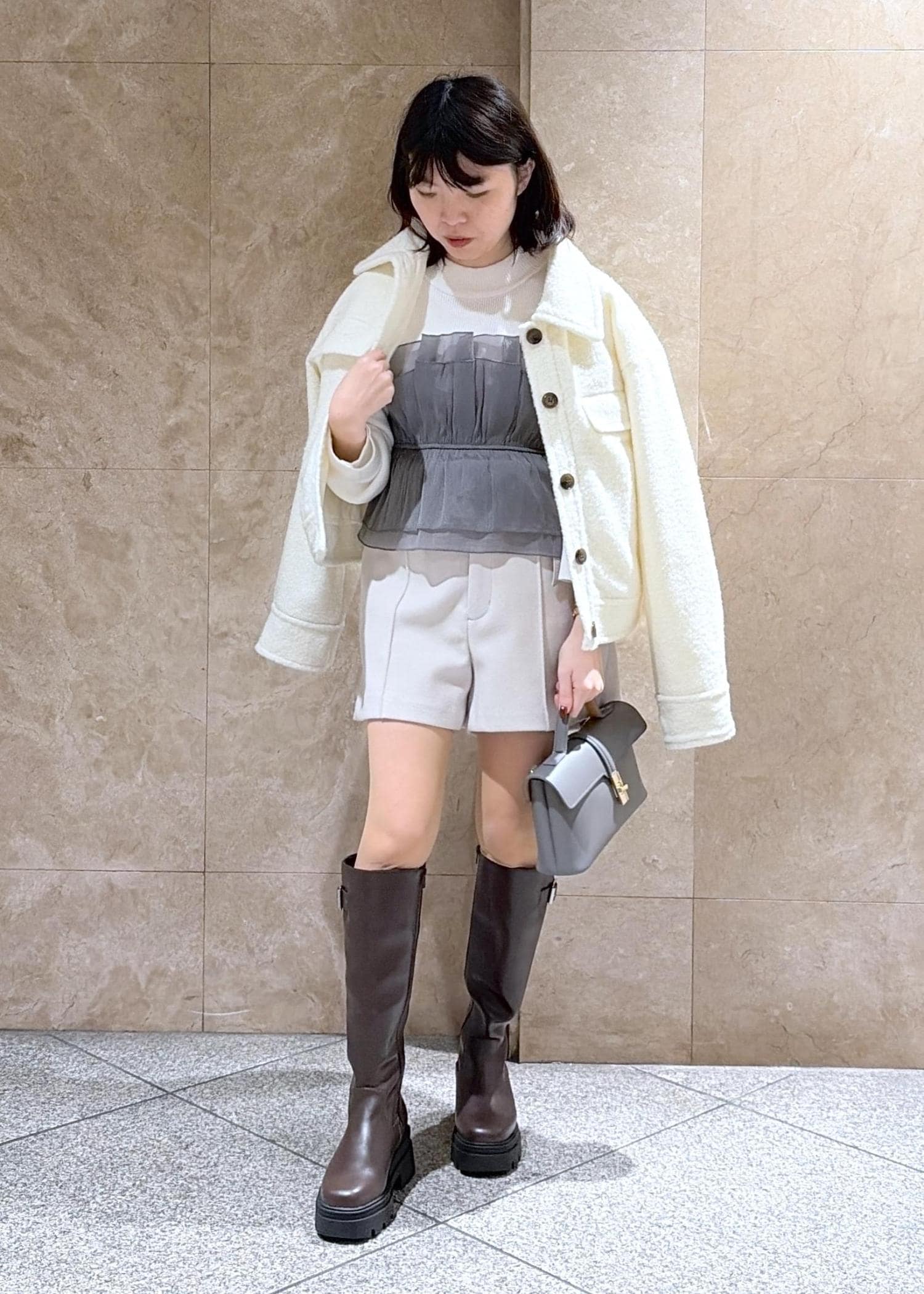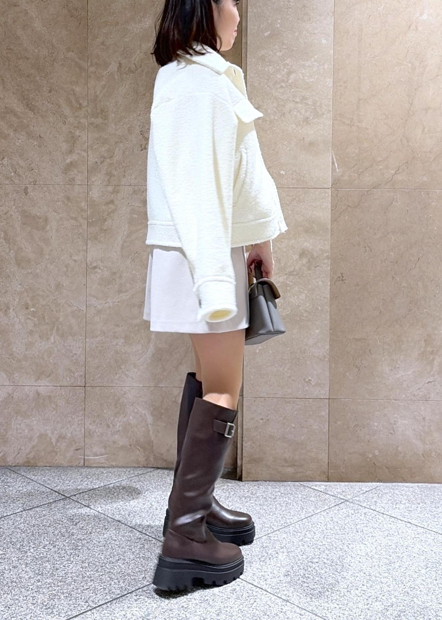 丈感は短めなので、厚底ブーツやロングブーツを