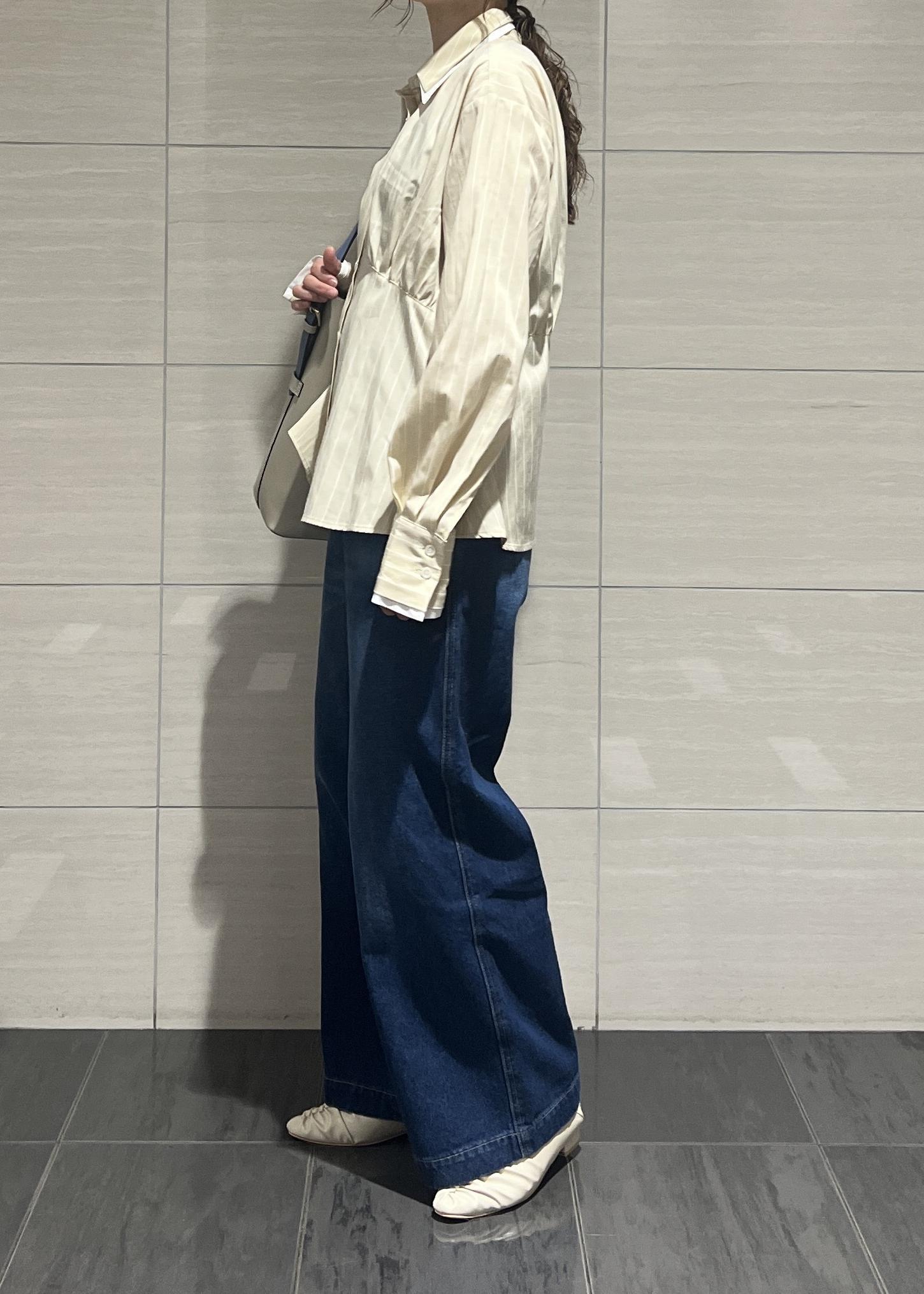 ワイドシルエットですが、落ち感がありすっきり見えます。
