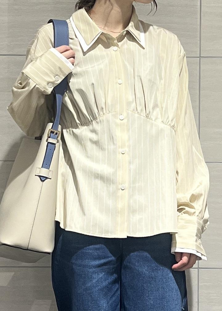 ダブルカラーが顔まわりのアクセントになり、1枚で着映えするシャツです! -