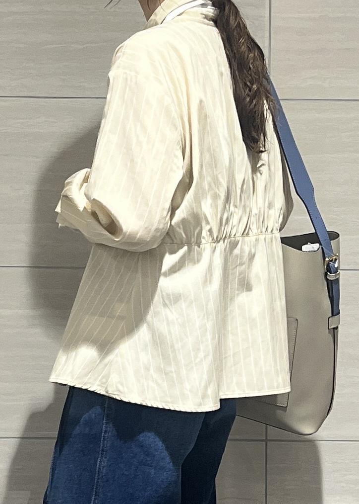 VIS無地&ストライプダブルカラーウエスト切り替えシャツベージュ / F¥5,489レビュー152cmで腰丈のバランス。