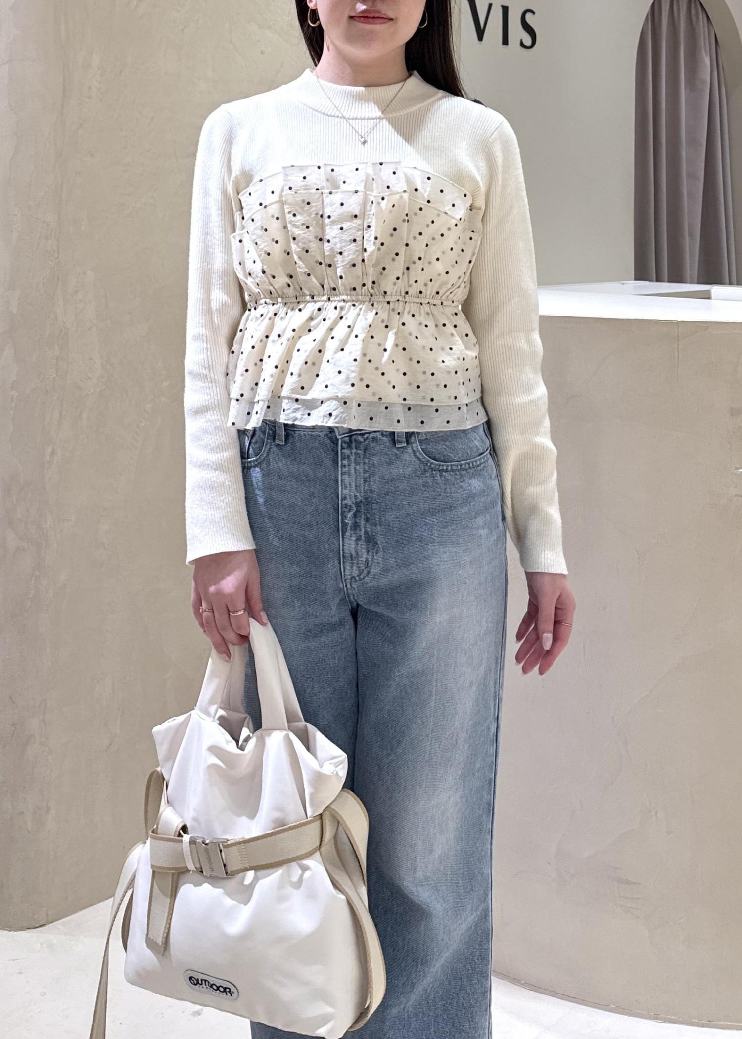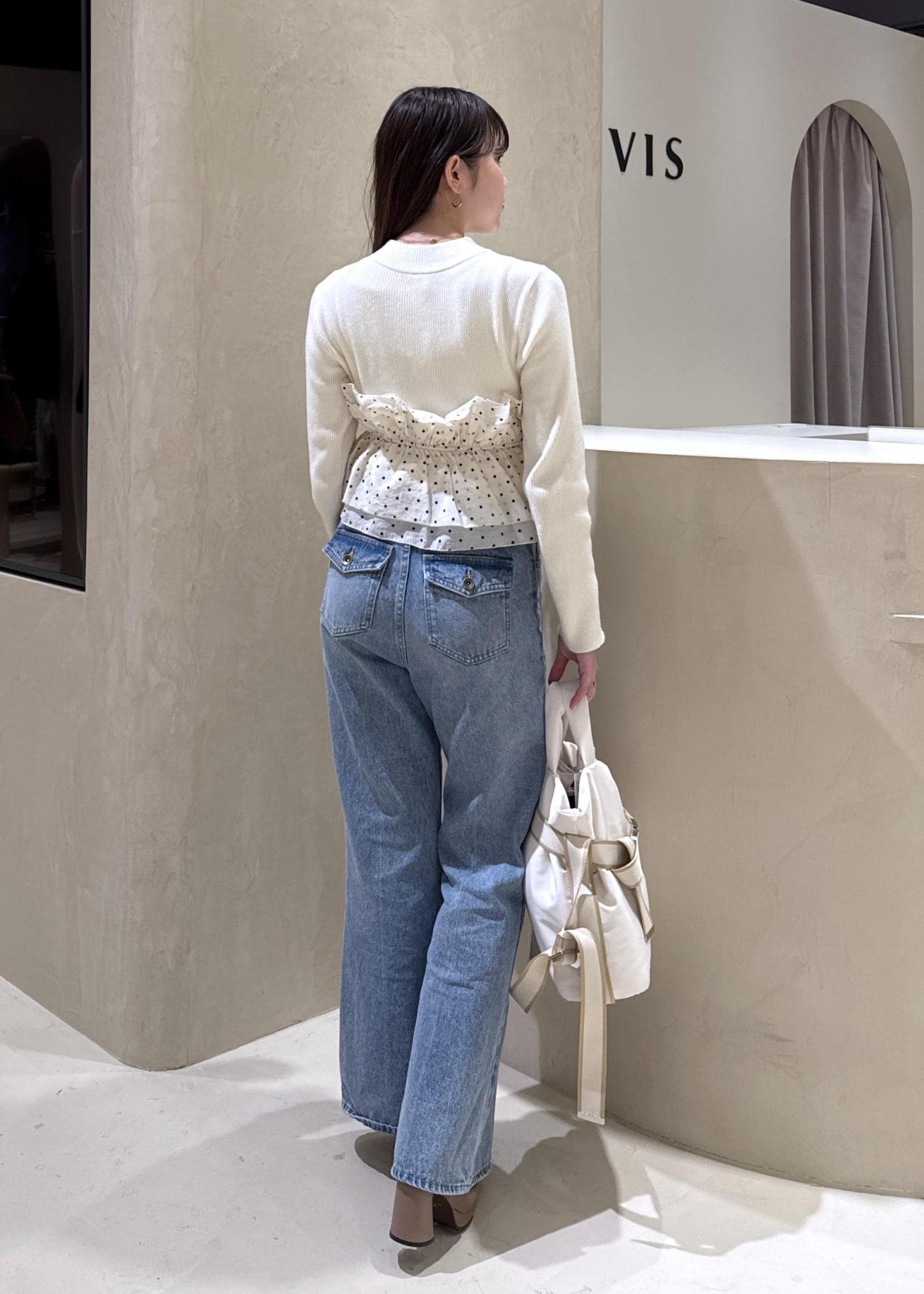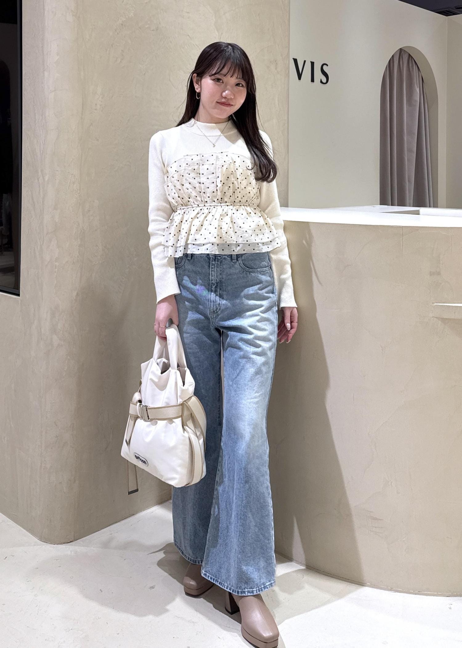 美シルエットのフレアデニムを合わせて、フェミカジコーデ!