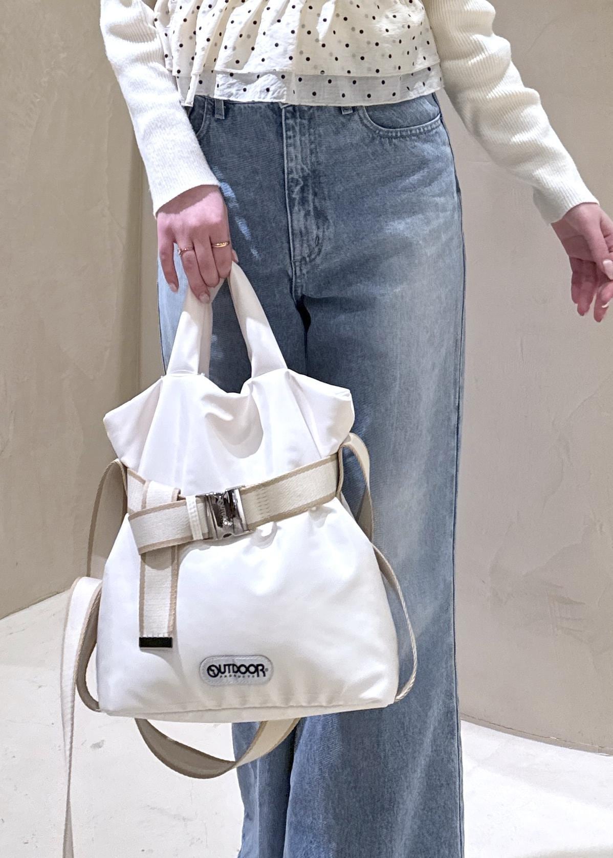 バッグは、OUTDOOR PRODUCTSとのコラボアイテムを持って、春のお出かけぴったりコーデに◎