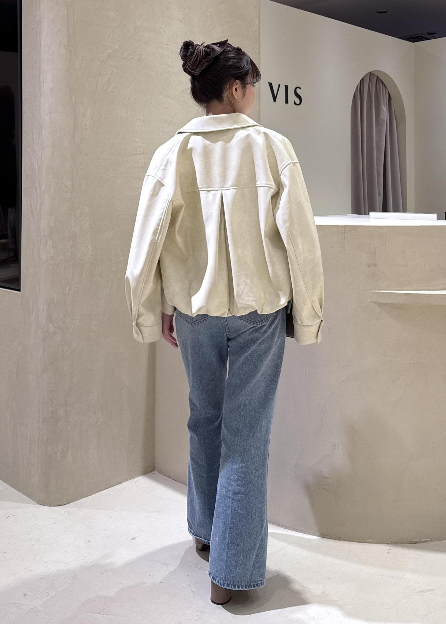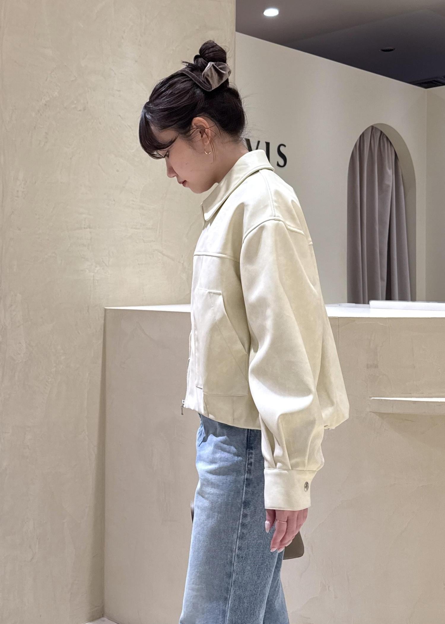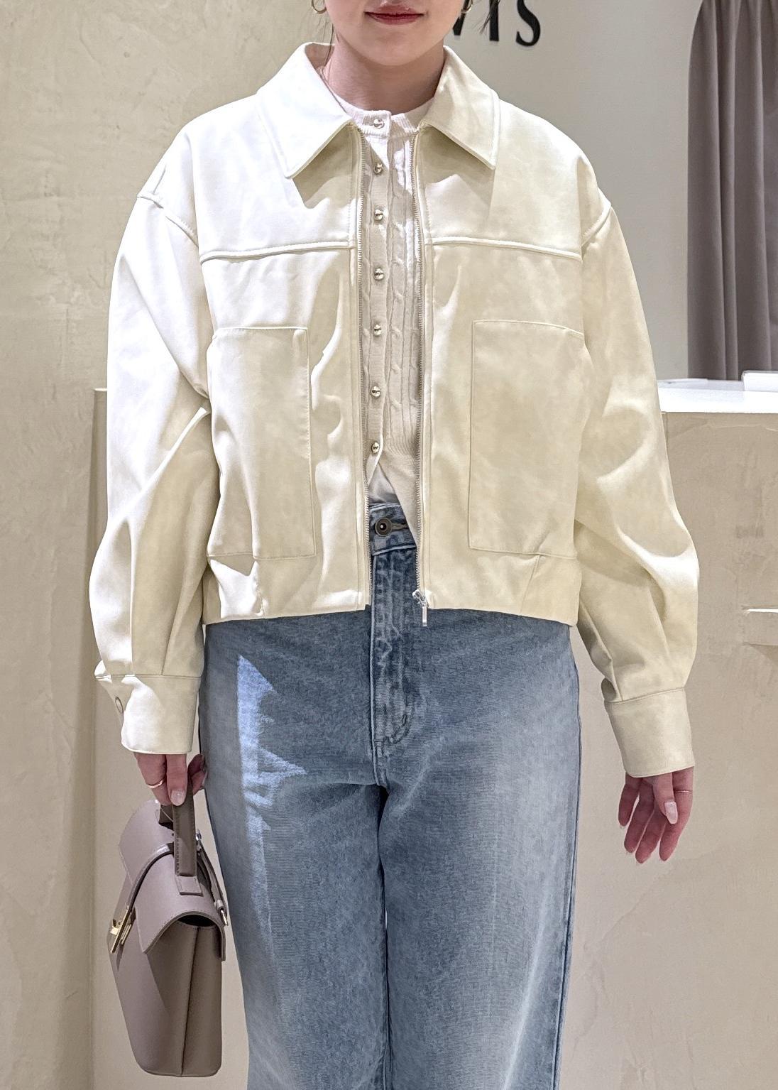 VISアウトポケット合皮ブルゾンクリーム / F¥10,989レビュー身長158cm、ウエストライン隠れる長さ。