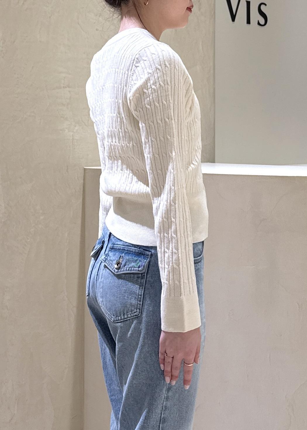 VISケーブルコンパクトカーディガンキナリ / F¥4,391レビューコンパクトではありますが、薄手のインナー、シャツなど中に着ていただけるくらいのフィット感です。