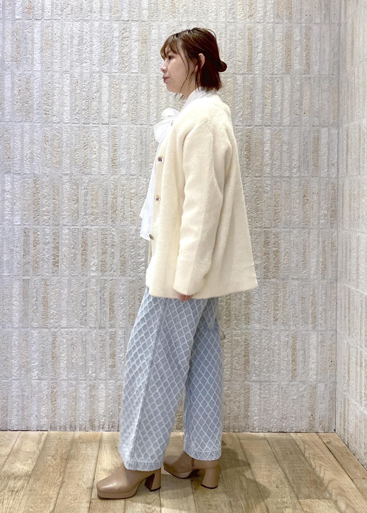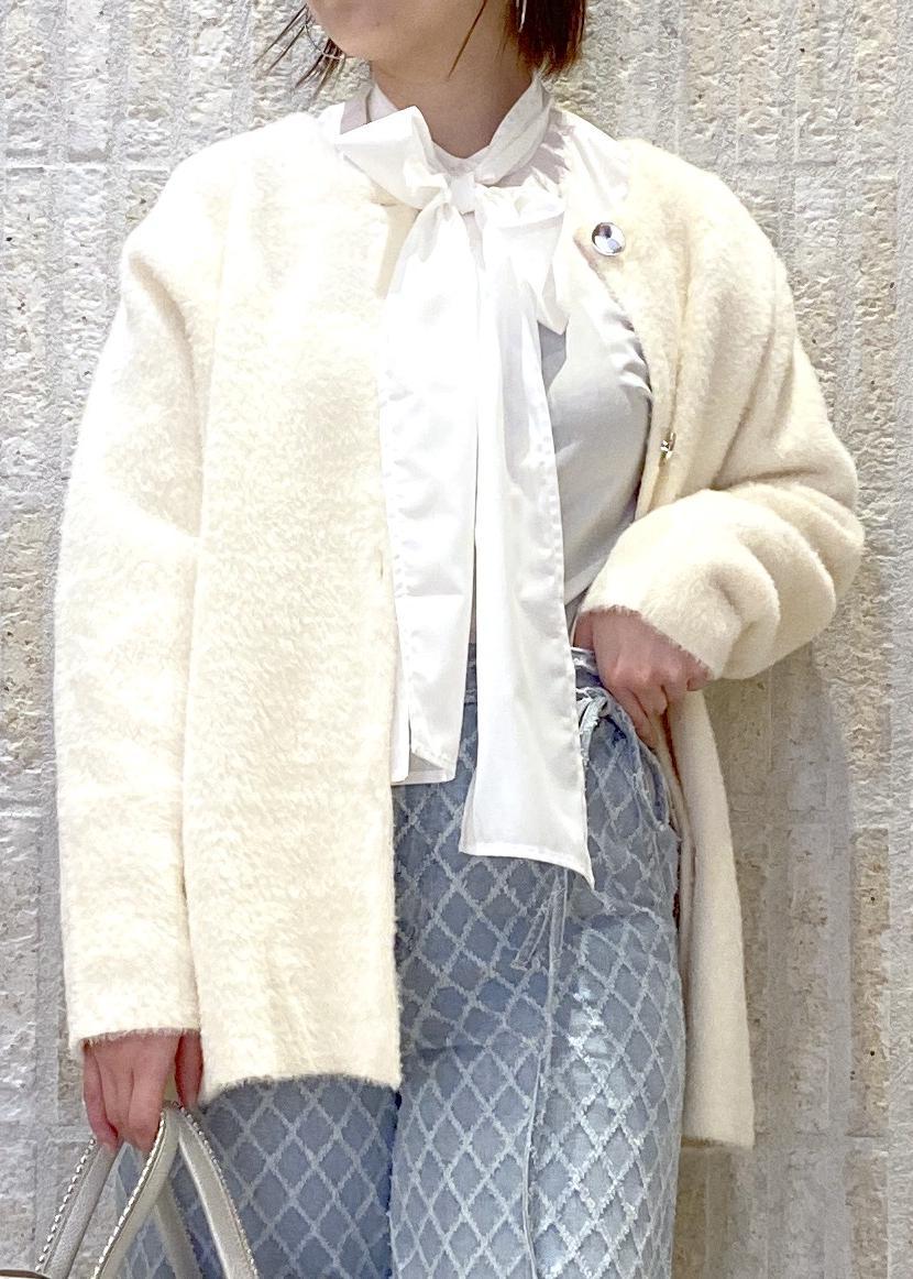 VIS接結メタルボタンミニフェザーニットコートオフホワイト / F¥7,999レビュー去年も人気だったファーカーデが今年も入荷してます!