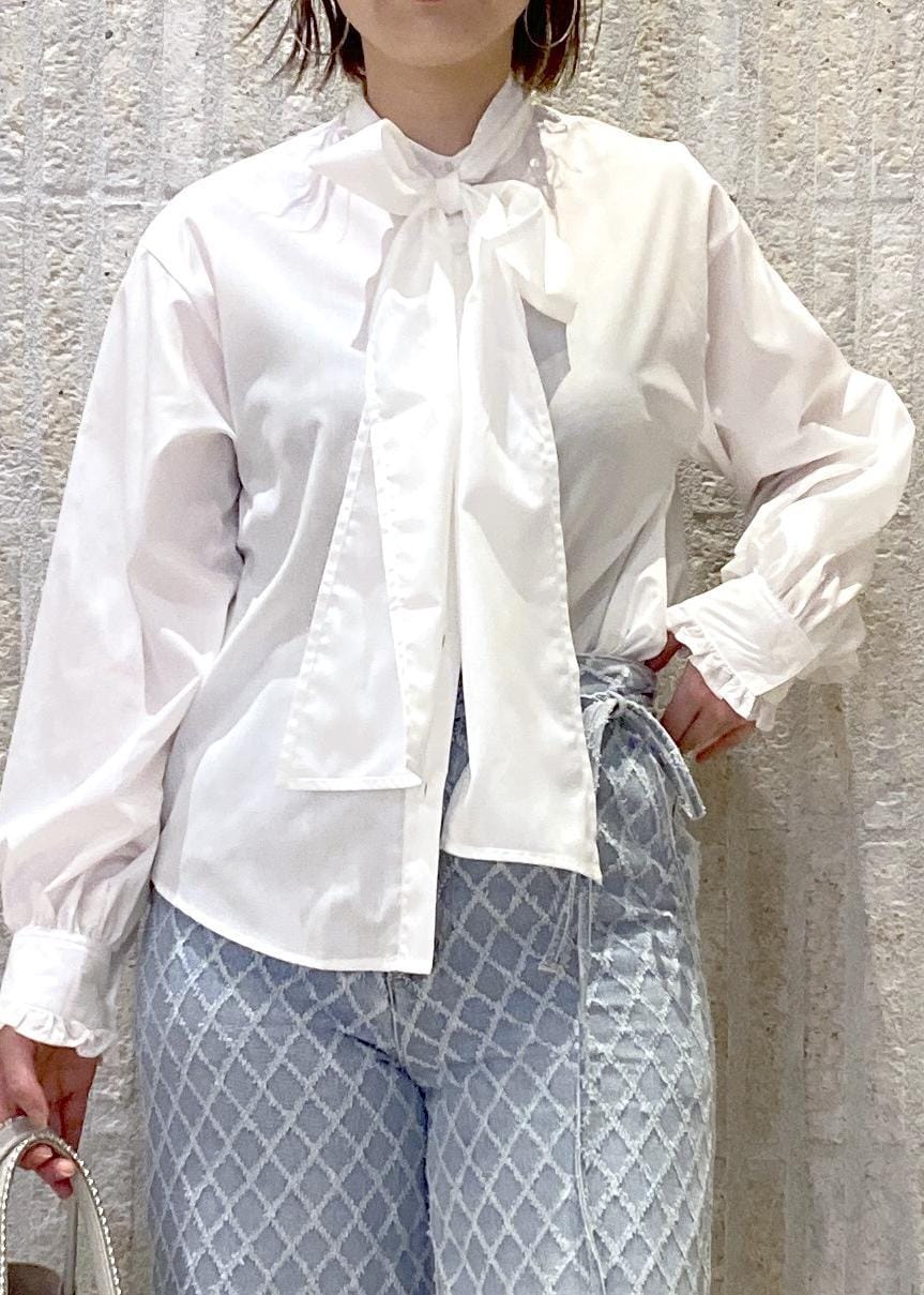 VISチェック&デニムアソートボウタイリボン付きスタンドカラーシャツホワイト / F¥6,589レビュー程よくゆとりもあり着やすさ◎