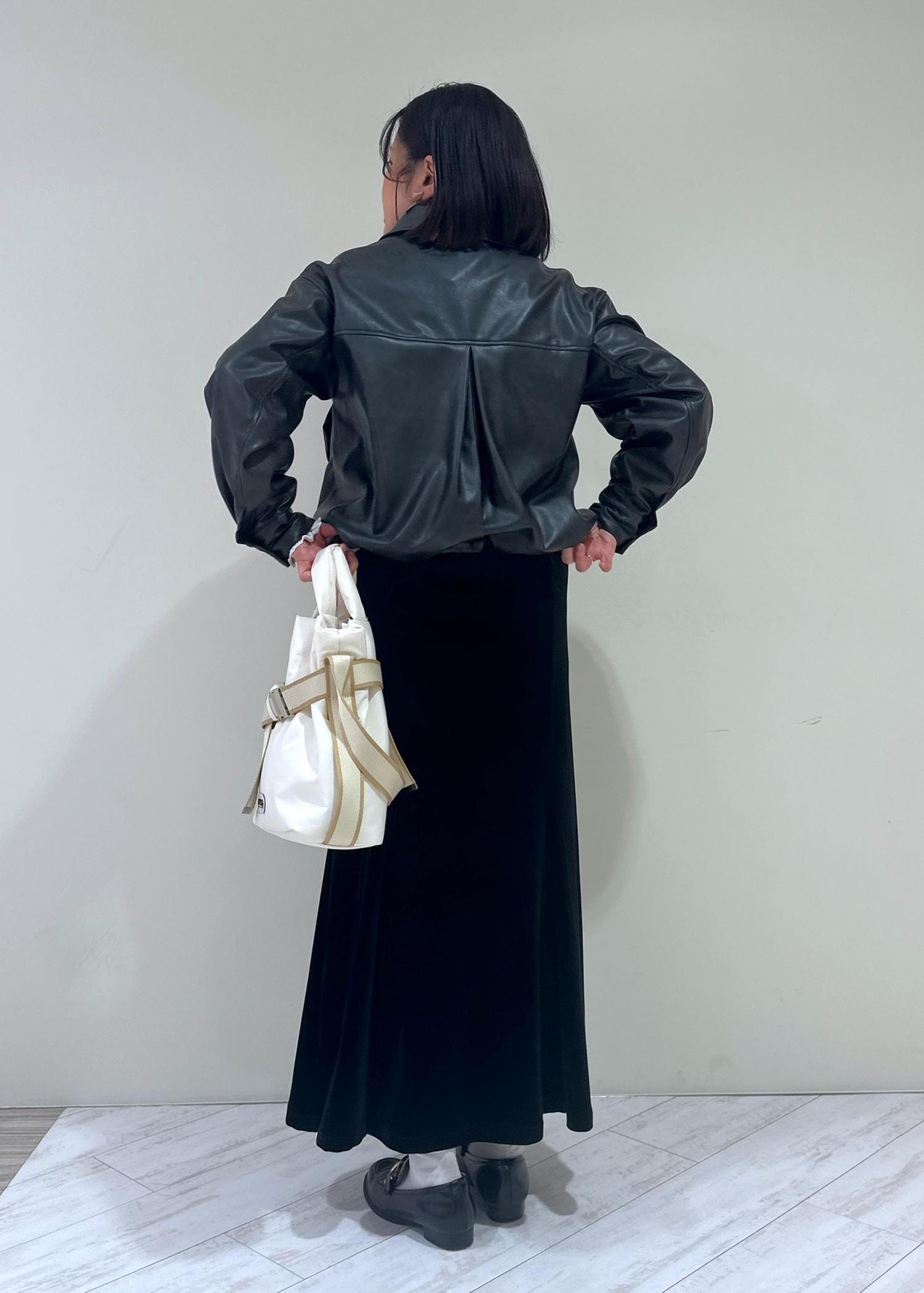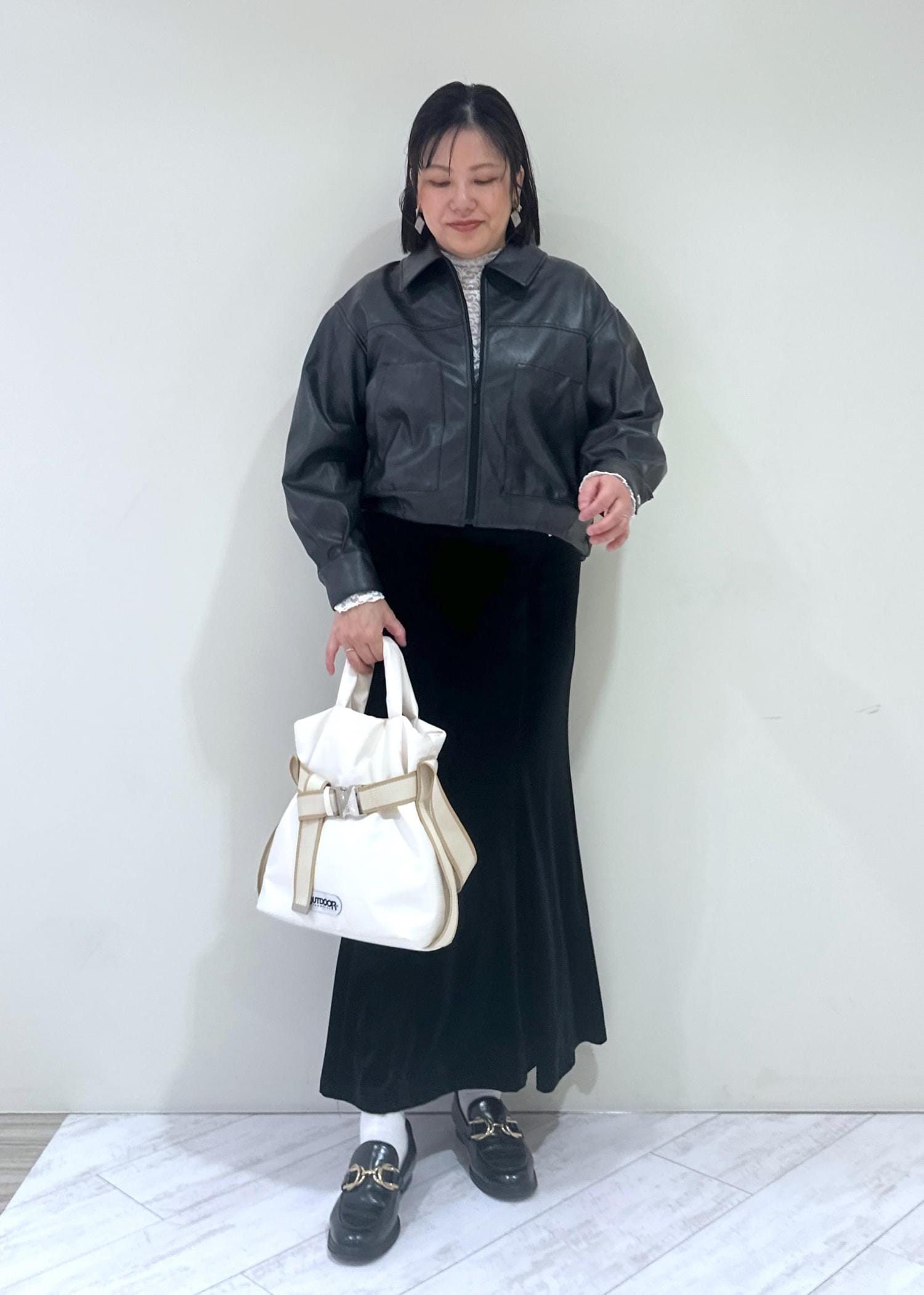 ハードな印象になることもなく、ワンピースやスカートスタイルにも合わせられます。 -