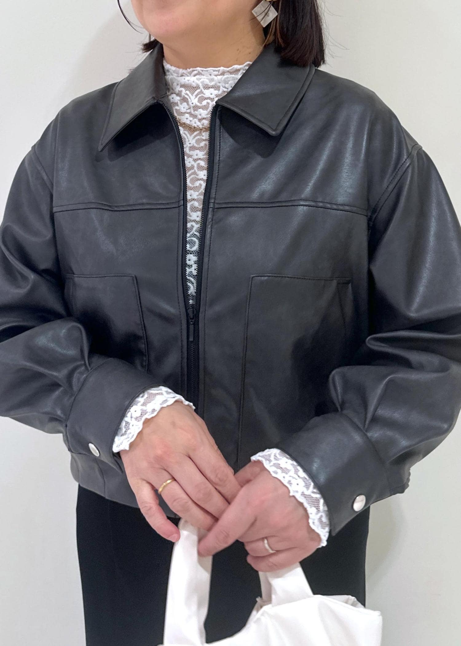 VISアウトポケット合皮ブルゾンブラック / F¥10,989レビュー素材が柔らかくて着やすい!