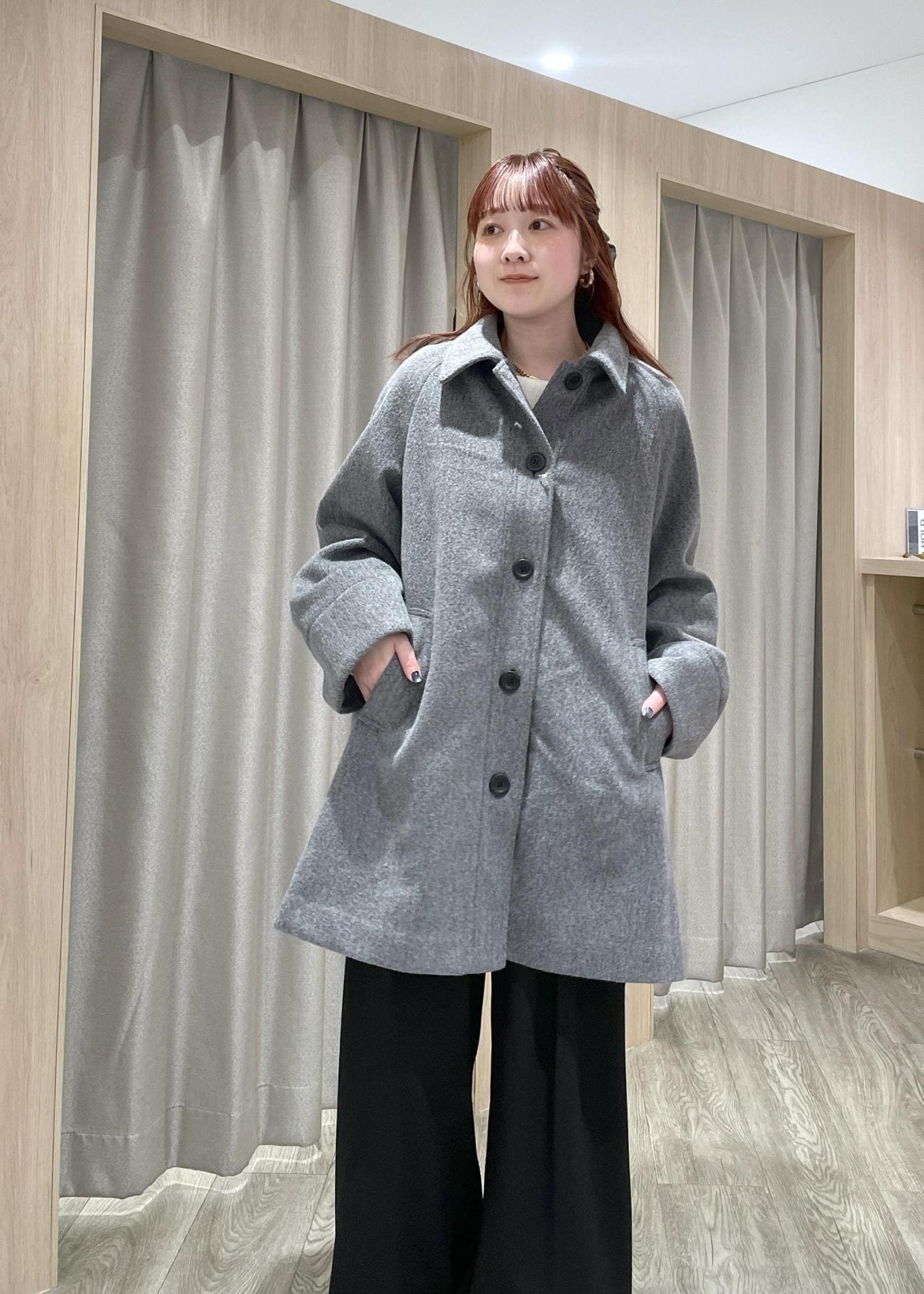 VISファー付きAラインステンコートグレー / F¥12,936レビューAラインシルエットで横幅は広めですがオーバーサイズすぎず、程よいゆるさが可愛いミドル丈コートです♡襟元のファーは取り外し可能なので、綺麗めから普段使いまで様々なシーンで着て頂けます!