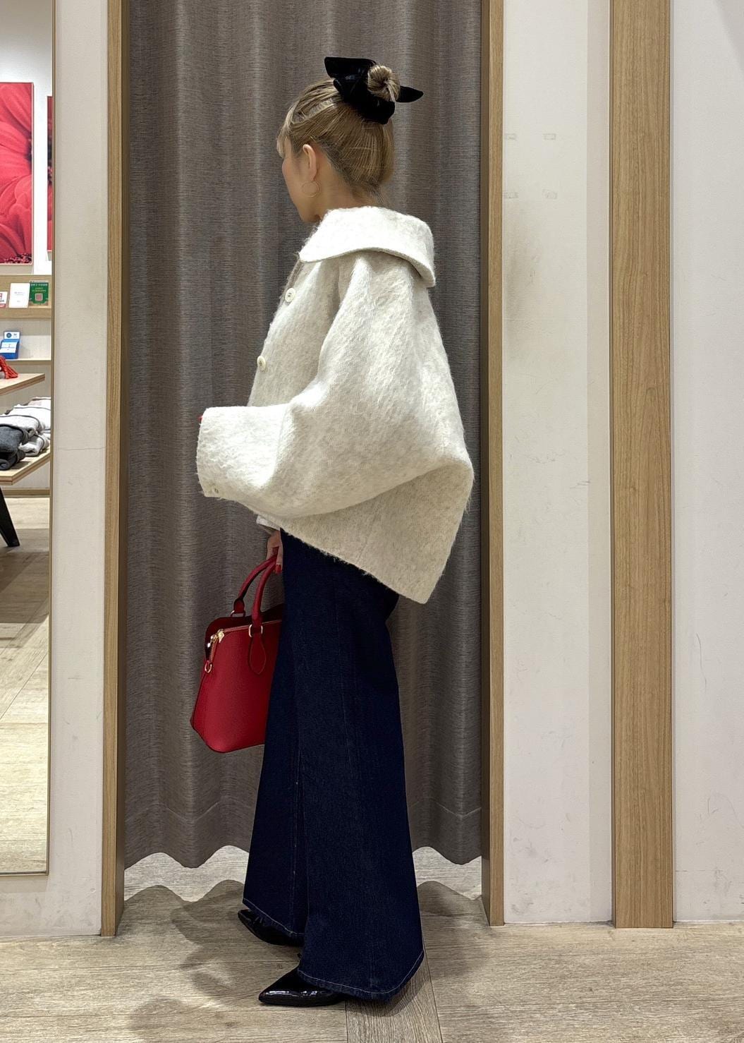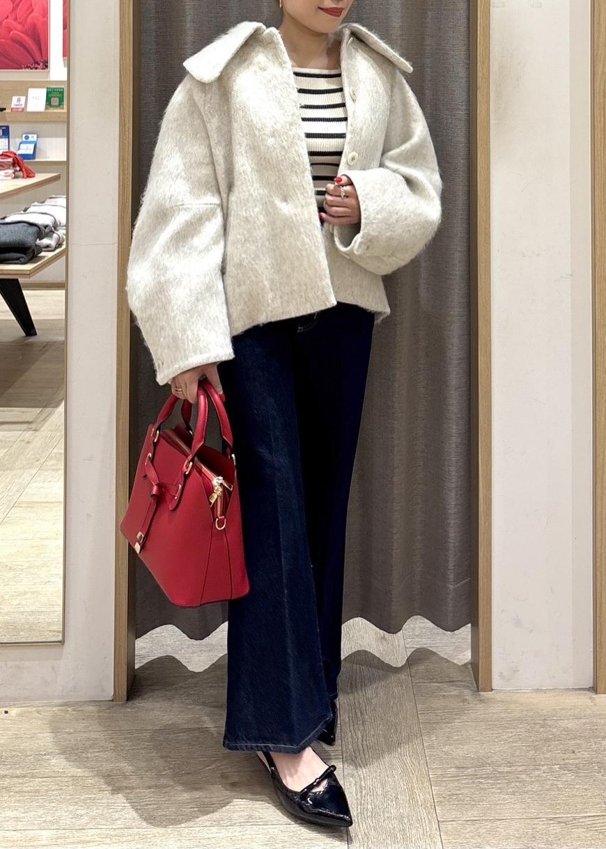 VIS【アウター総選挙1位】ビッグカラーモモンガシャギーショートコートオフホワイト / S¥8,791レビュー身長154㎝でSサイズ着用。