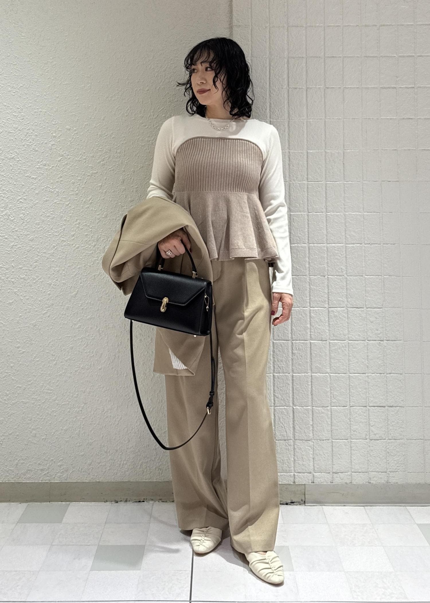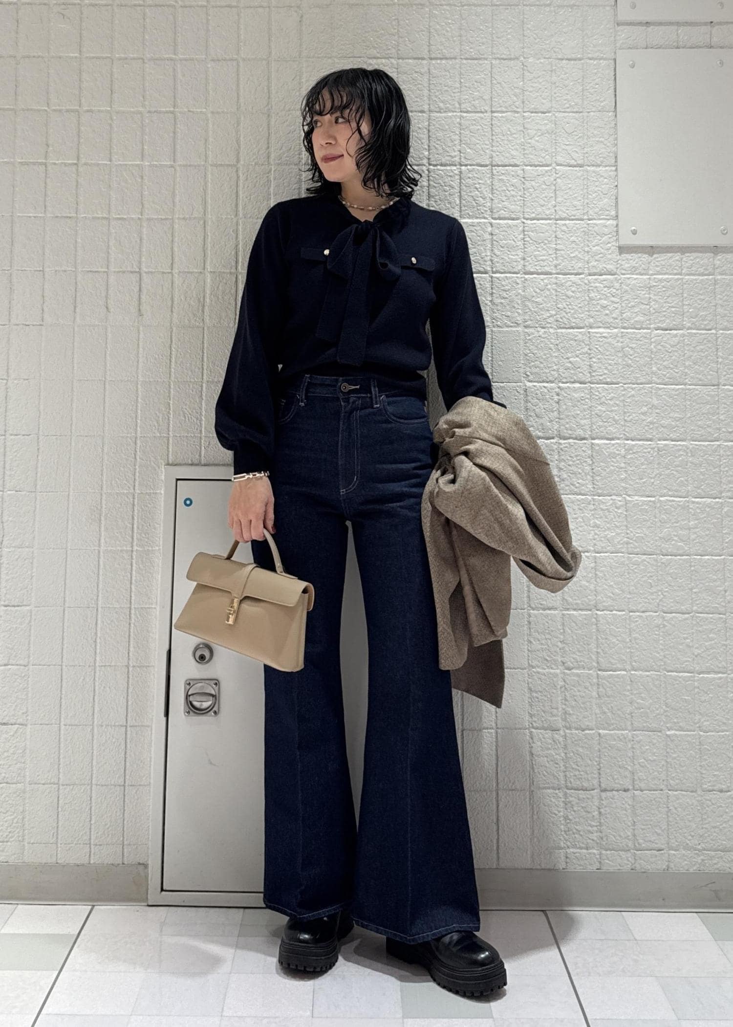 カジュアルになり過ぎないようにピタっと細身のトップスで合わせるとバランスが良くなります♪