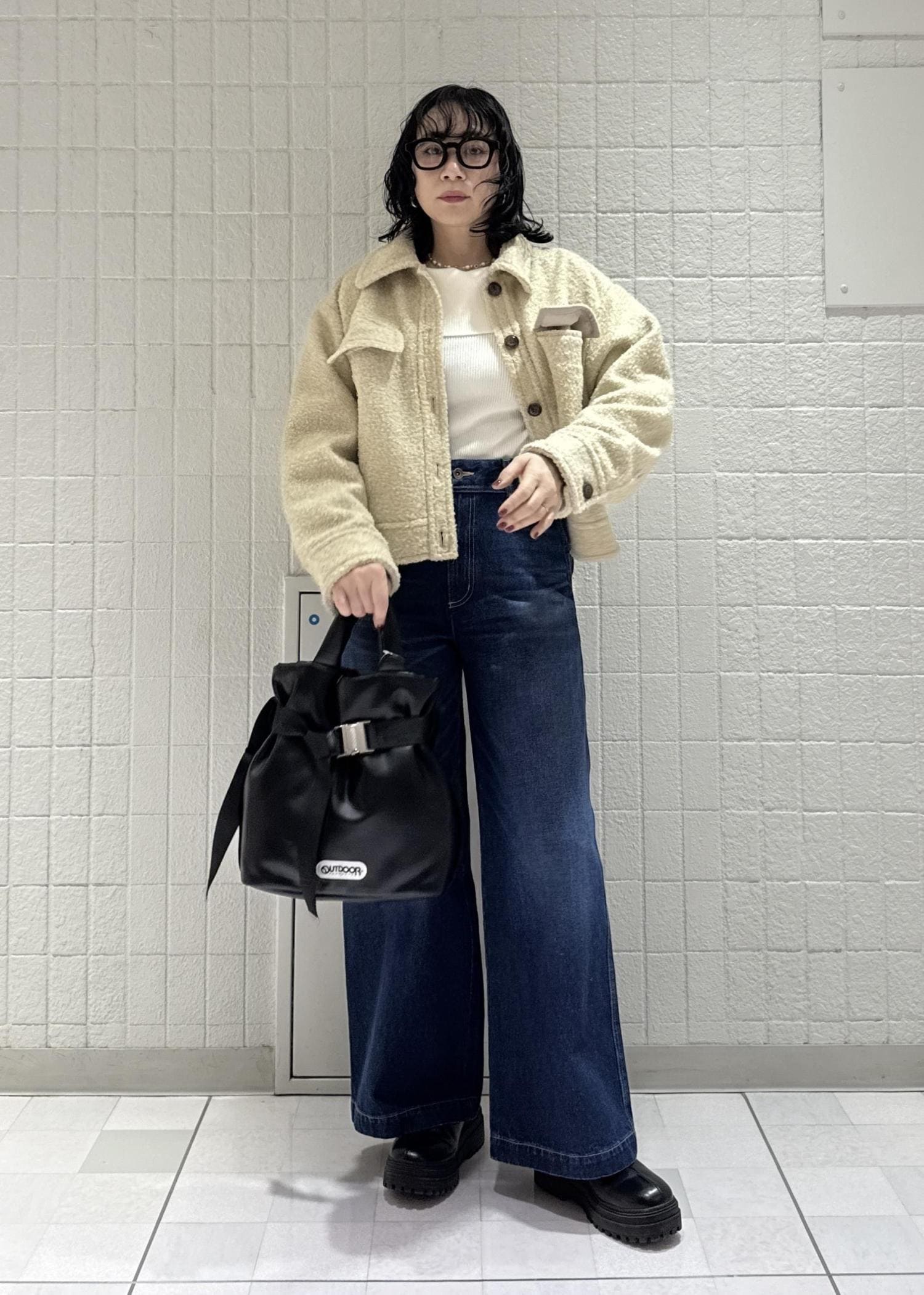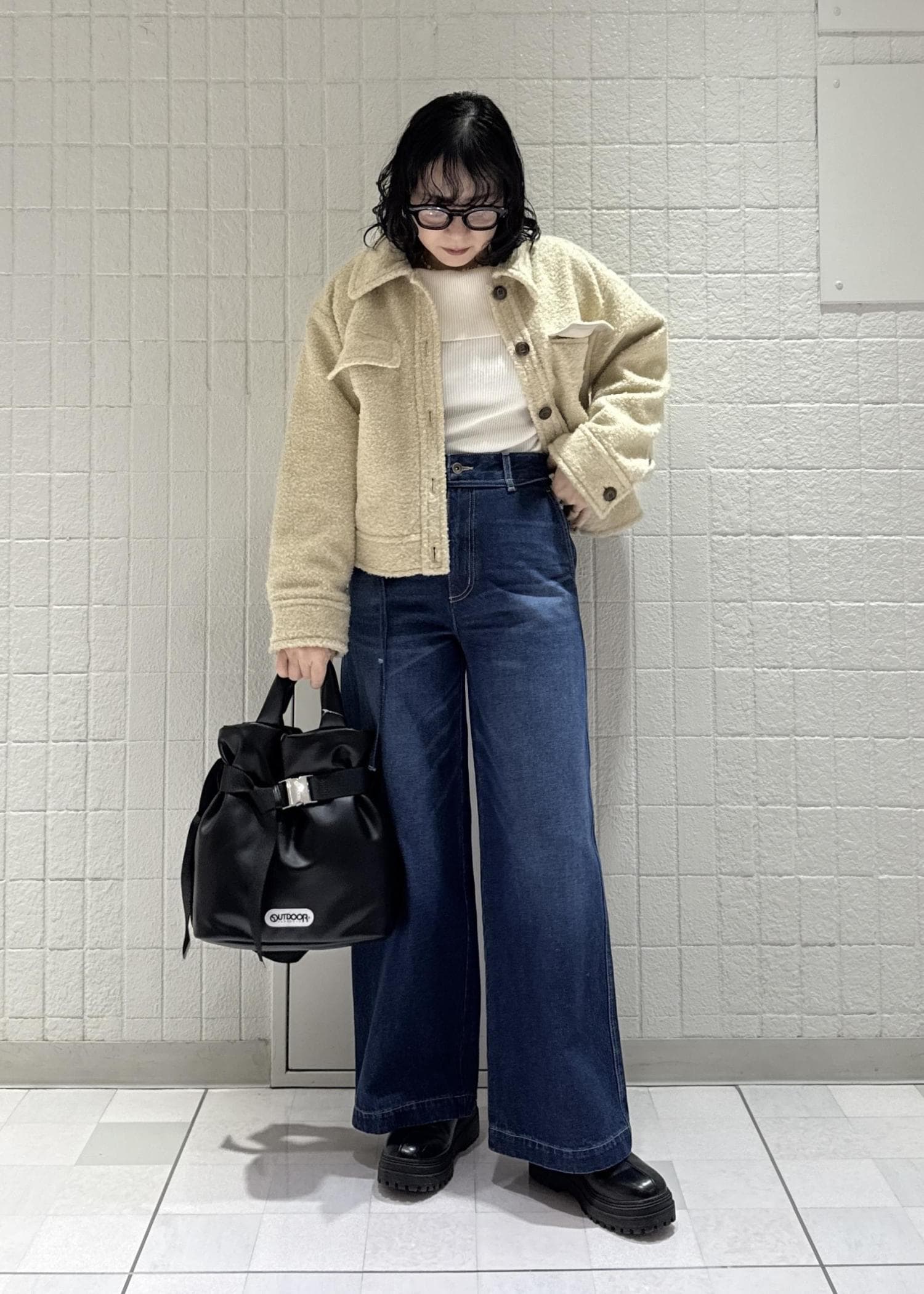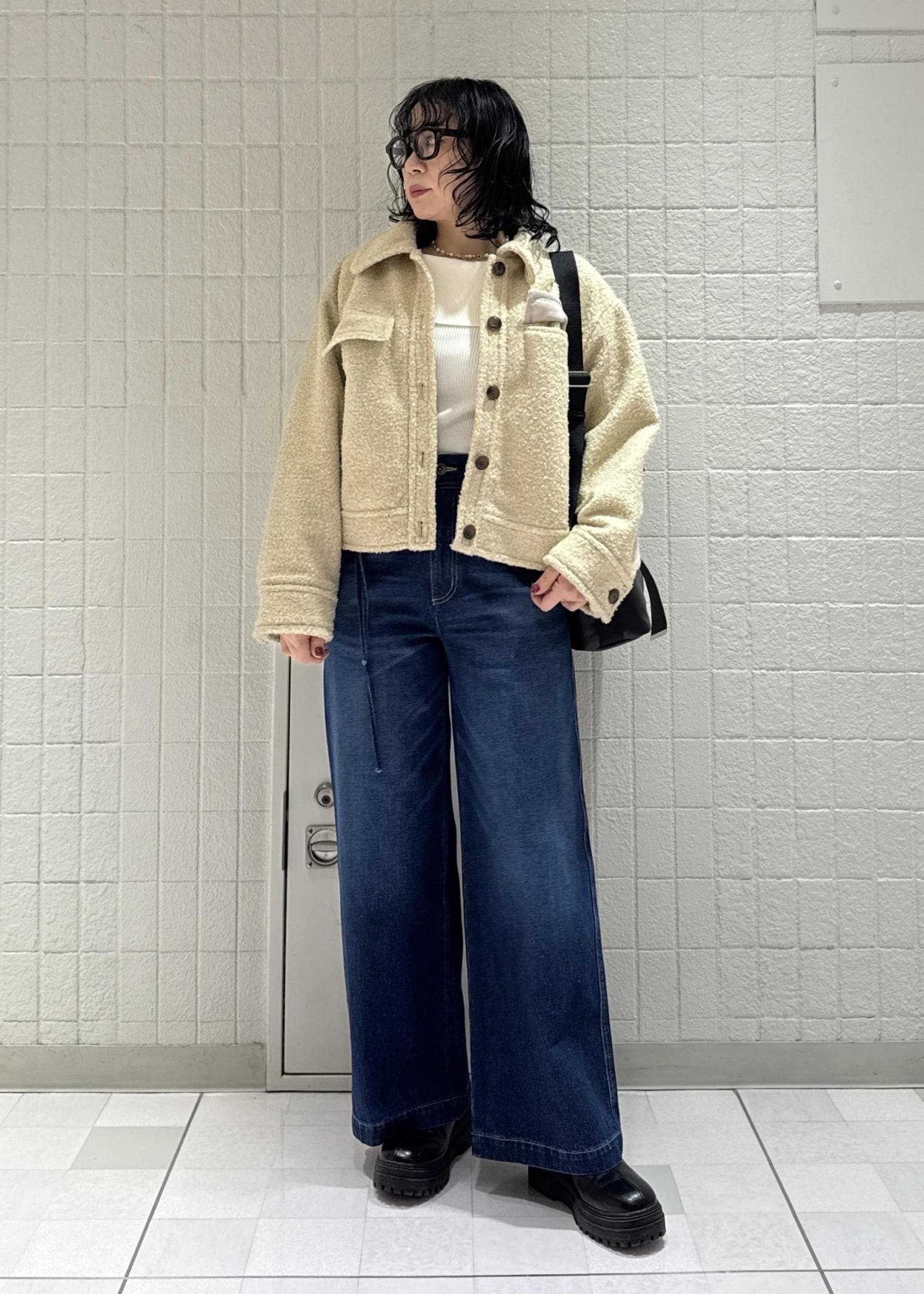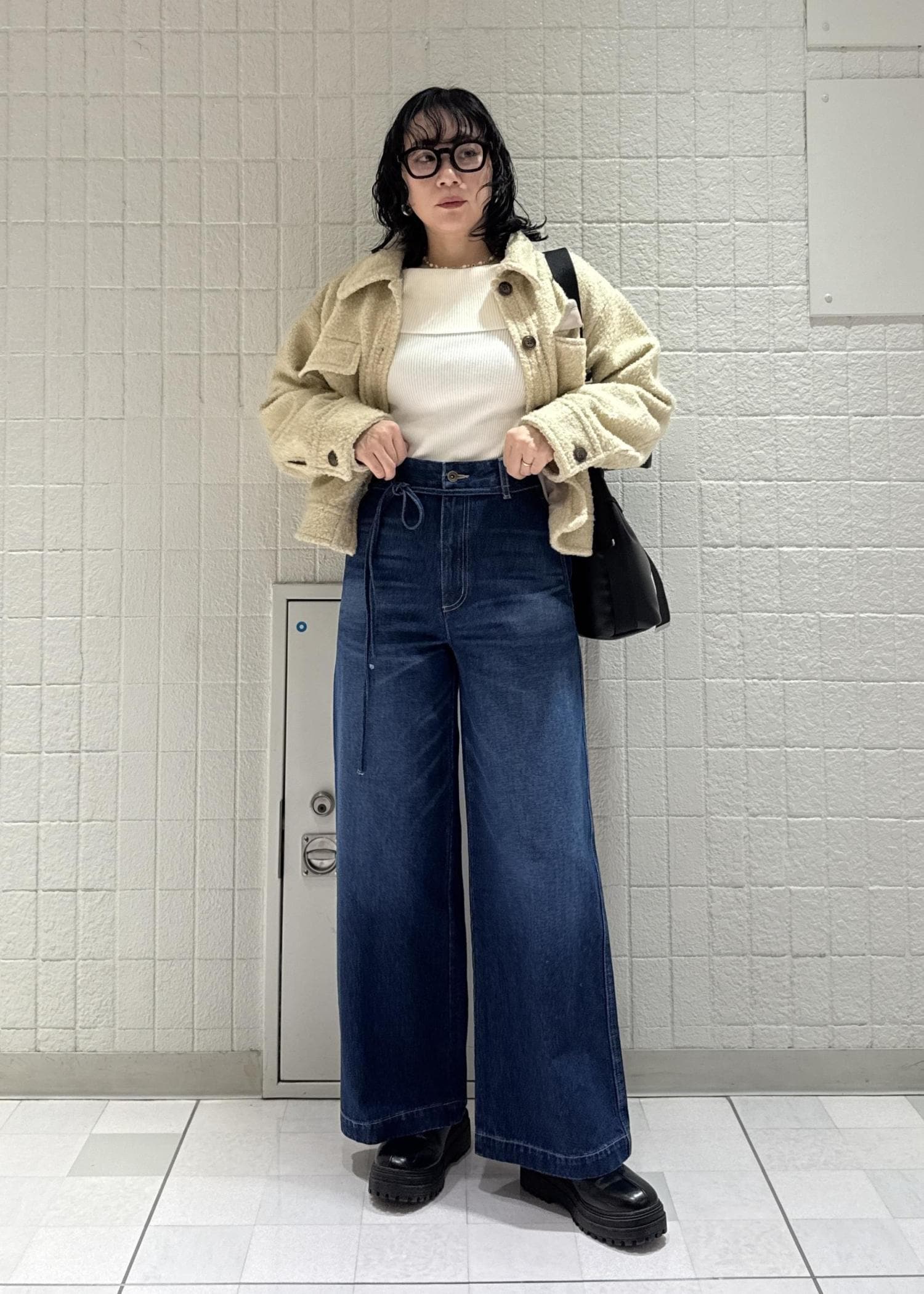 カジュアルに決まるワイドデニムはストレッチが効いていて楽な履き心地です。