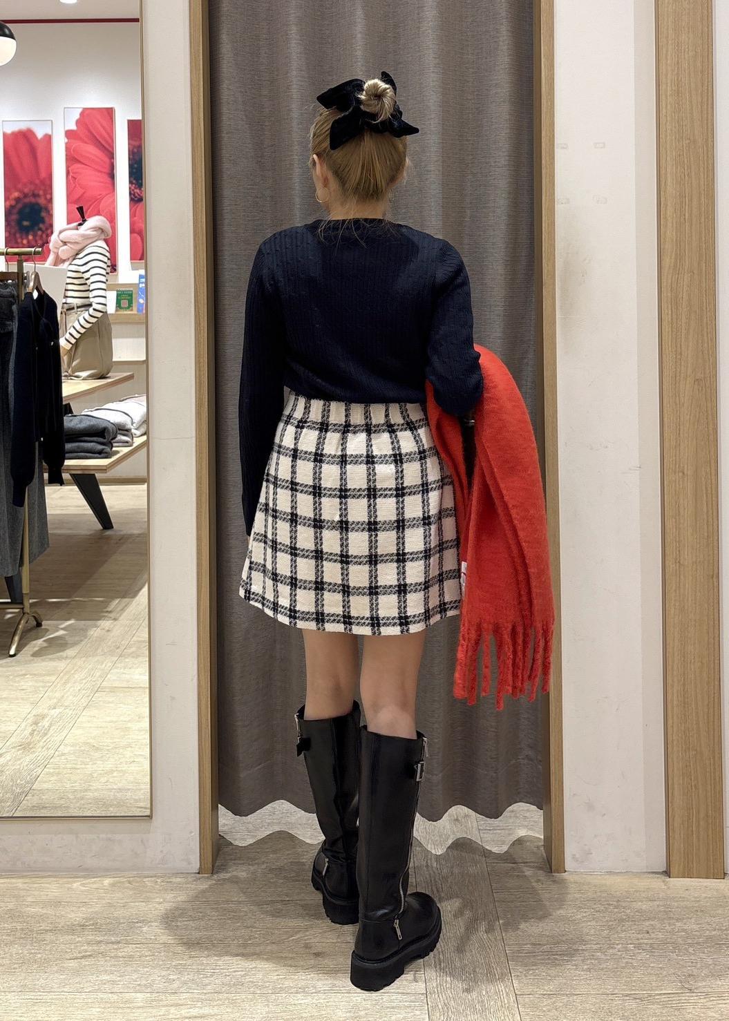 VISロービングチェックミニスカートオフホワイト / F¥5,271レビュー身長154㎝でFサイズ着用。