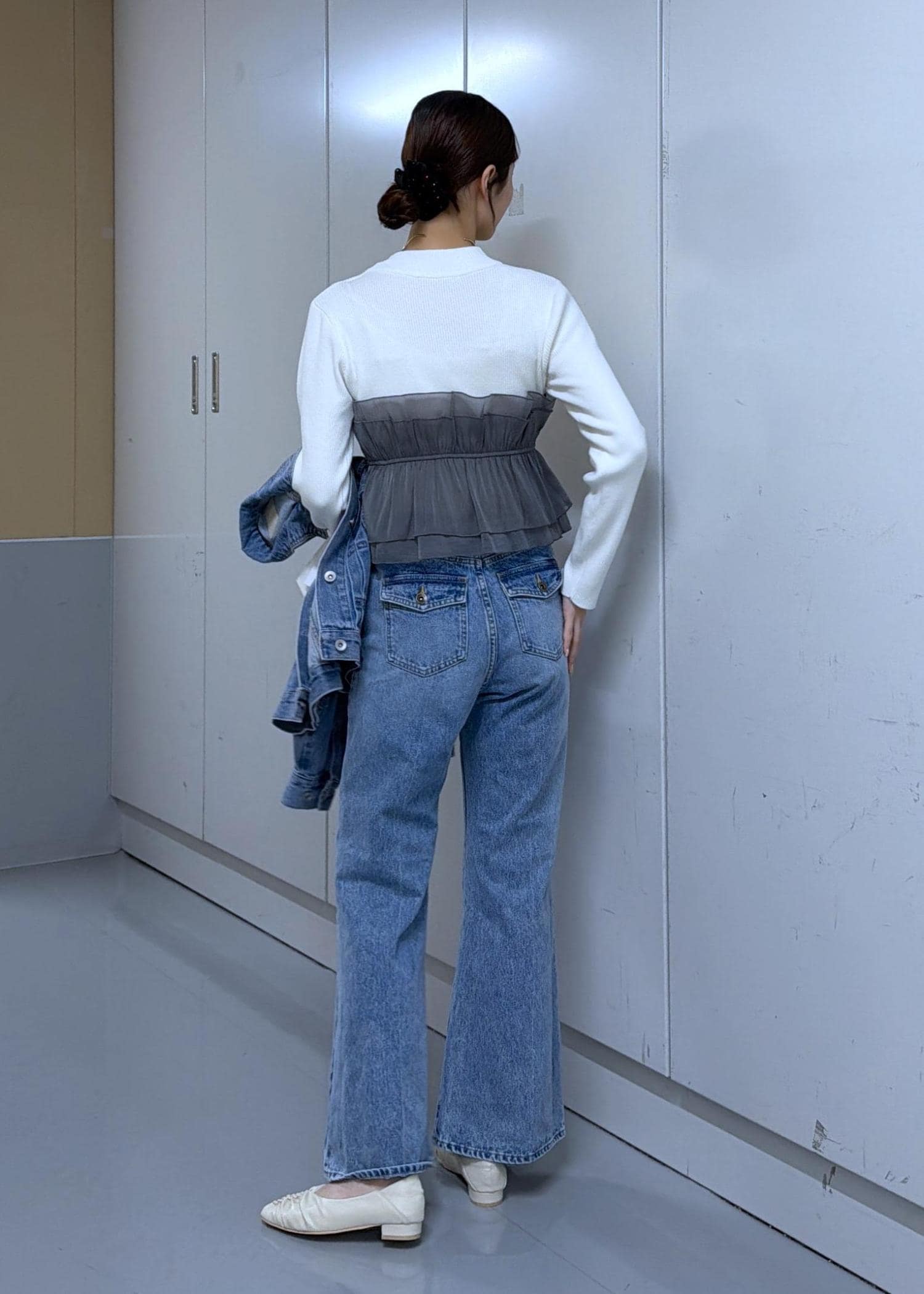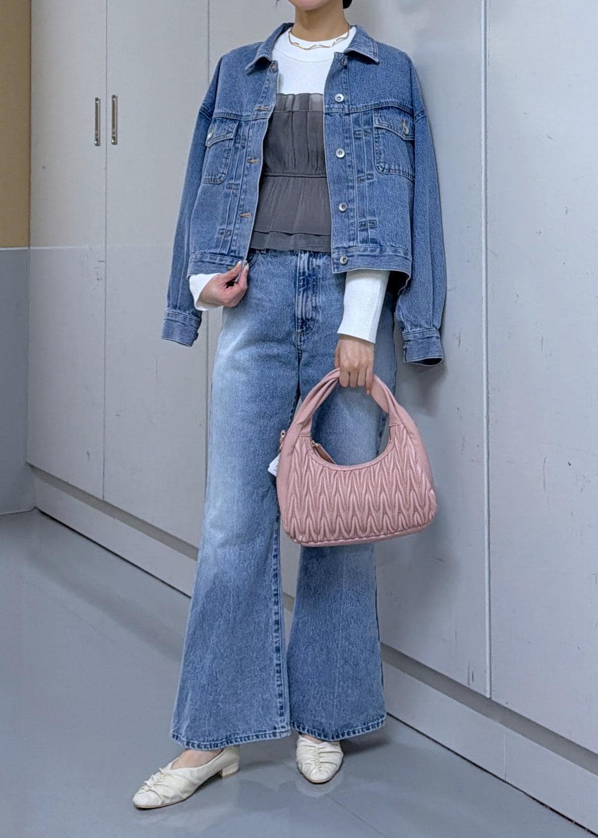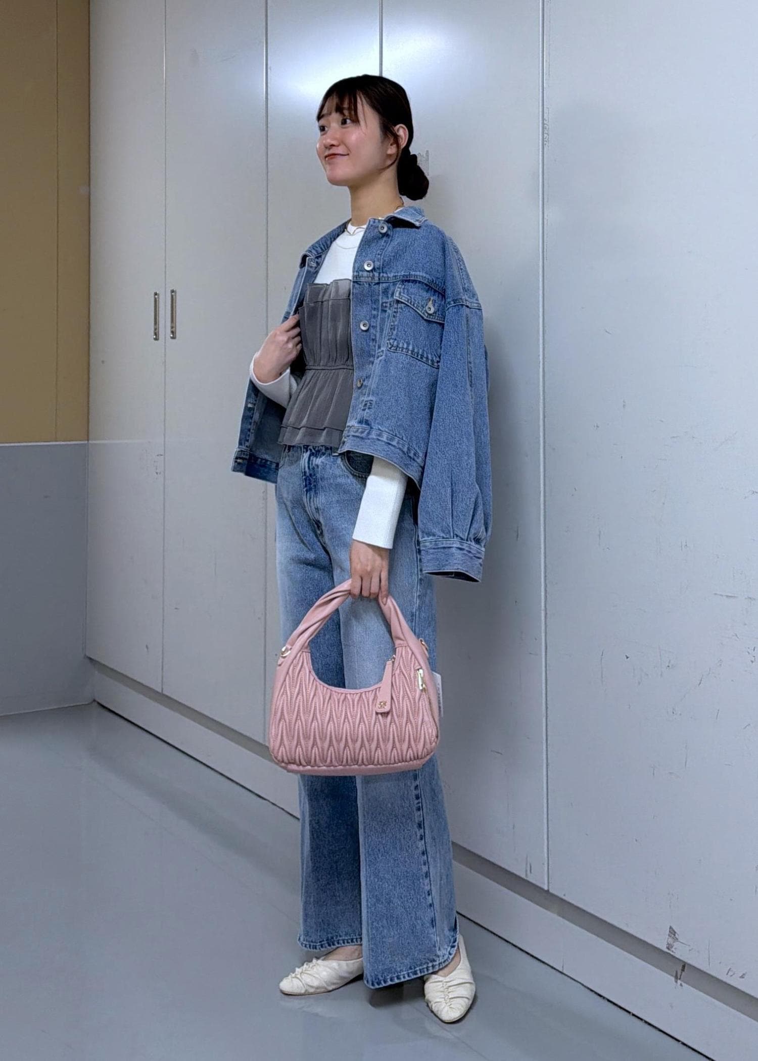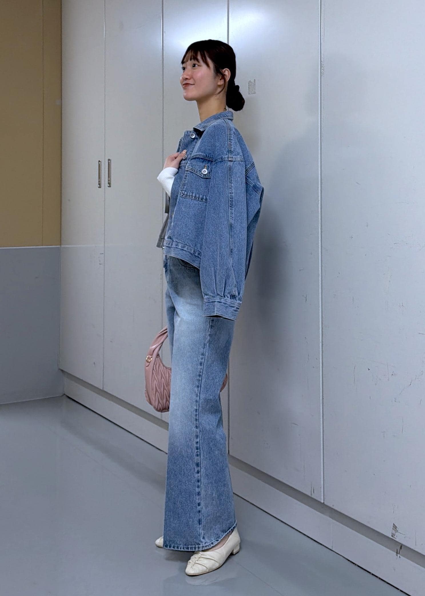 VISボリュームスリーブデニムジャケットサックス / F¥9,999レビュー167cmの身長で短くなり過ぎずちょうどいい丈感でした。肩を落として着ていただくと抜け感がでておすすめです!!デニムジャケットなのですが柔らかいので着やすかったです◎