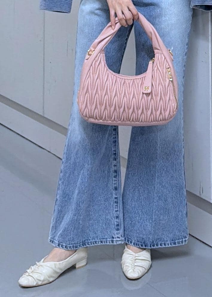 VIS【2WAY】ねじりハンドルキルティングバッグピンク系 / F¥6,327レビュー高級感のあるデザインになっており高見えするバッグとなっています。ショルダーも付いているので気分に合わせてできるのでおすすめです。