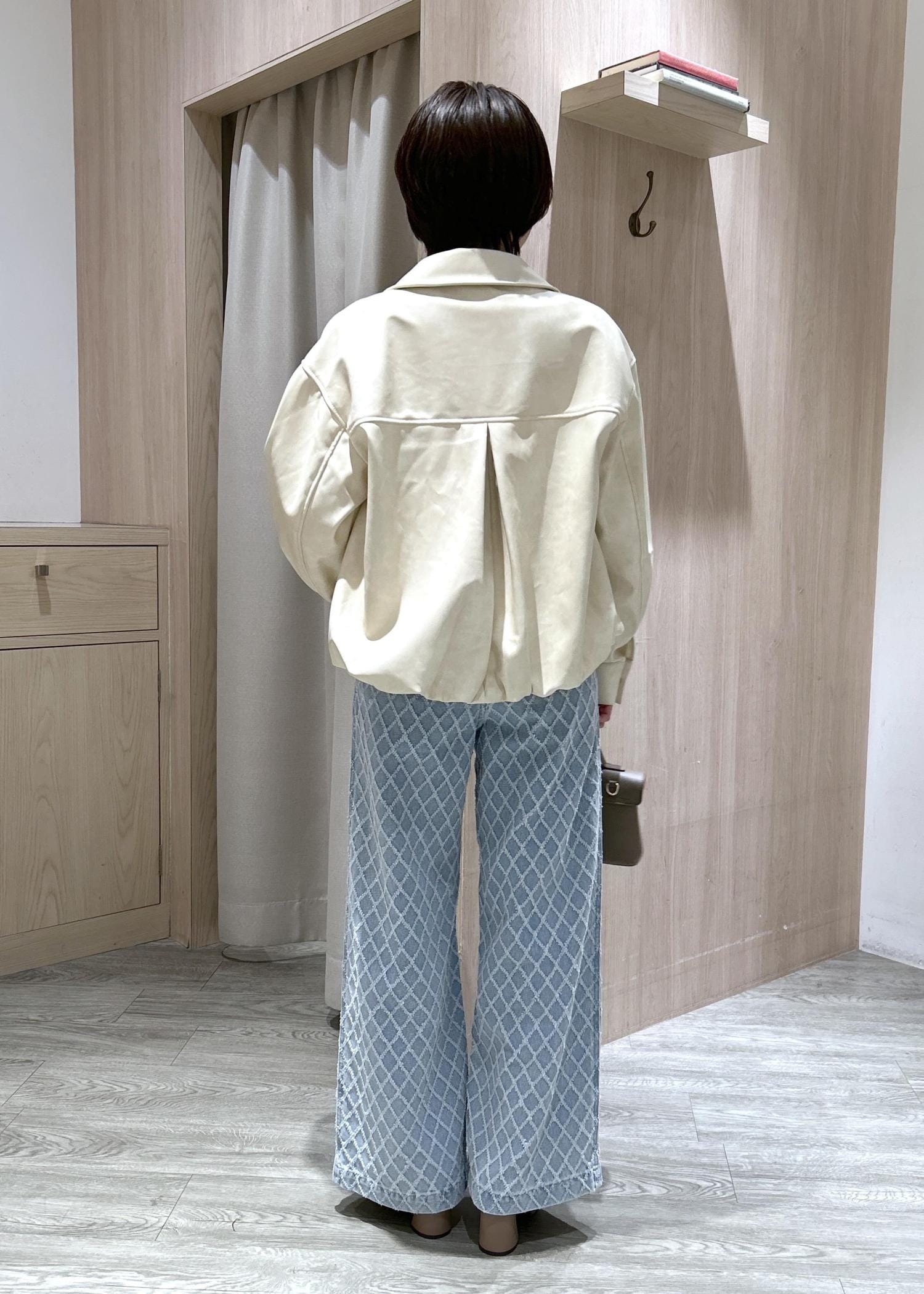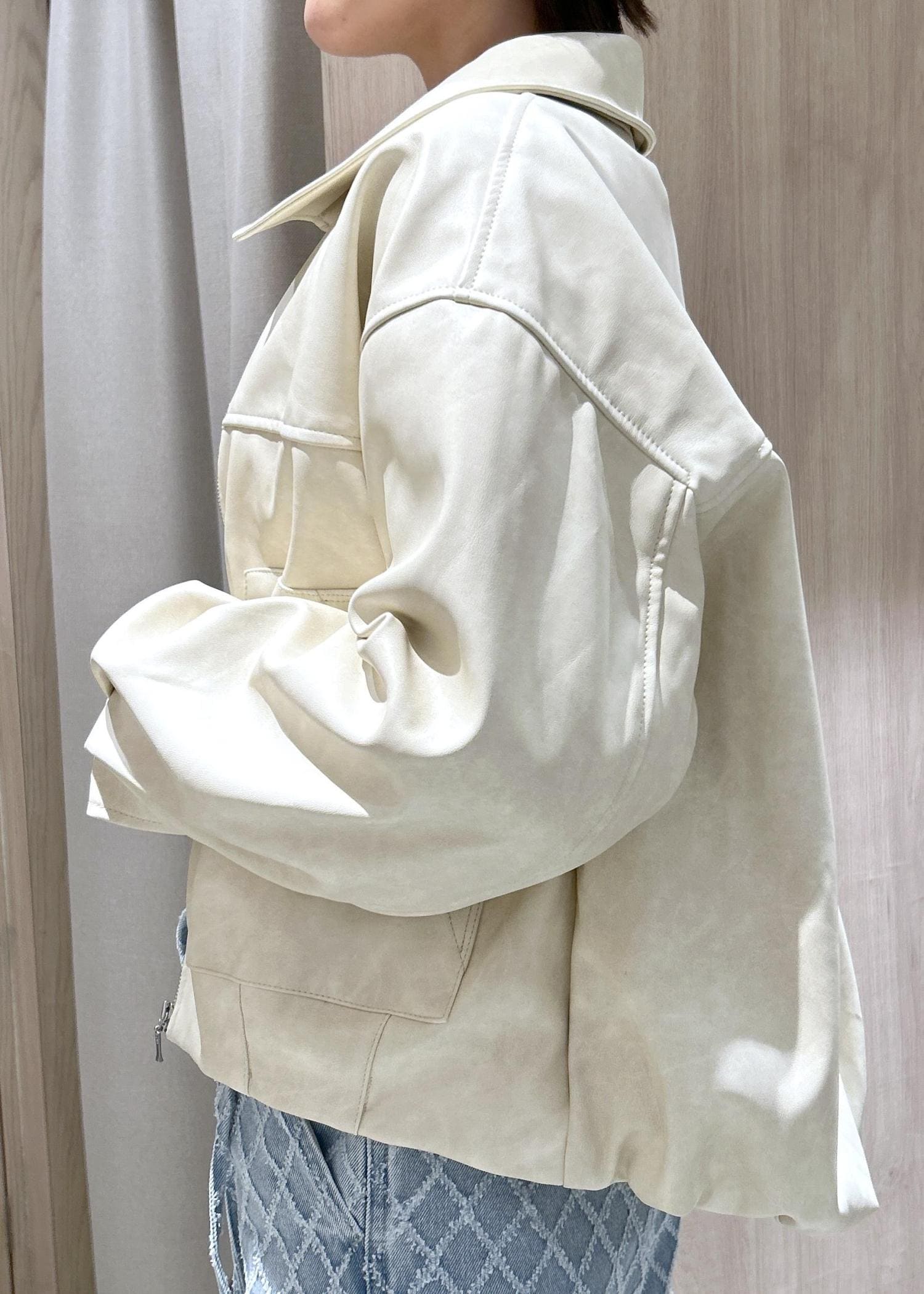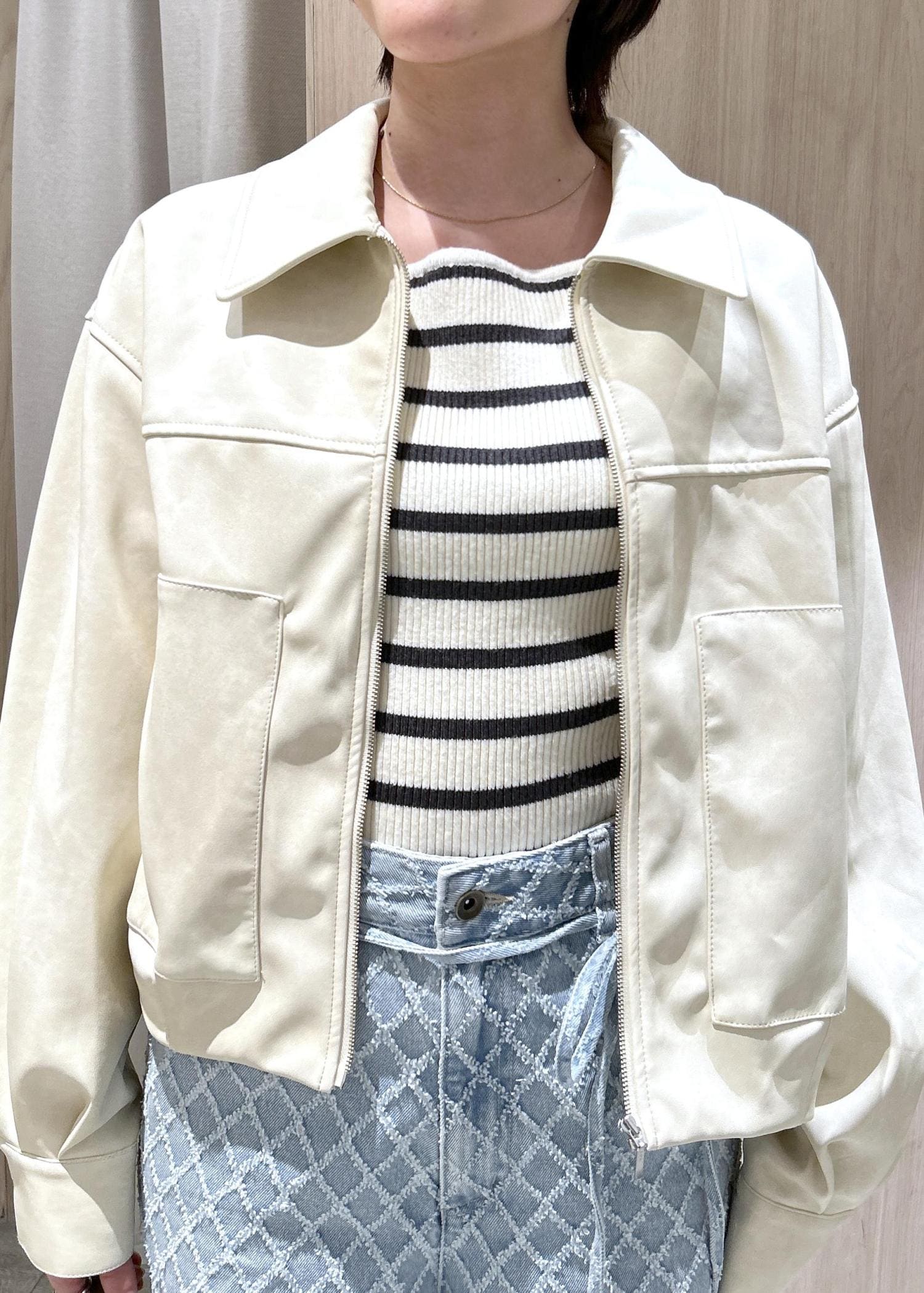 VISアウトポケット合皮ブルゾンクリーム / F¥10,989レビュー身長155cm、お尻が少し隠れる長さです。