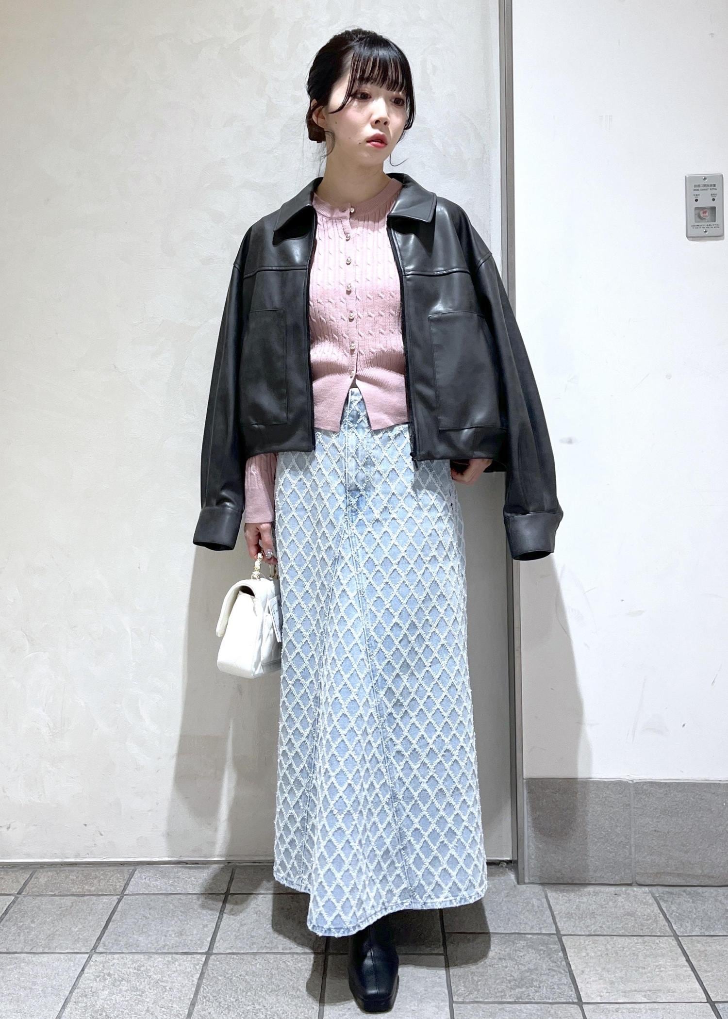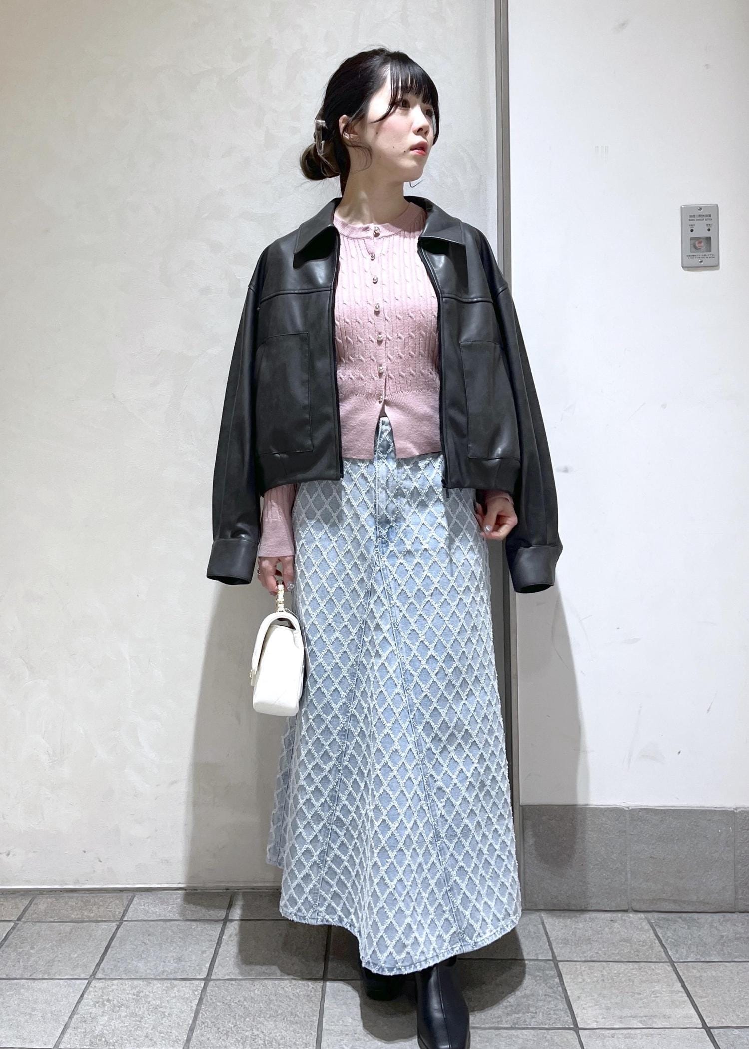 ピンクのカーディガンをポイントに、春コーデ組んでみました!足元とアウターを黒で統一して大人っぽくしました!