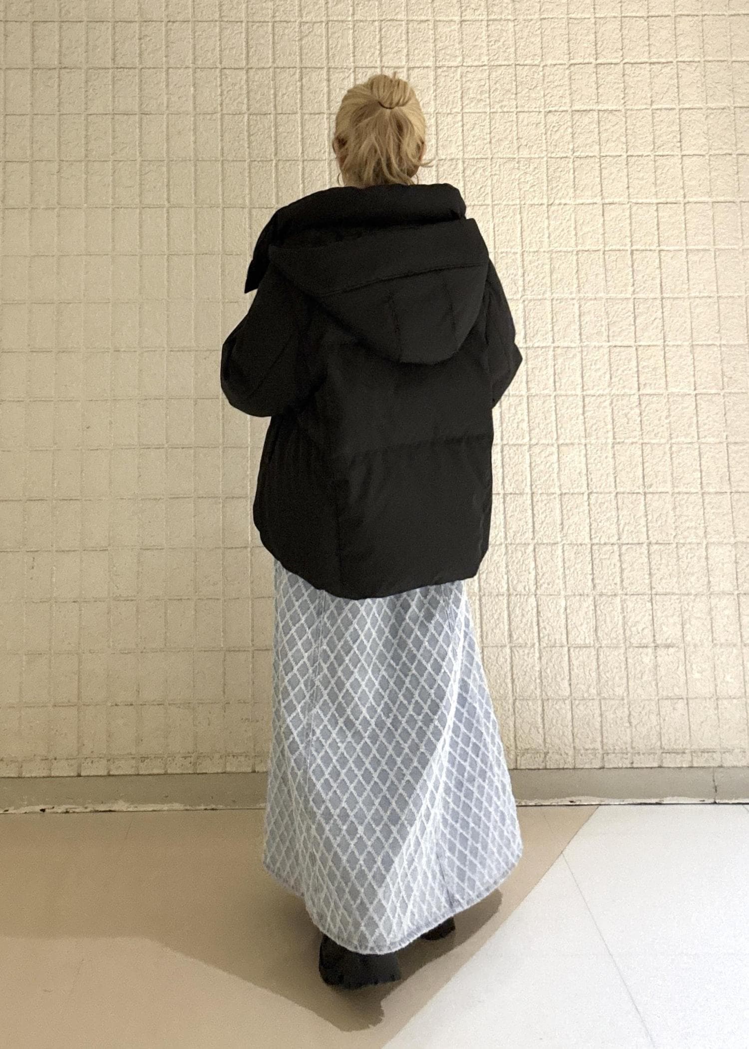 あえてブラックのダウンと合わせてライトブルーが映える組み合わせにしてみました。