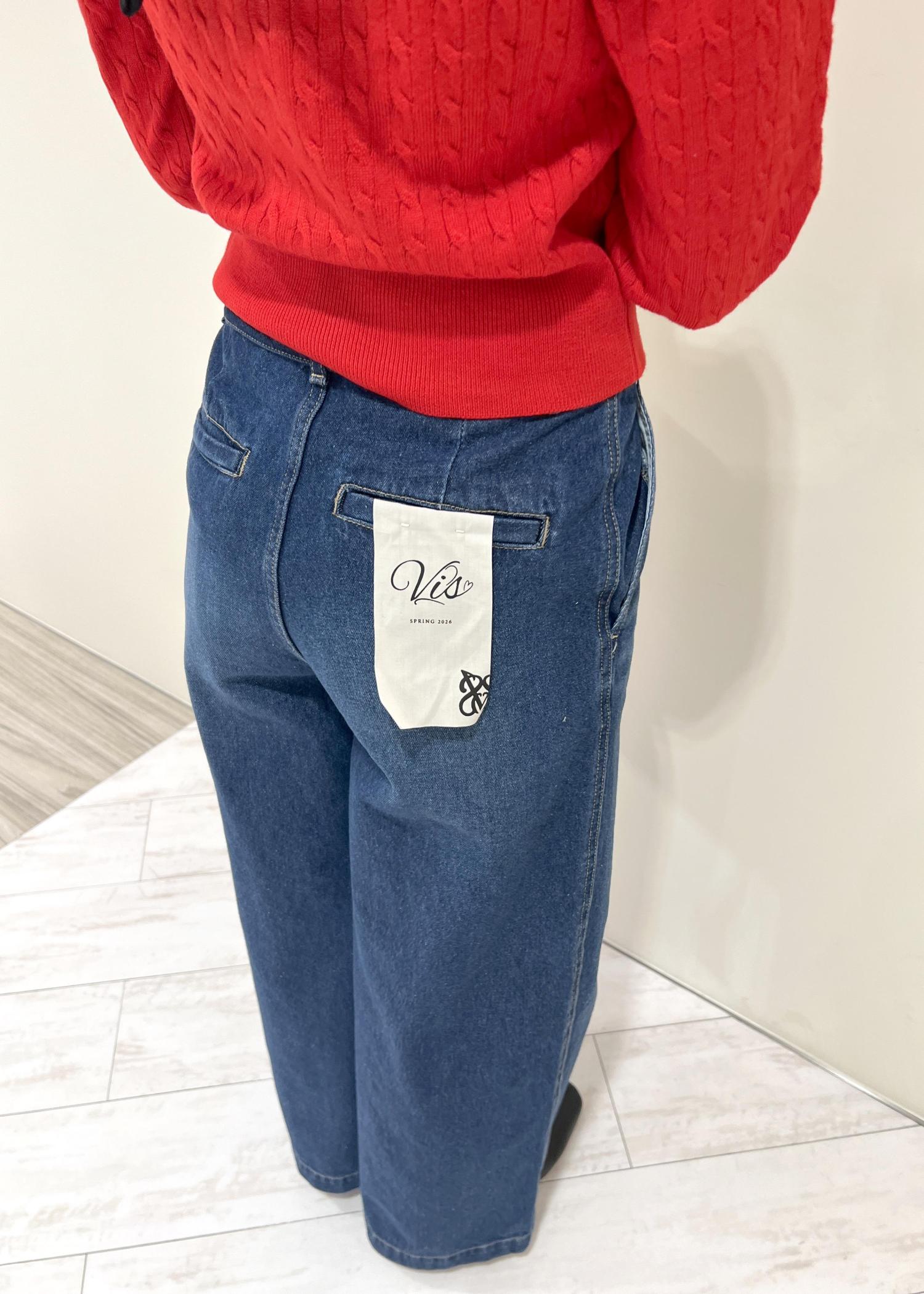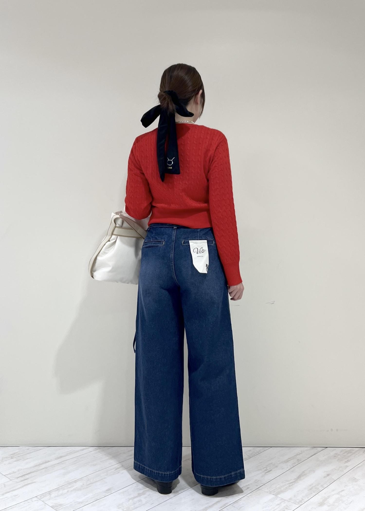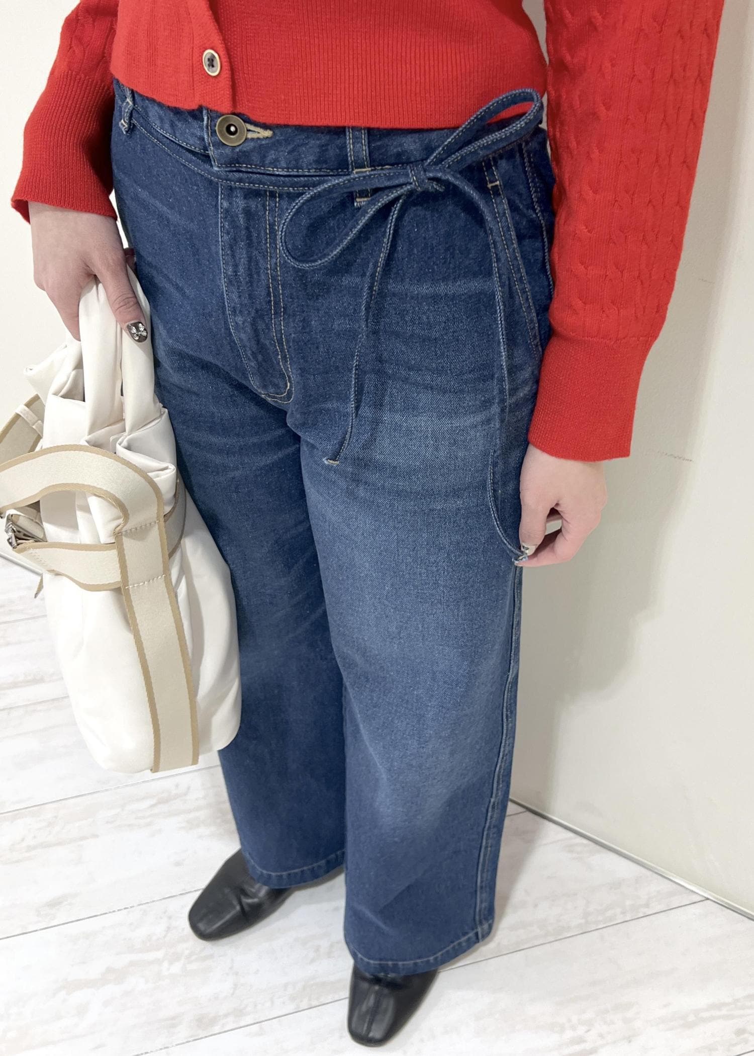 VISベルト付きワイドシルエットデニムパンツブルー / M¥8,899レビューワイドなので程よく余裕のあるサイズ感でした。身長164cm、Mサイズ着用、ぺたんこのスニーカーで床に付かず着用出来ます!