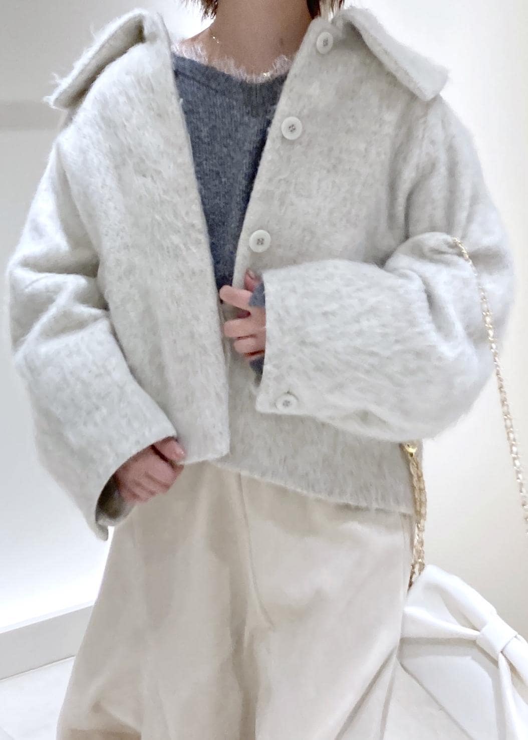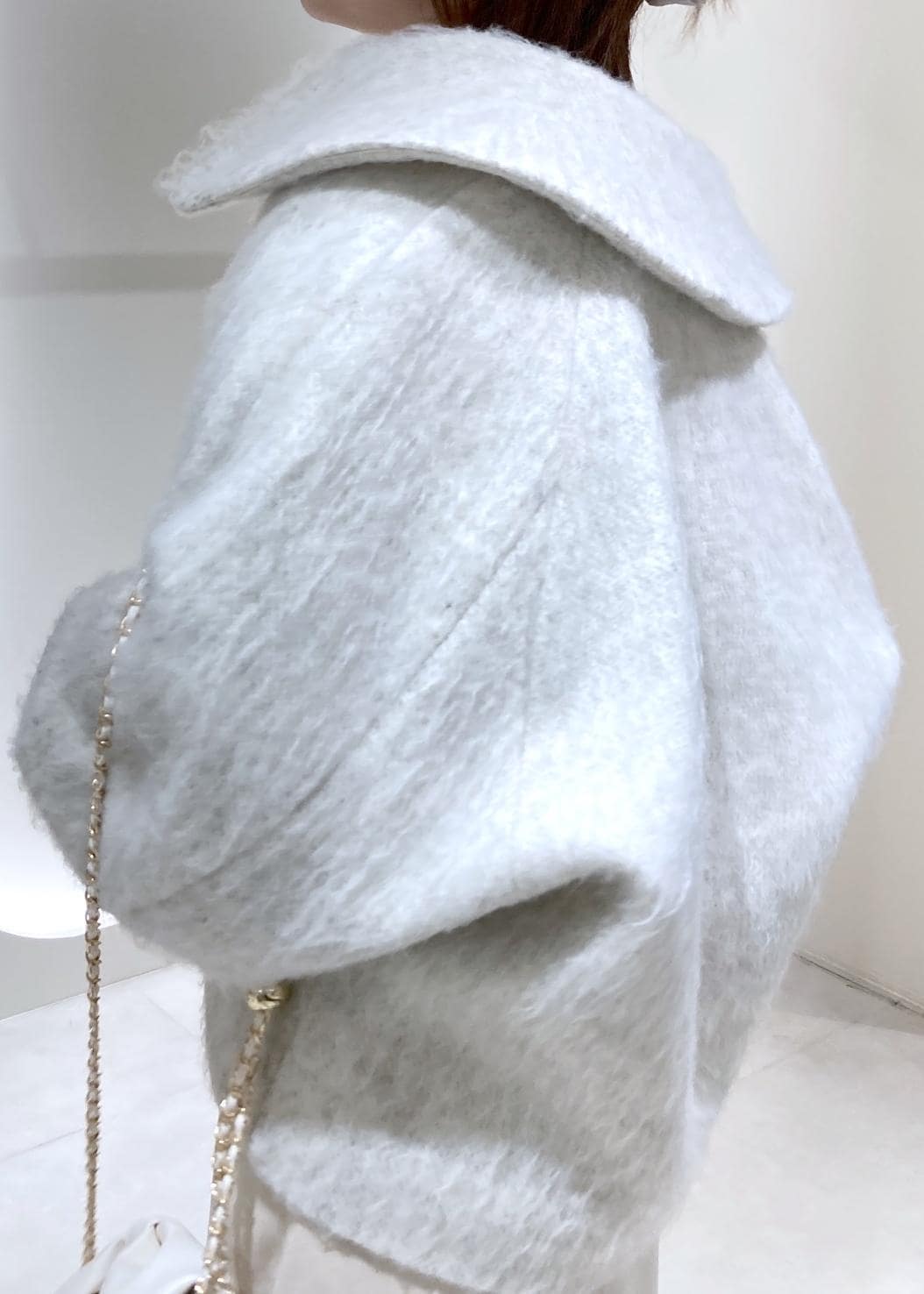 2BUY10%OFFVIS【アウター総選挙1位】ビッグカラーモモンガシャギーショートコートオフホワイト / S¥8,791レビュー155cmでS着用です。