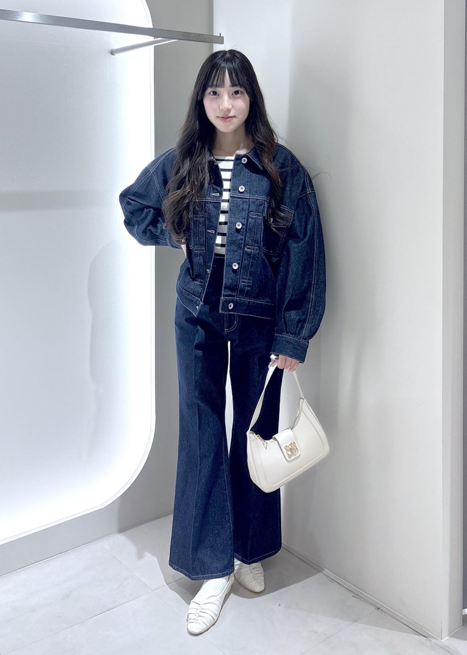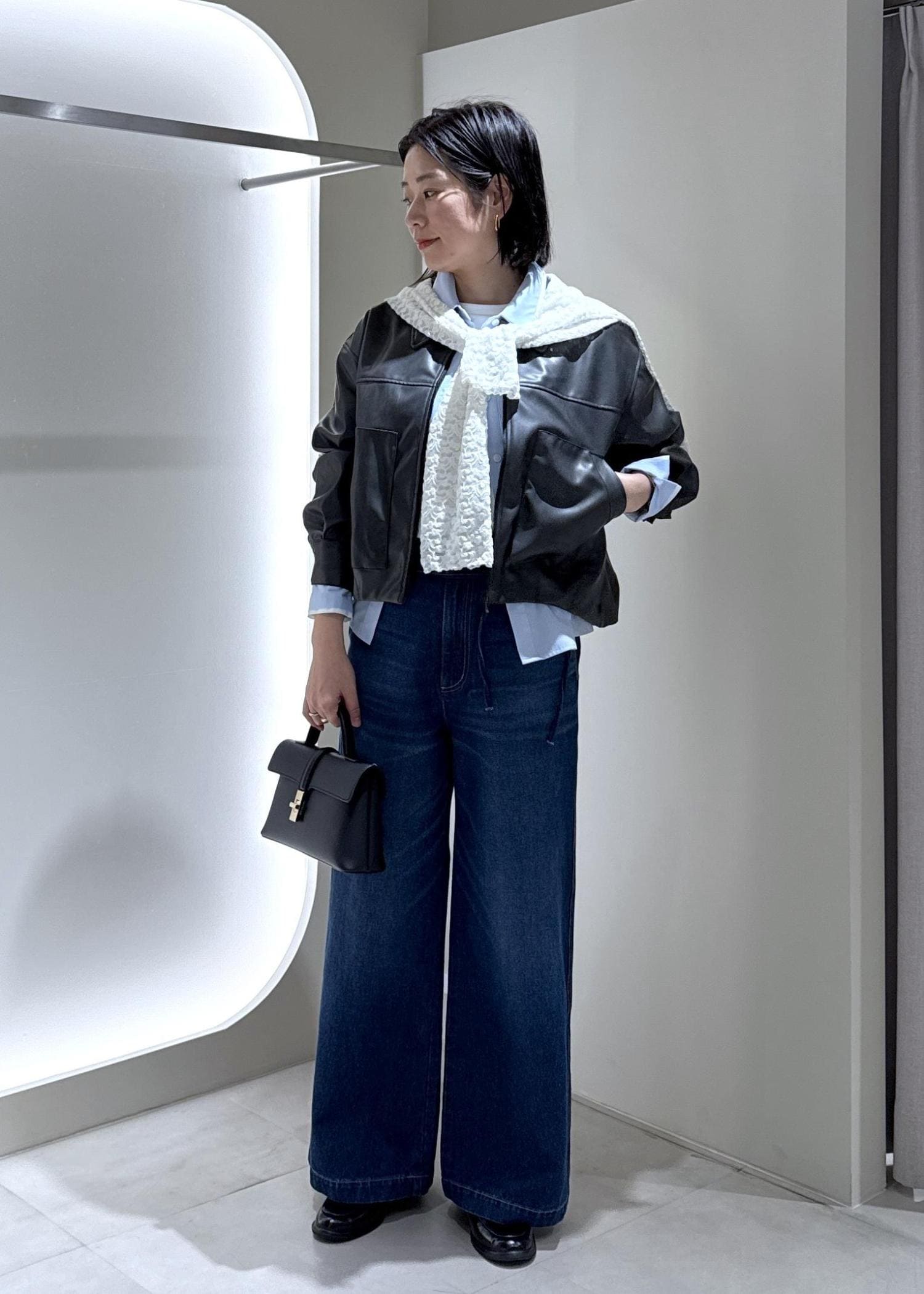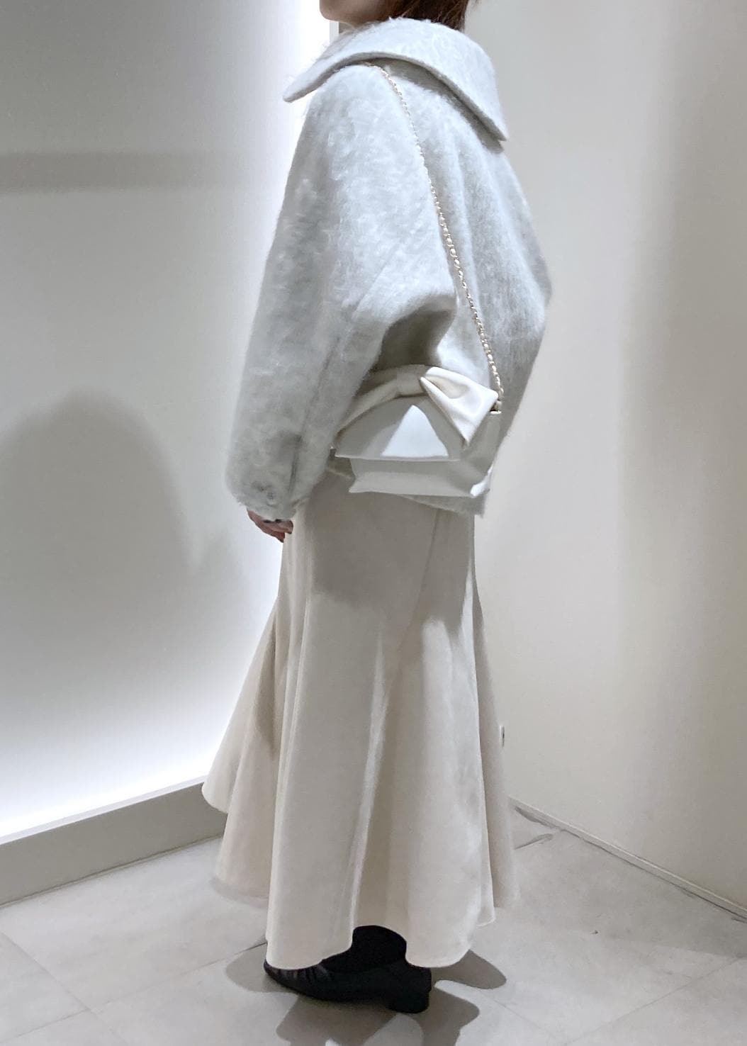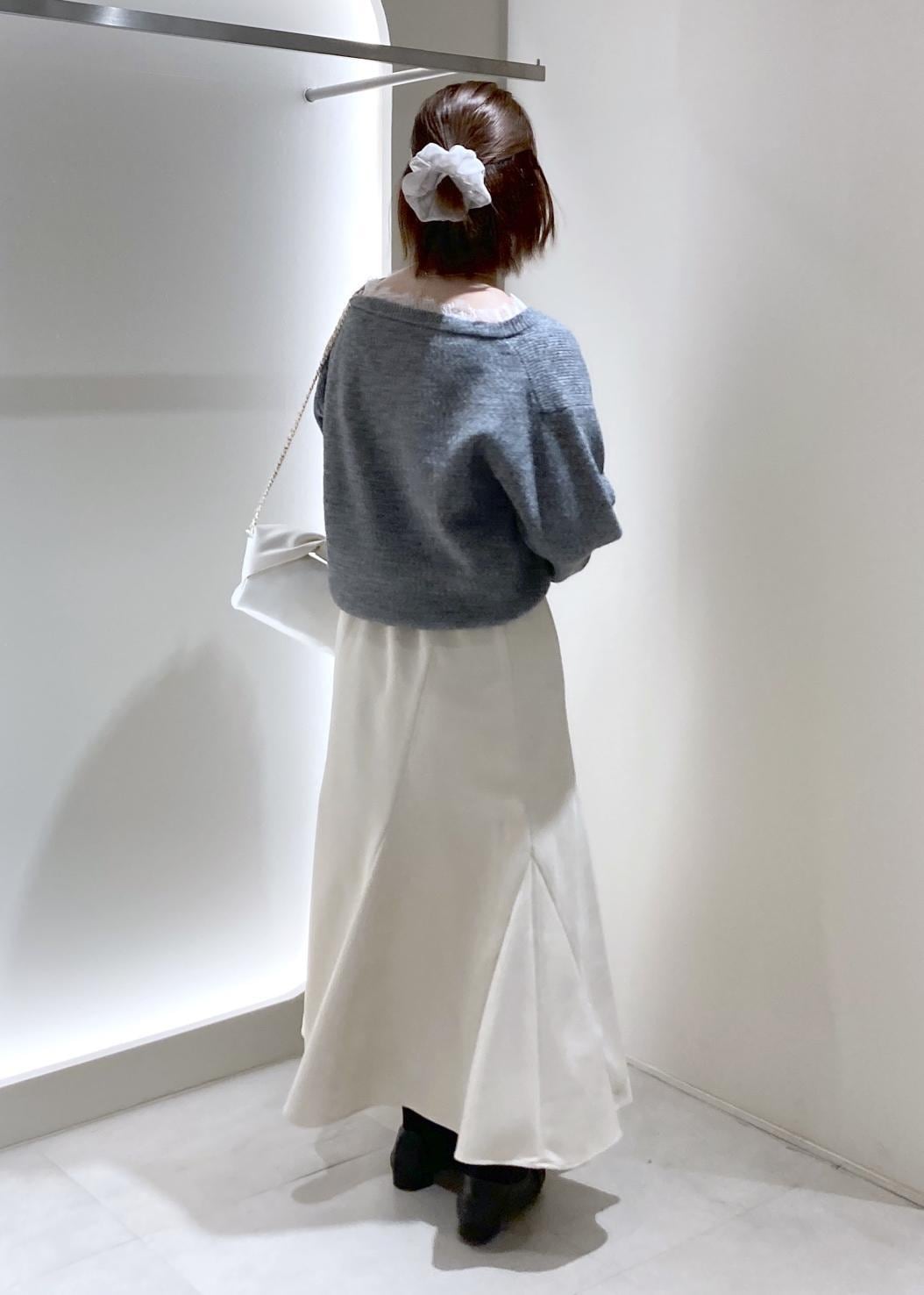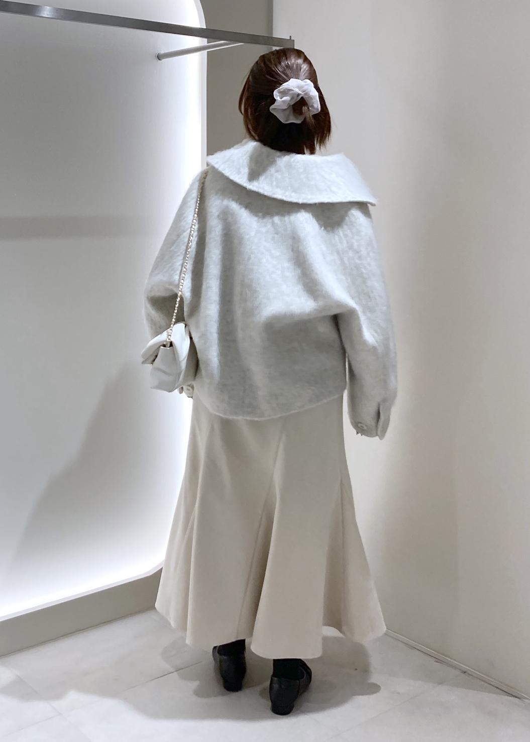 襟が大きいので首元を抜いて着ると抜け感がでて、低身長さんもバランス良く着こなすことができます! -