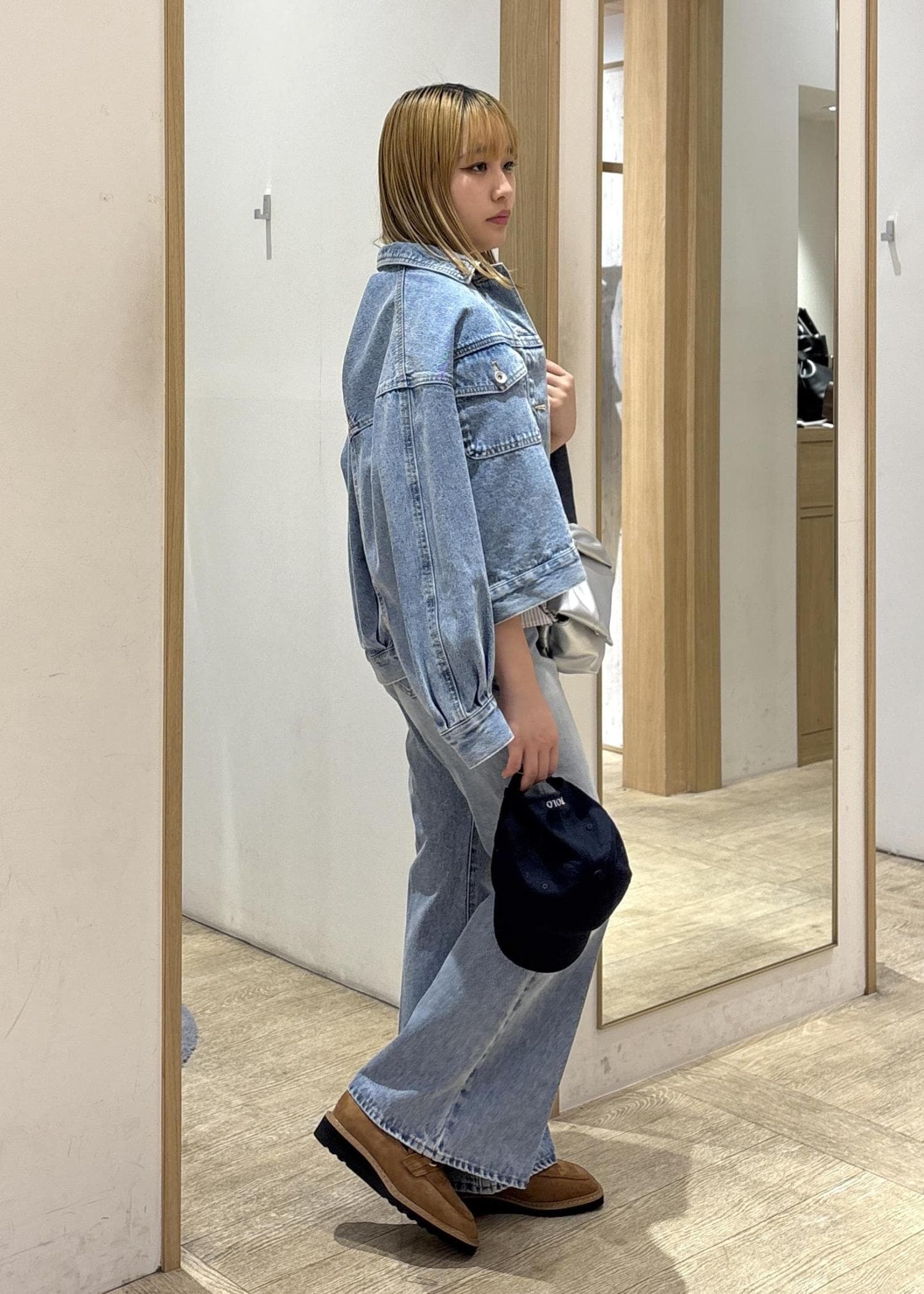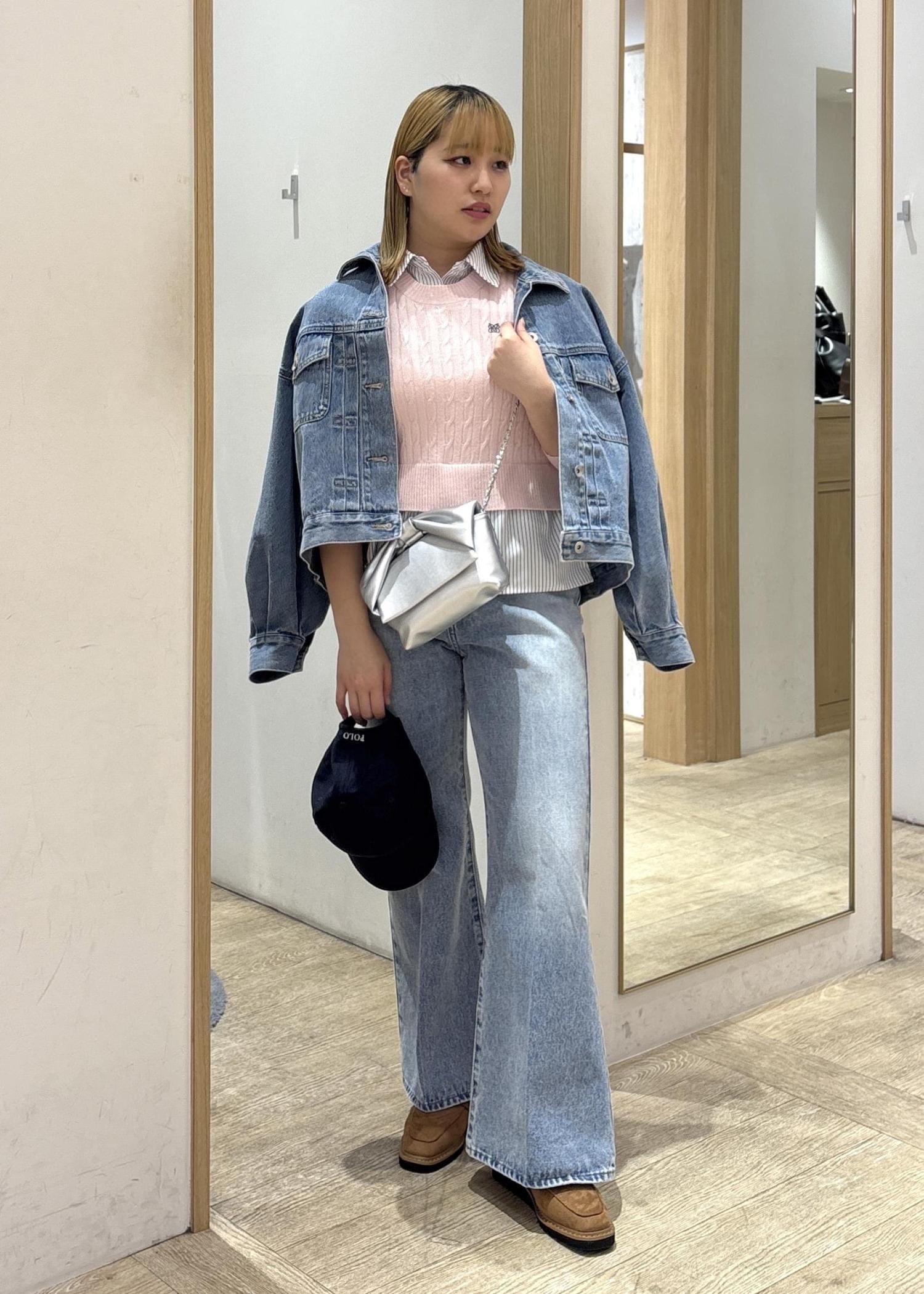 中に分厚めのニットを着てもゆとりを持てるようなゆったり感で、リラックスして着られます!