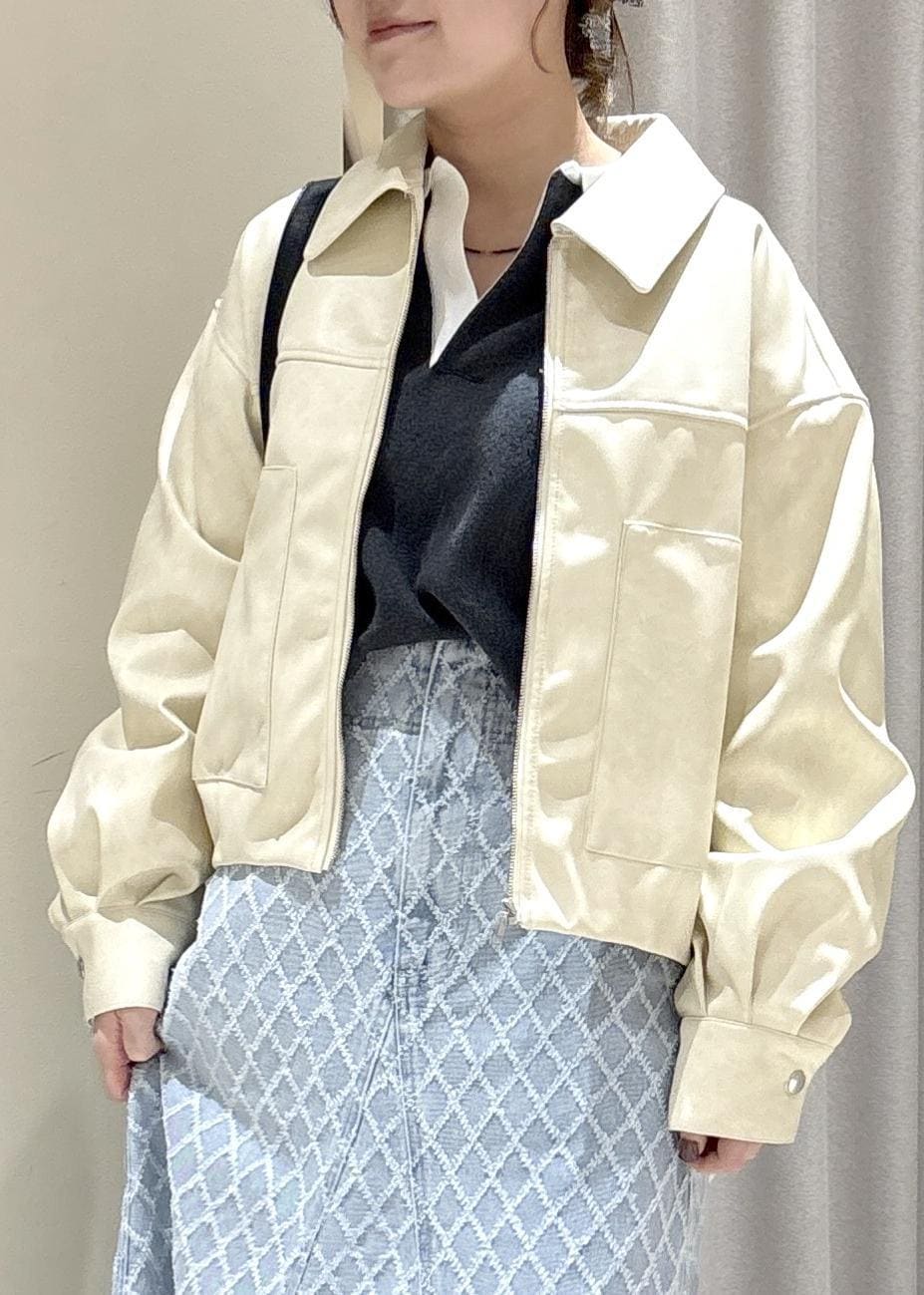 VISアウトポケット合皮ブルゾンクリーム / F¥10,989レビュー軽い素材のアウターで、か時間もレザーですが柔らかく着やすいです。