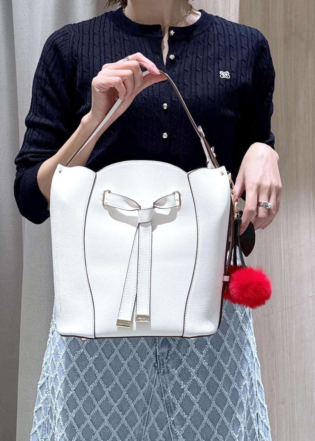 VISフラワーカットショルダーバッグ/2WAYオフホワイト / F¥7,909レビュー大人気ハートカットバッグと同じフロントリボンデザインのbagです!