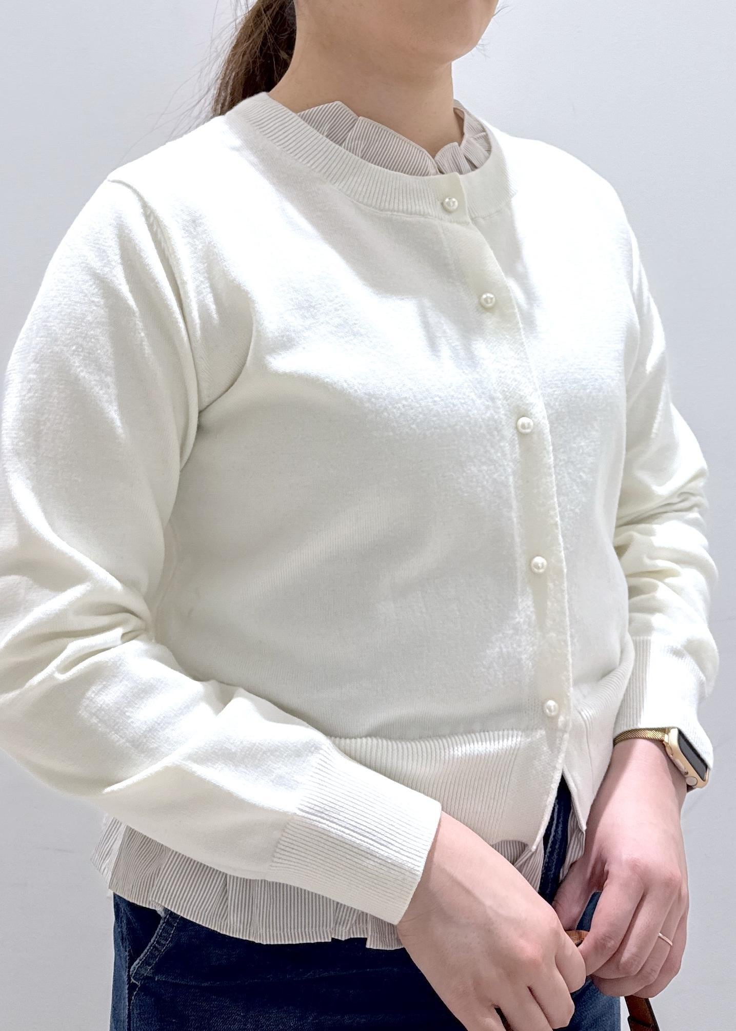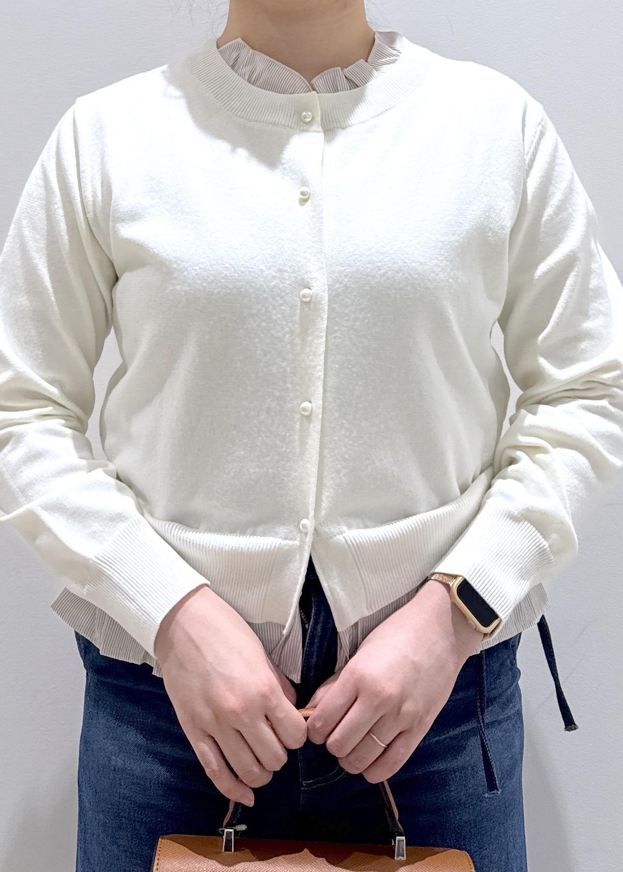 2BUY10%OFFVIS【美得】フリル襟ドッキングニットカーディガントップスオフホワイト / F¥5,929レビューニットとフリルシャツのレイヤードデザイン⭐︎