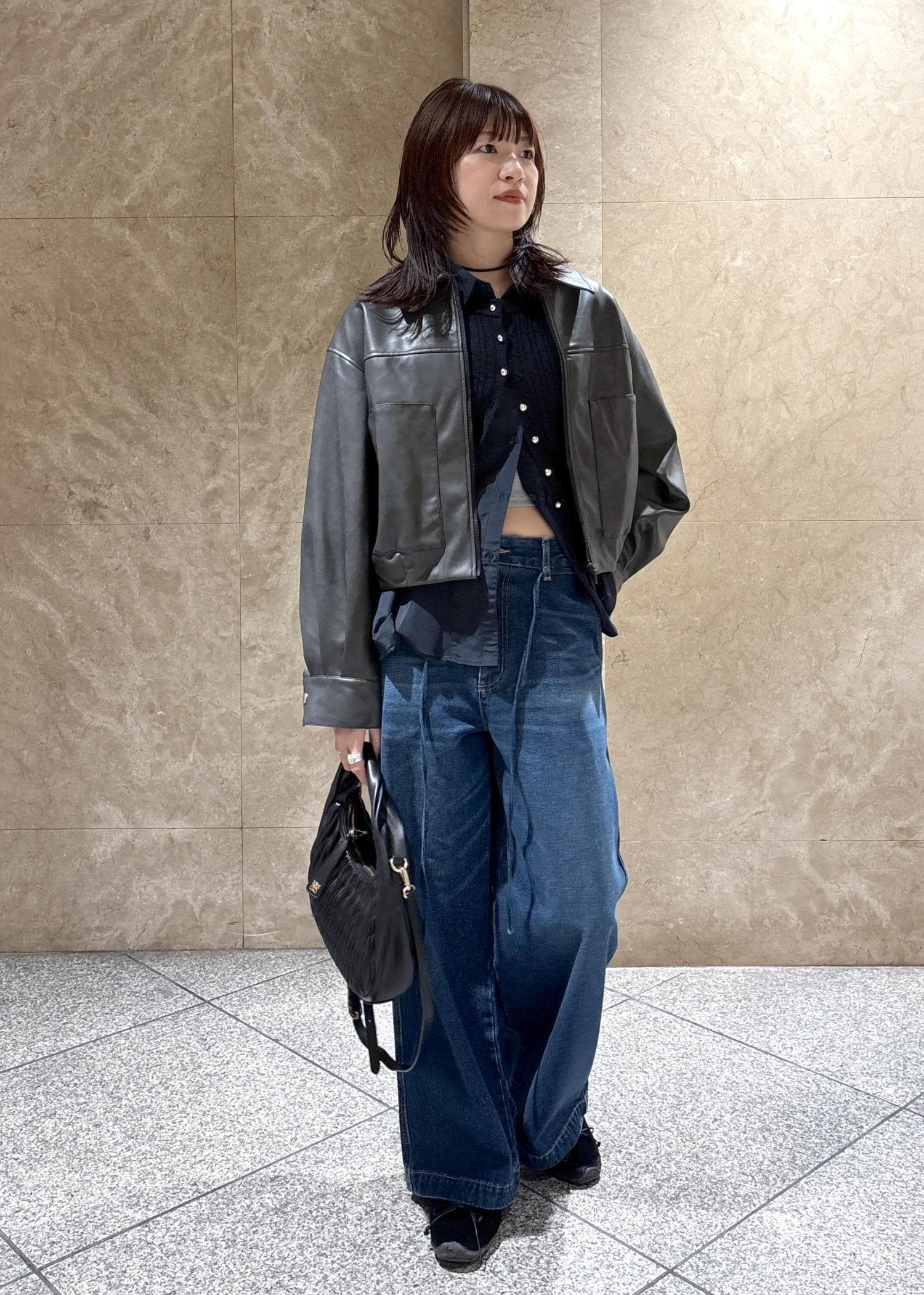 2BUY10%OFFVISアウトポケット合皮ブルゾンブラック / F¥10,989レビューコンパクトなサイズ感ですが、脇周りや身幅にはある程度ゆとりがあり、厚みのあるニットの上からでも羽織りやすいです。